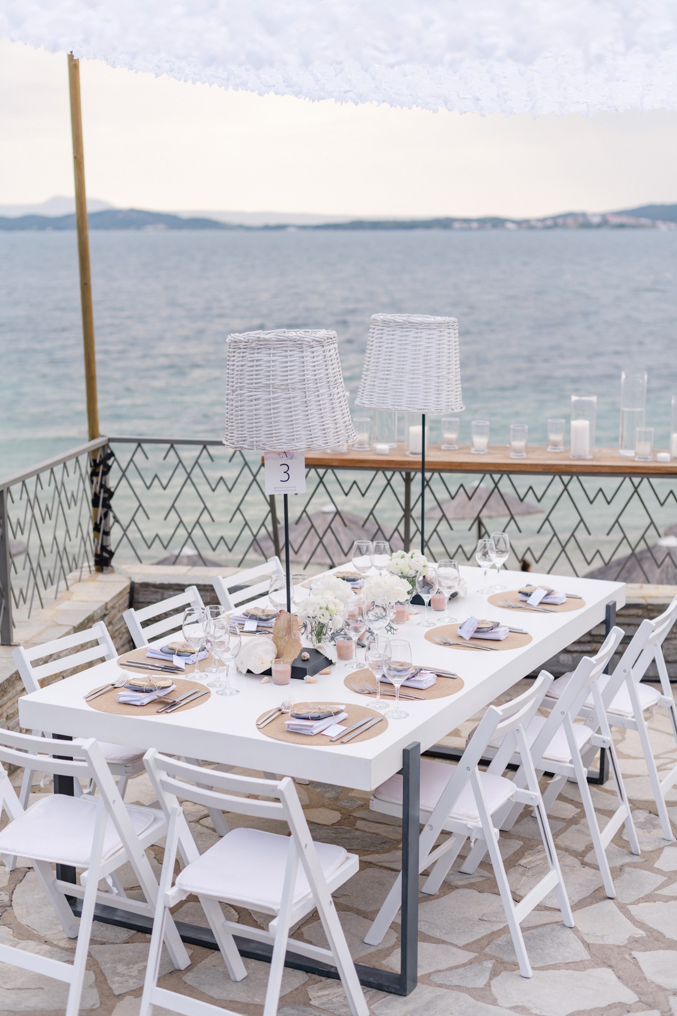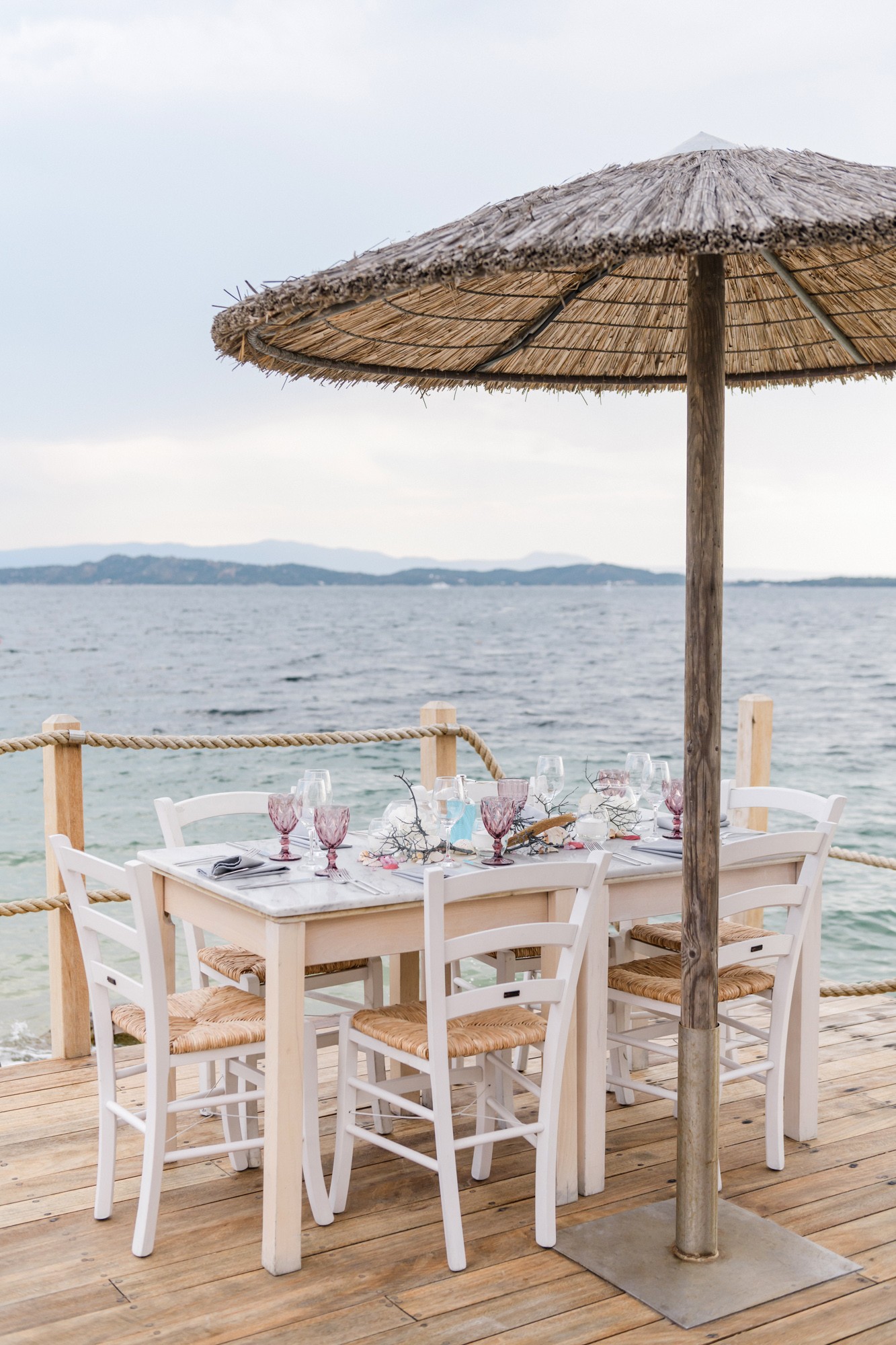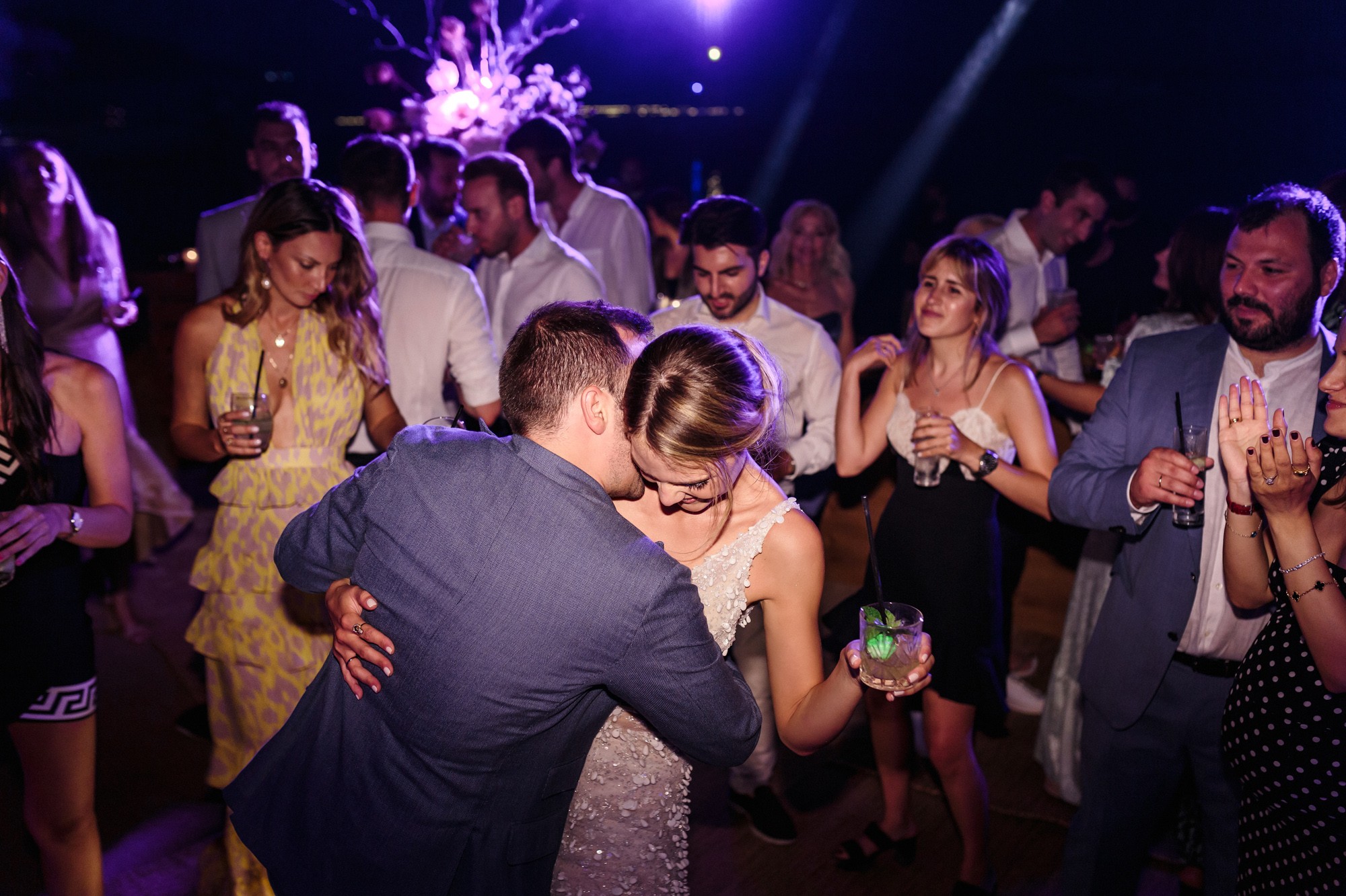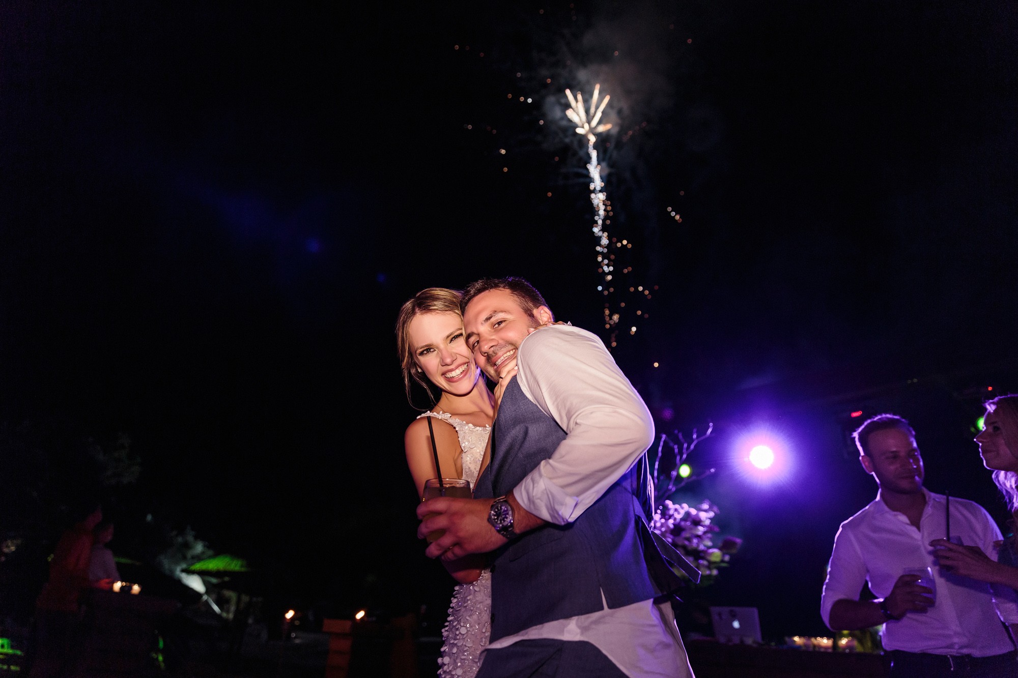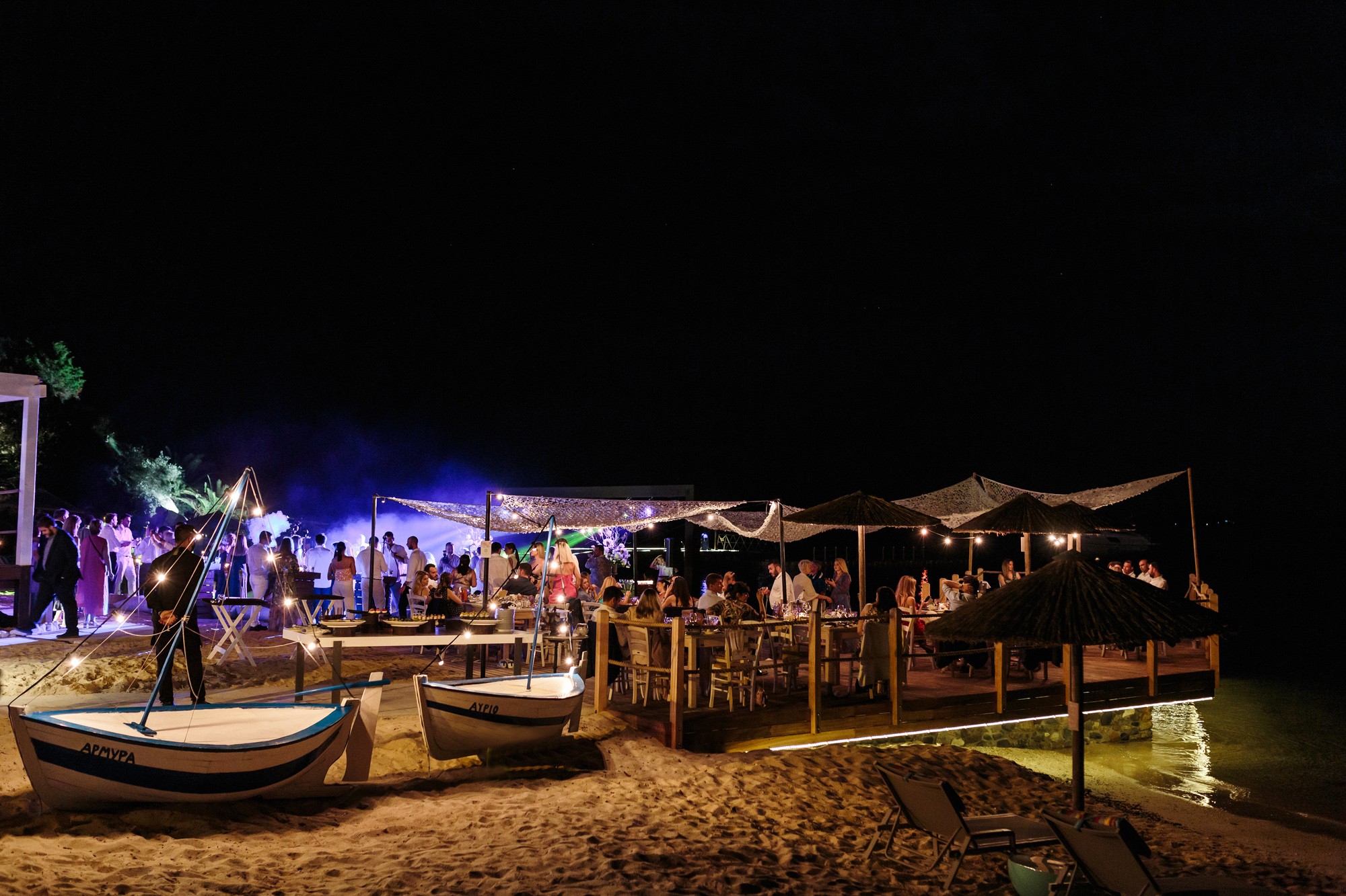 Our stroll inside the hotel lead us to the beach, a beautiful landscape where i took some more shots of our couple before we head to the wedding venue. The location near the beach was transformed to a magical venue to host their wedding party. The decoration had a maritime influence and was carefully crafted by Kiriaki Sidiropoulou. The night came around and an unforgettable party began. This beautiful night was concluded accompanied by fireworks which got everyone excited. The day might have come to an end, but the memory will live forever via their wedding photos.
