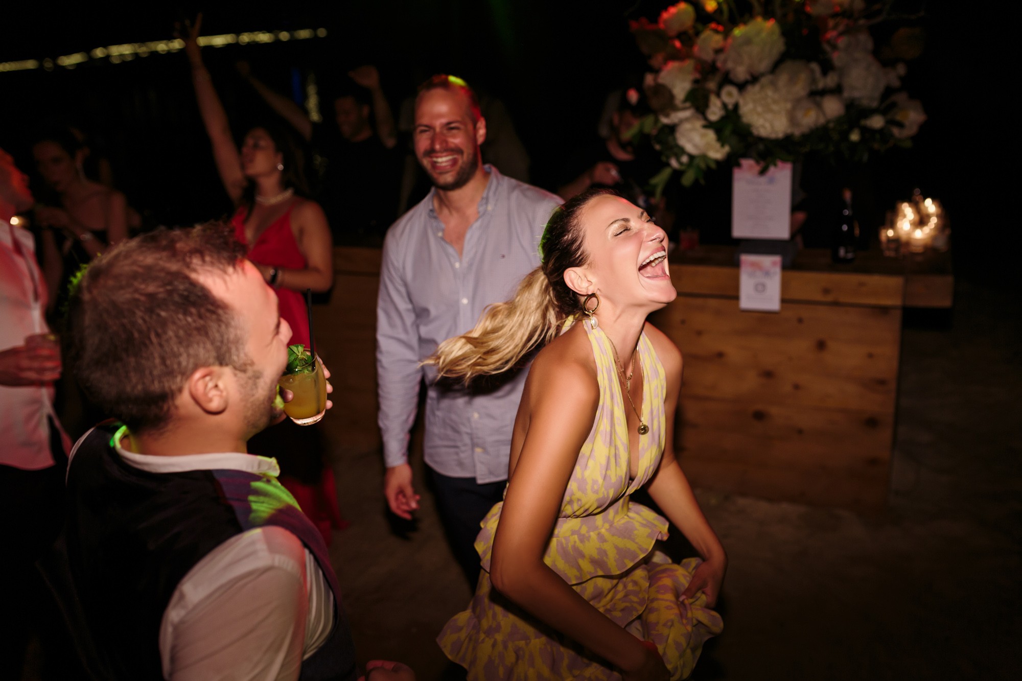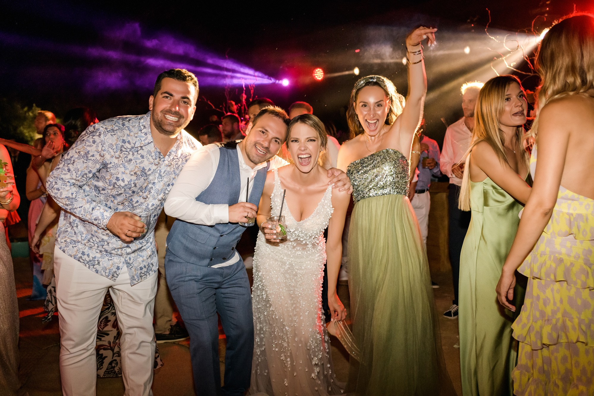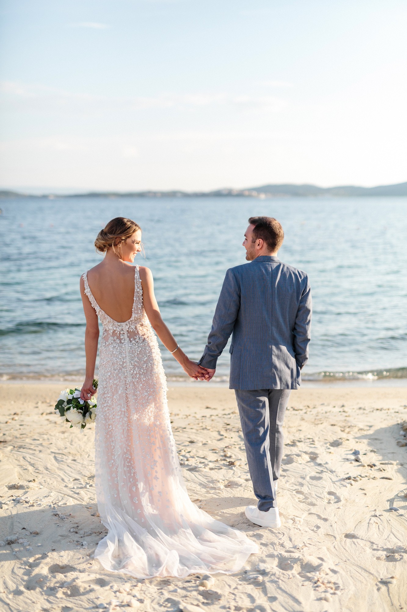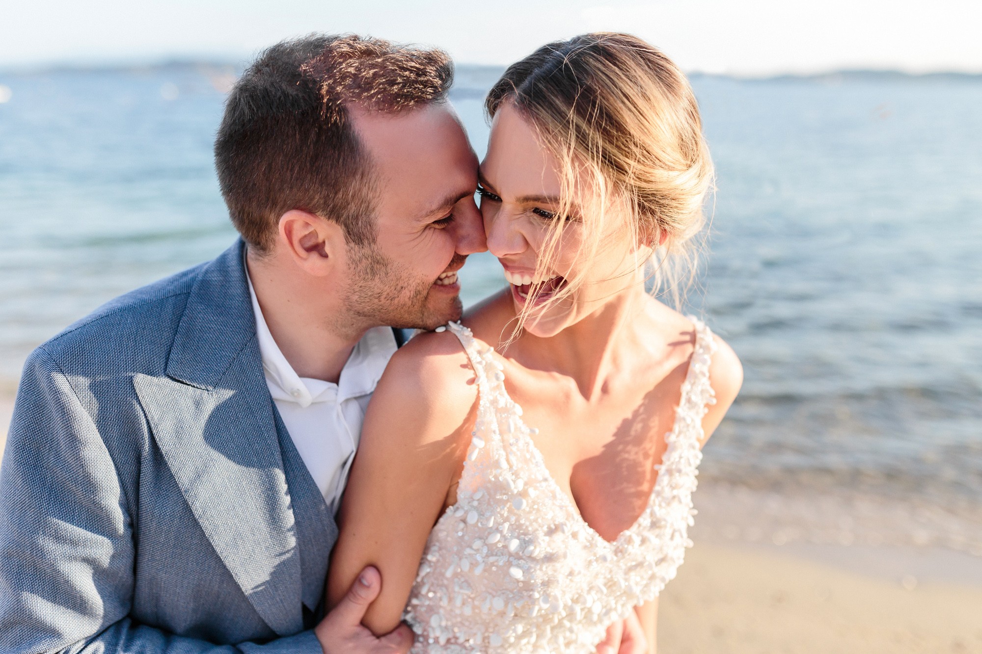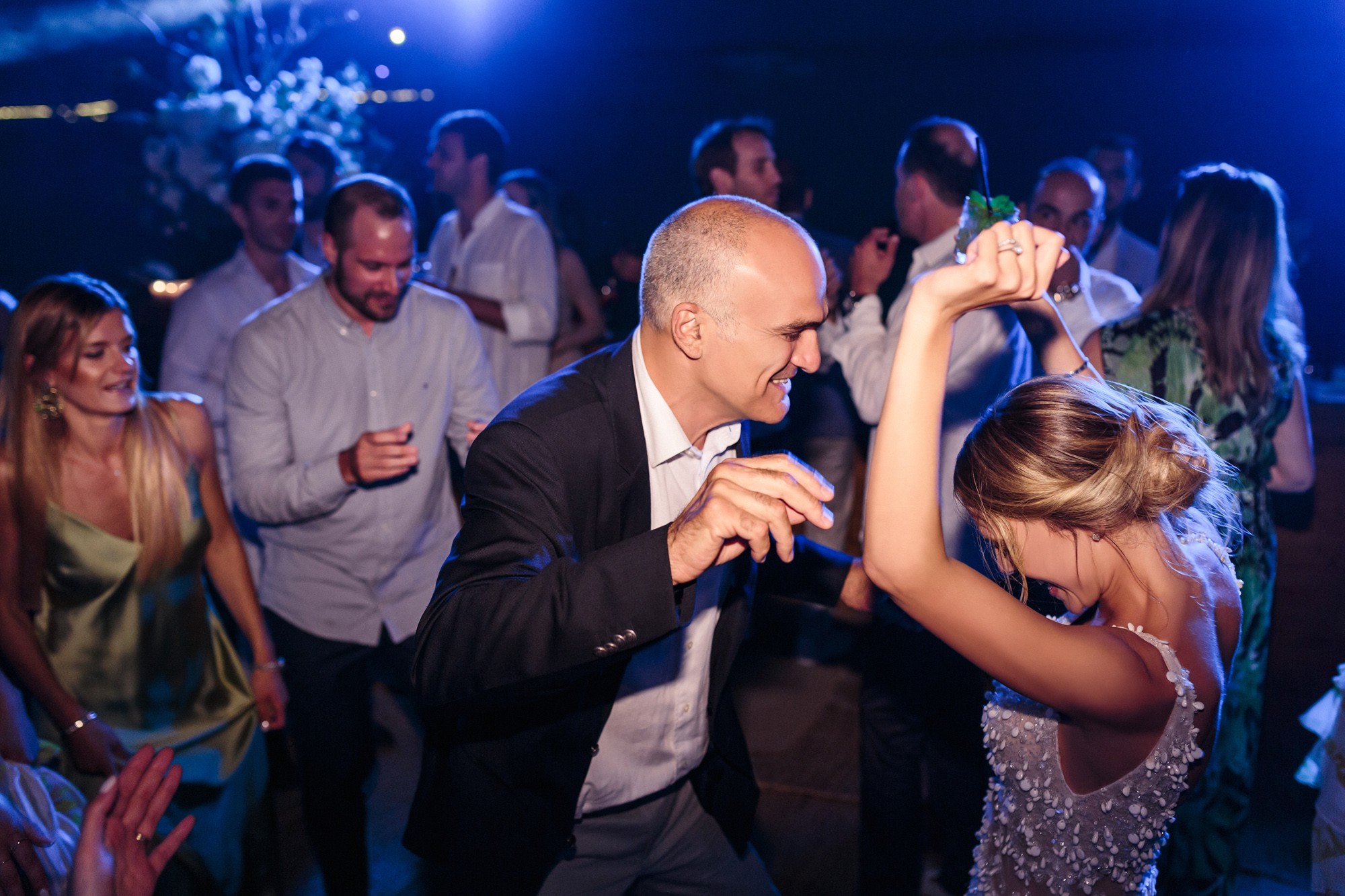 Our stroll inside the hotel lead us to the beach, a beautiful landscape where i took some more shots of our couple before we head to the wedding venue. The location near the beach was transformed to a magical venue to host their wedding party. The decoration had a maritime influence and was carefully crafted by Kiriaki Sidiropoulou. The night came around and an unforgettable party began. This beautiful night was concluded accompanied by fireworks which got everyone excited. The day might have come to an end, but the memory will live forever via their wedding photos.