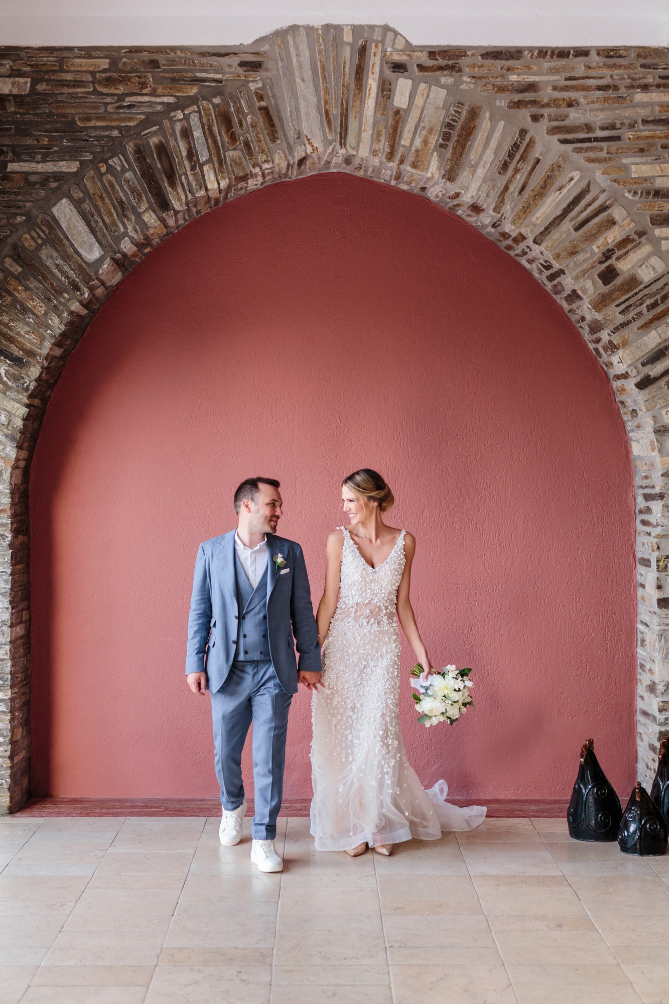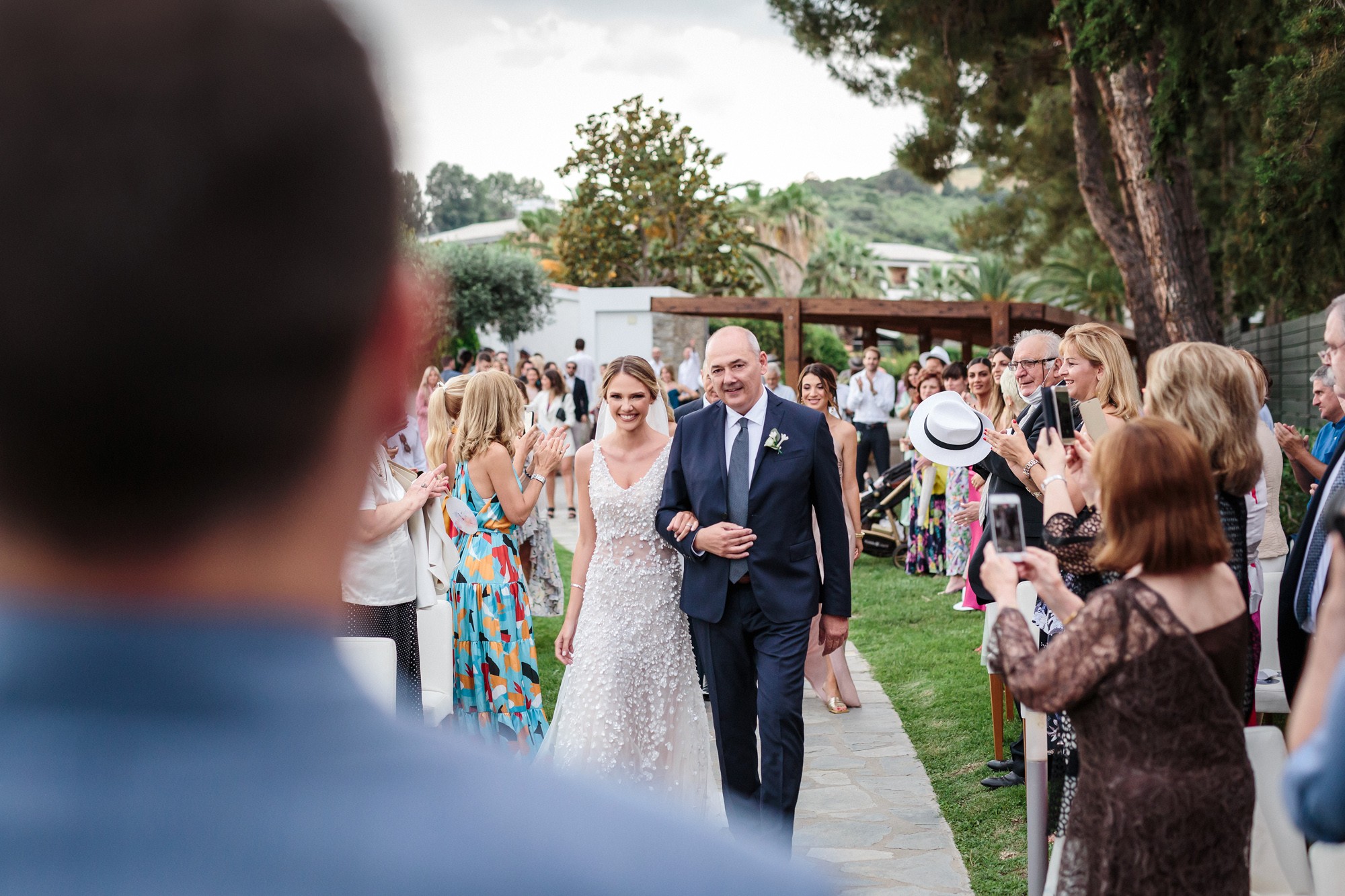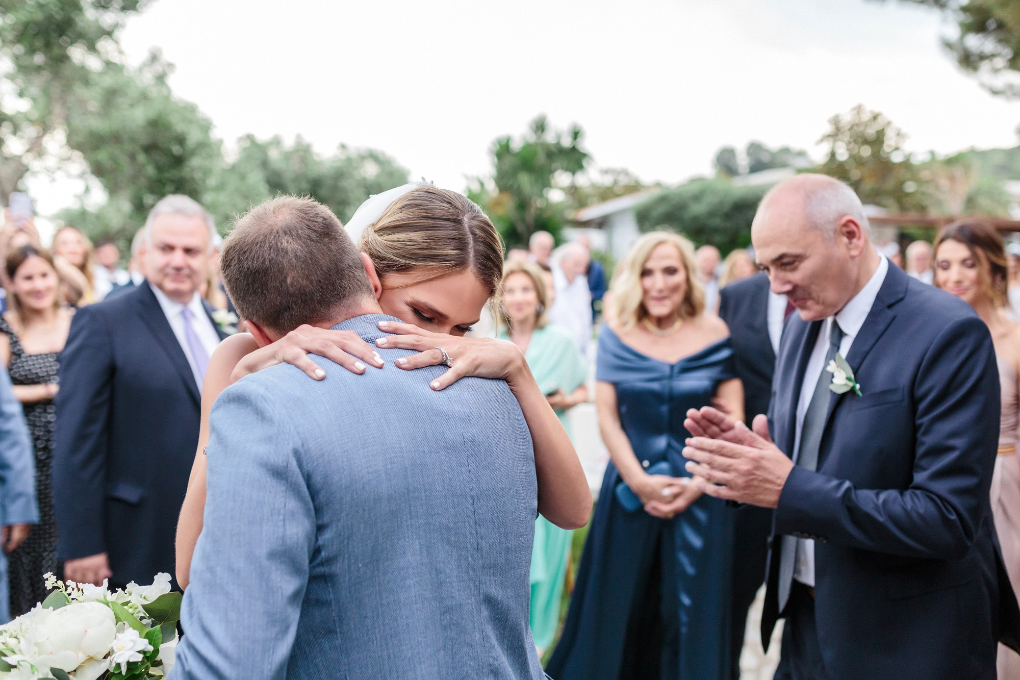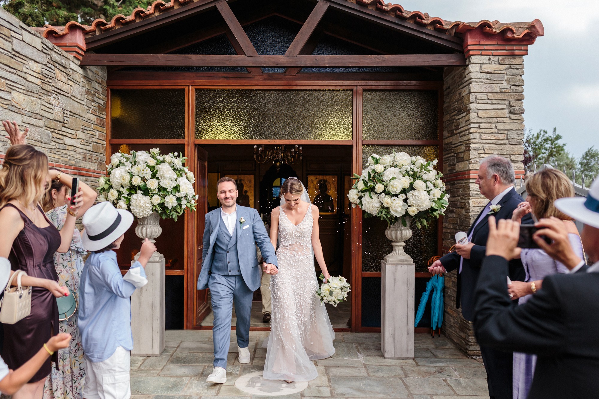 The wedding ceremony was held in a beautiful stone chapel inside the resort. Their first look while Lida was walking down the aisle and their first hug, created an emotional scenery and definitely some of the most moving wedding photos. From this lush ceremony, there could not be missing some of the most common traditions of a greek wedding, the rice tossing. Our couple surely had some laughs while their friends and family showered them with rice, which is a wish for a life full of love and luck.