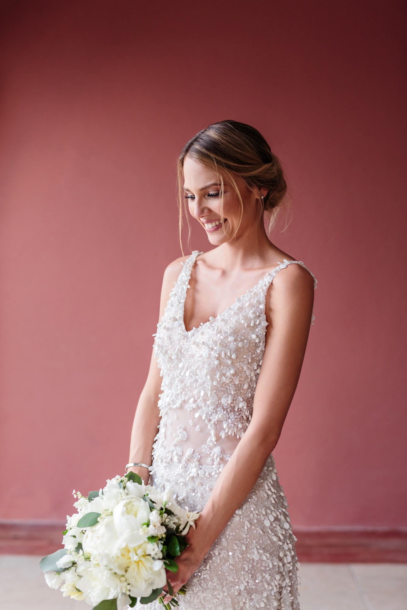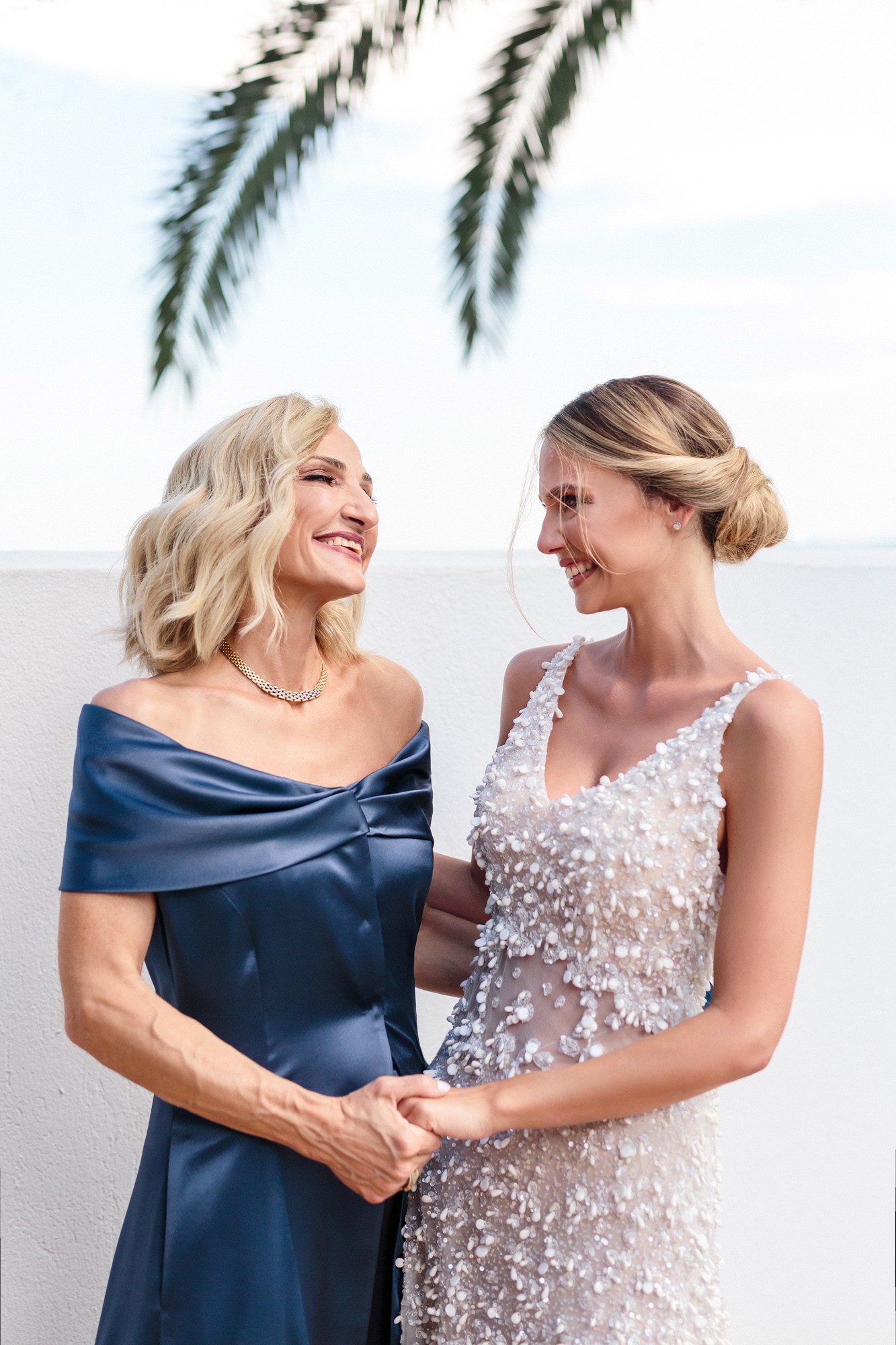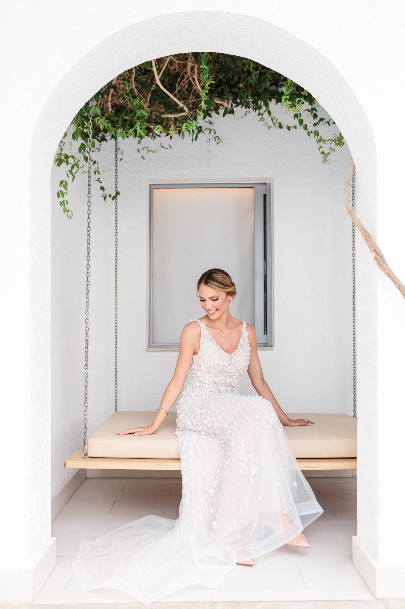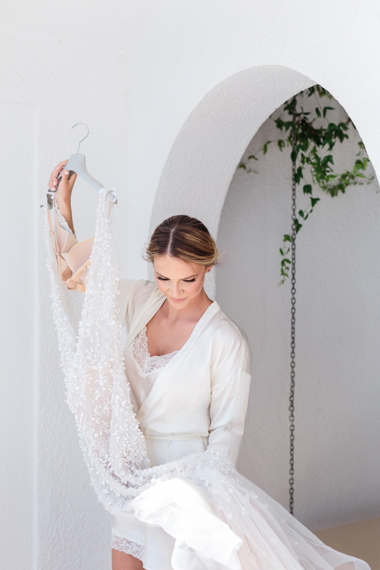 In both rooms there was a festive joyful vibe while our couple was getting ready for their big day. Dimitris looked absolutely charming and happier than ever as he was wearing his grey suit. In the mean time Lida was enjoying the company of her loved ones, while she was having her hair and make-up done. Her white dress with the stone details by the designer Denise Eleftheriou stole the show. She truly looked more beautiful than ever.