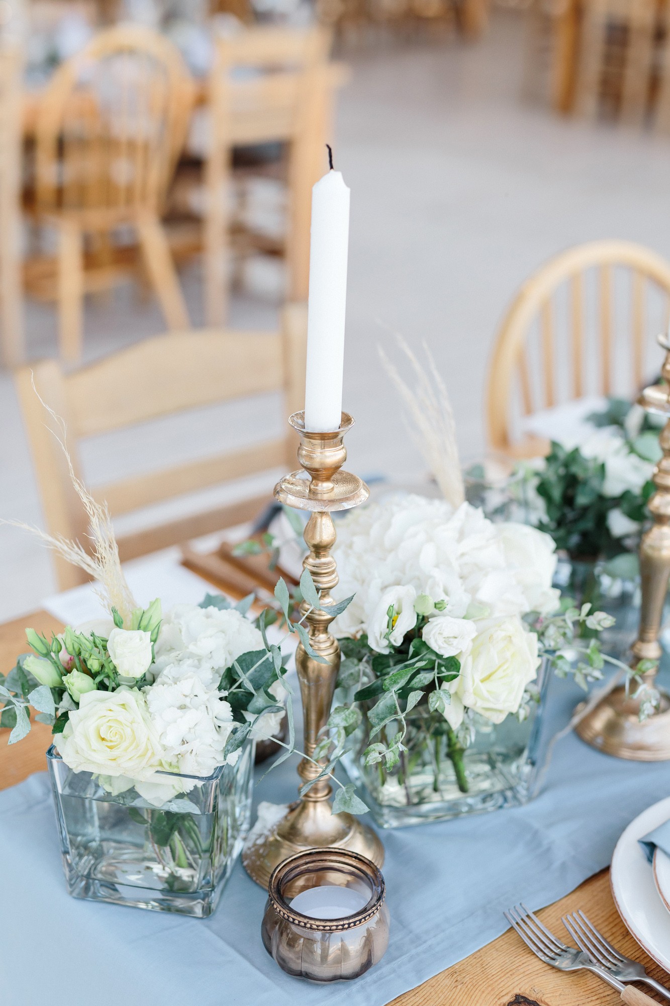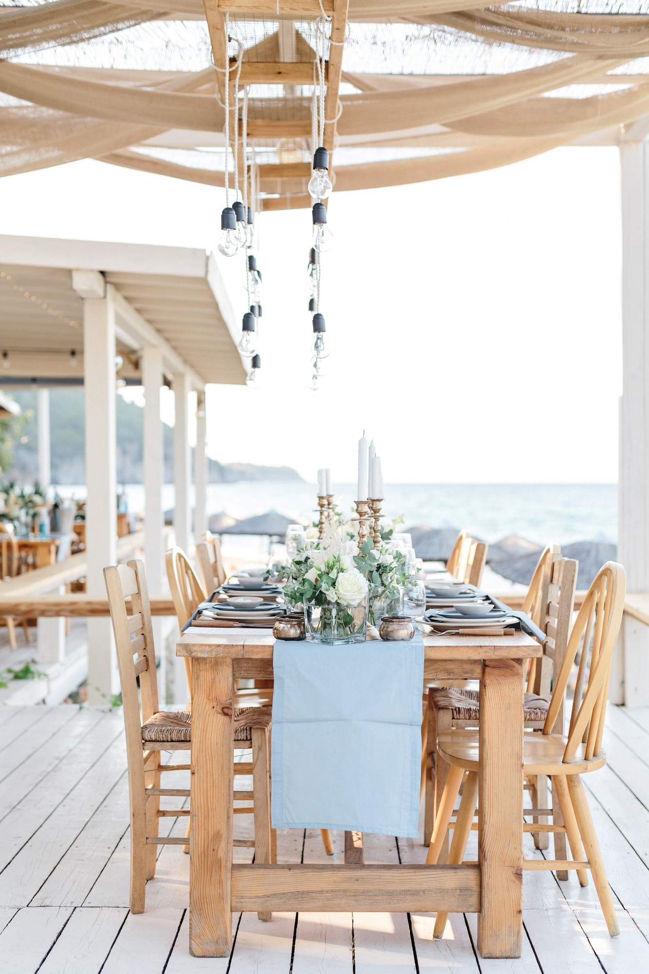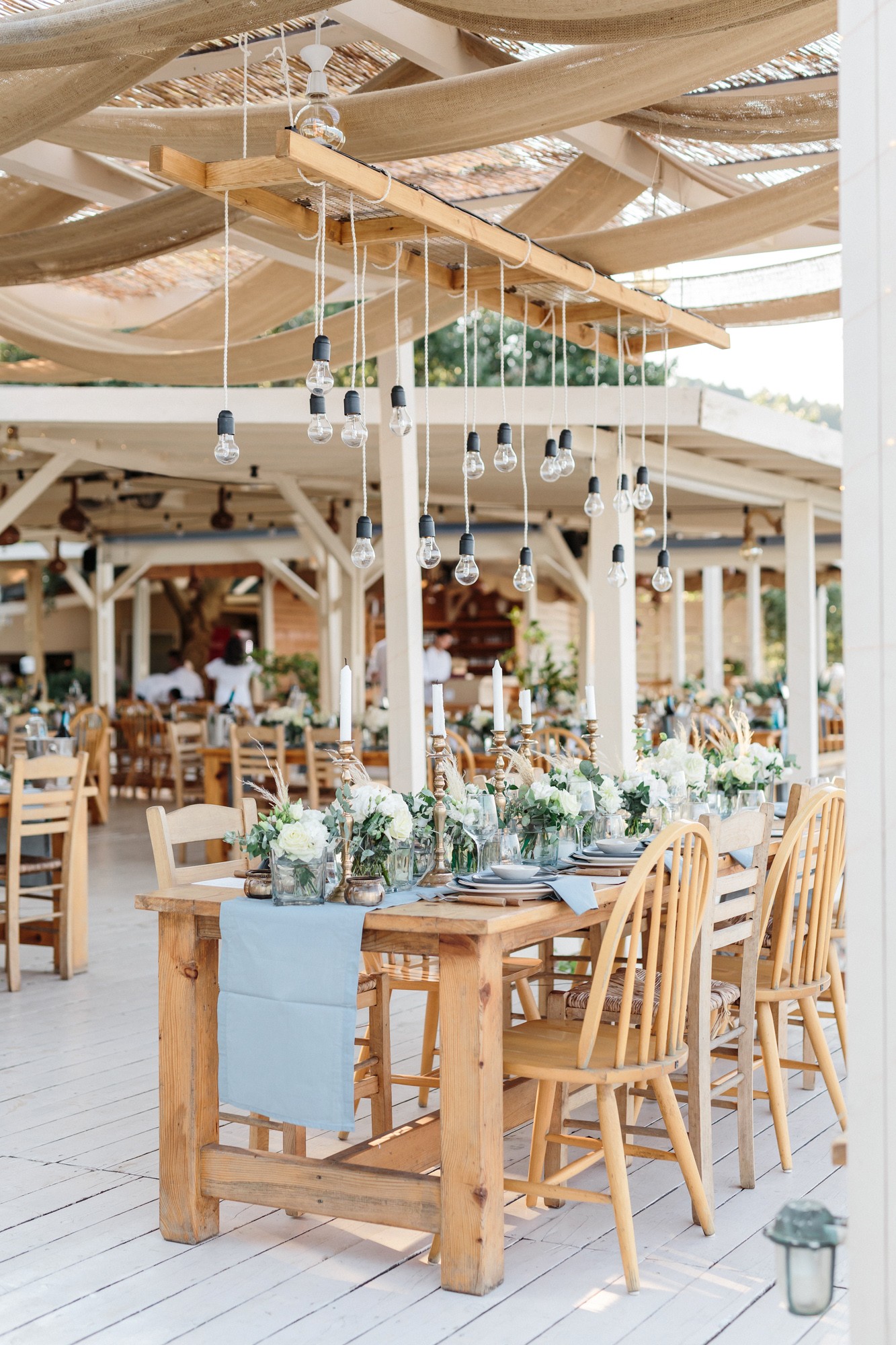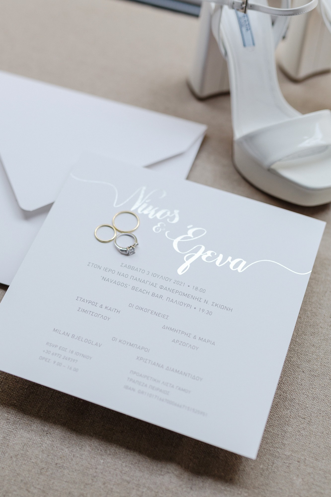 But that was not all. A celebration was about to start in Navagos Beach Bar. The venue was decorated beautifully by the caravan project. Blue and white details in the decor accompanied by a floral arrangement of white roses created the perfect wedding reception. All the moments of pure fun, dance, and laughter were captured in our wedding photos which our couple will happily show in the generations to come.