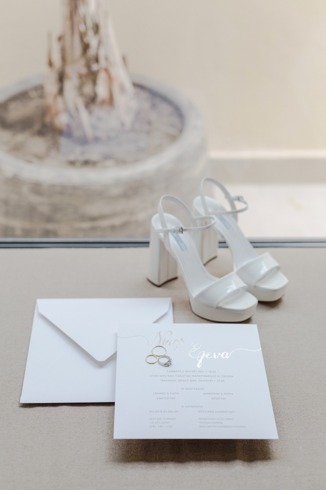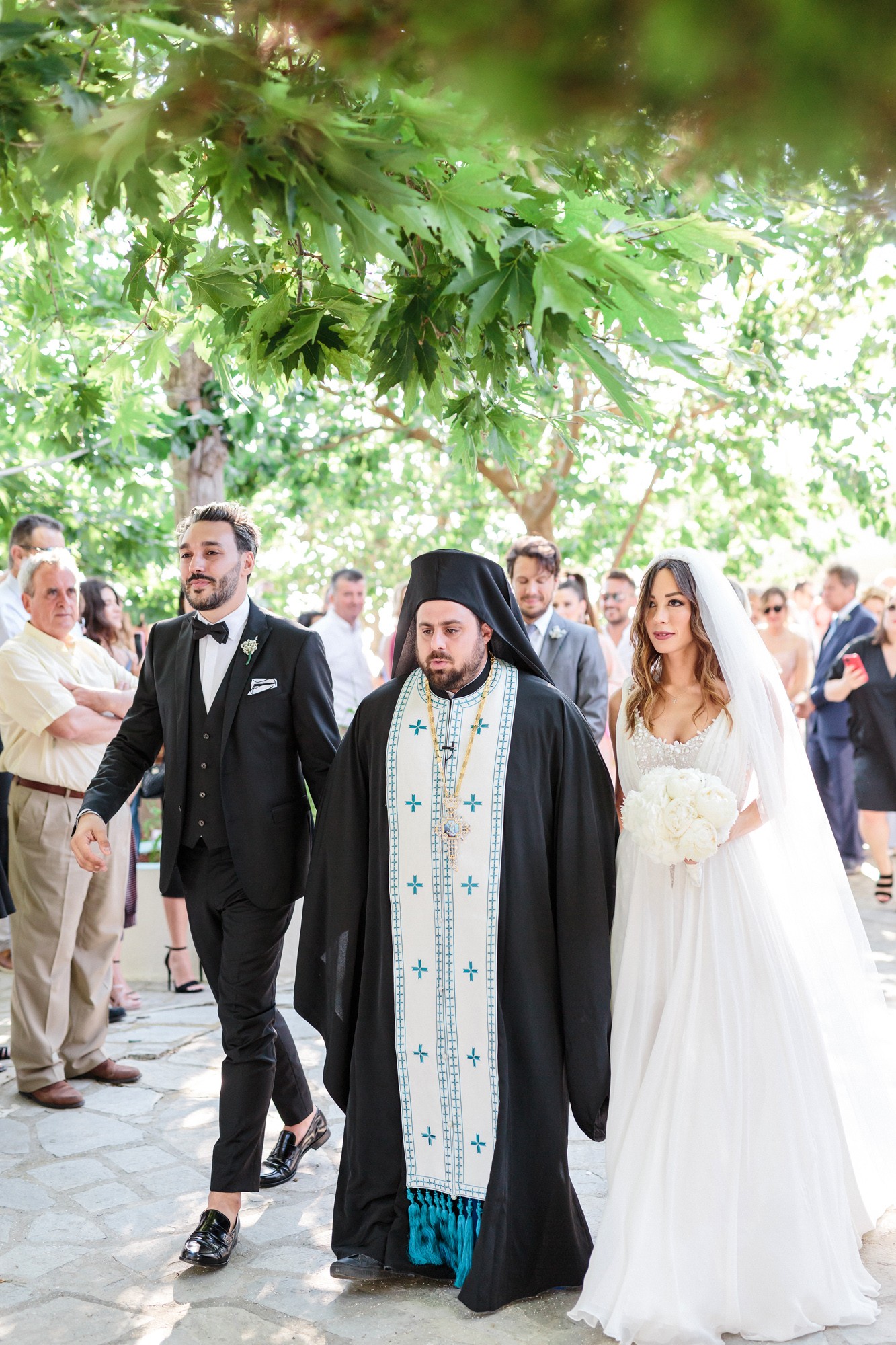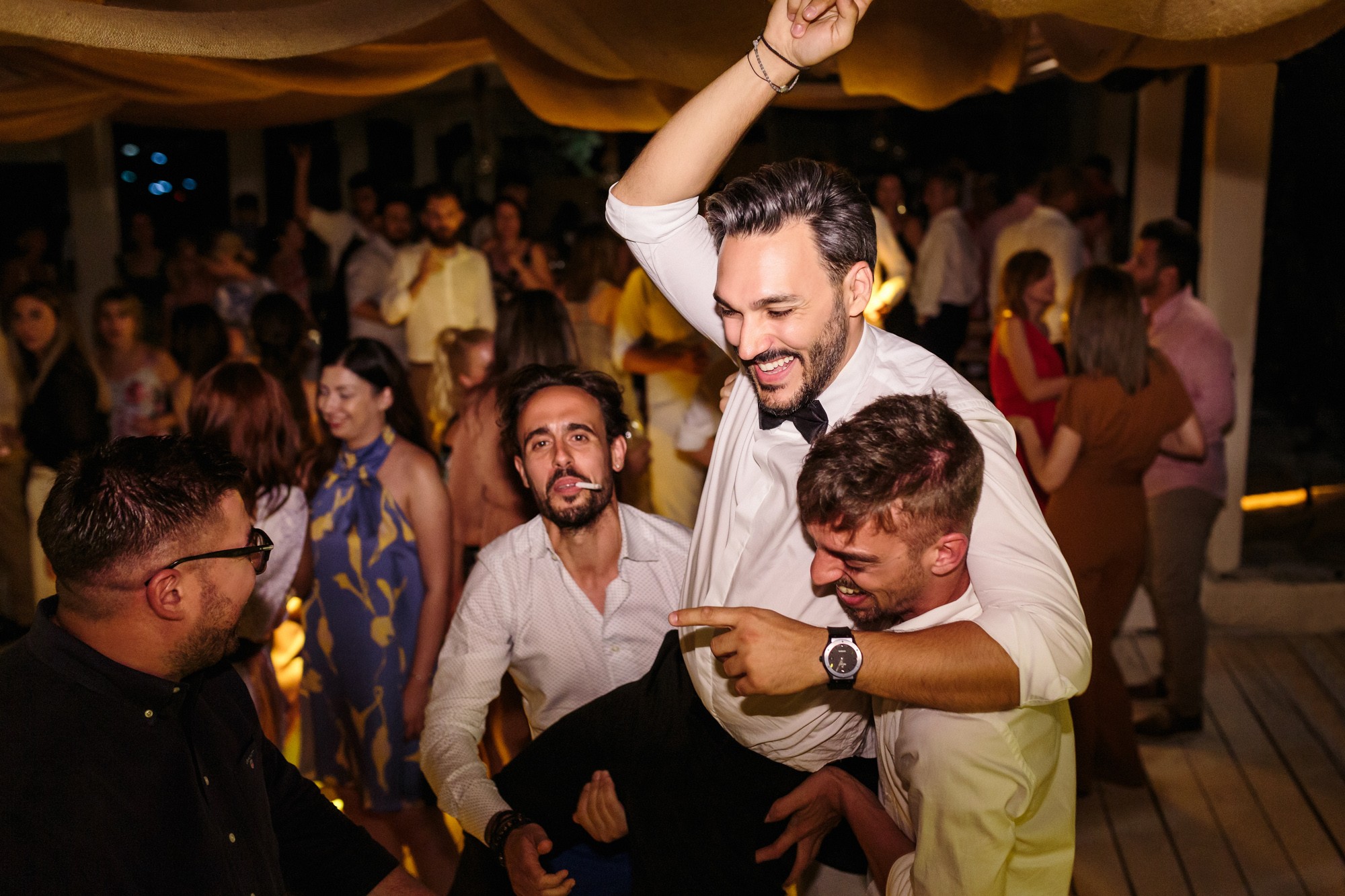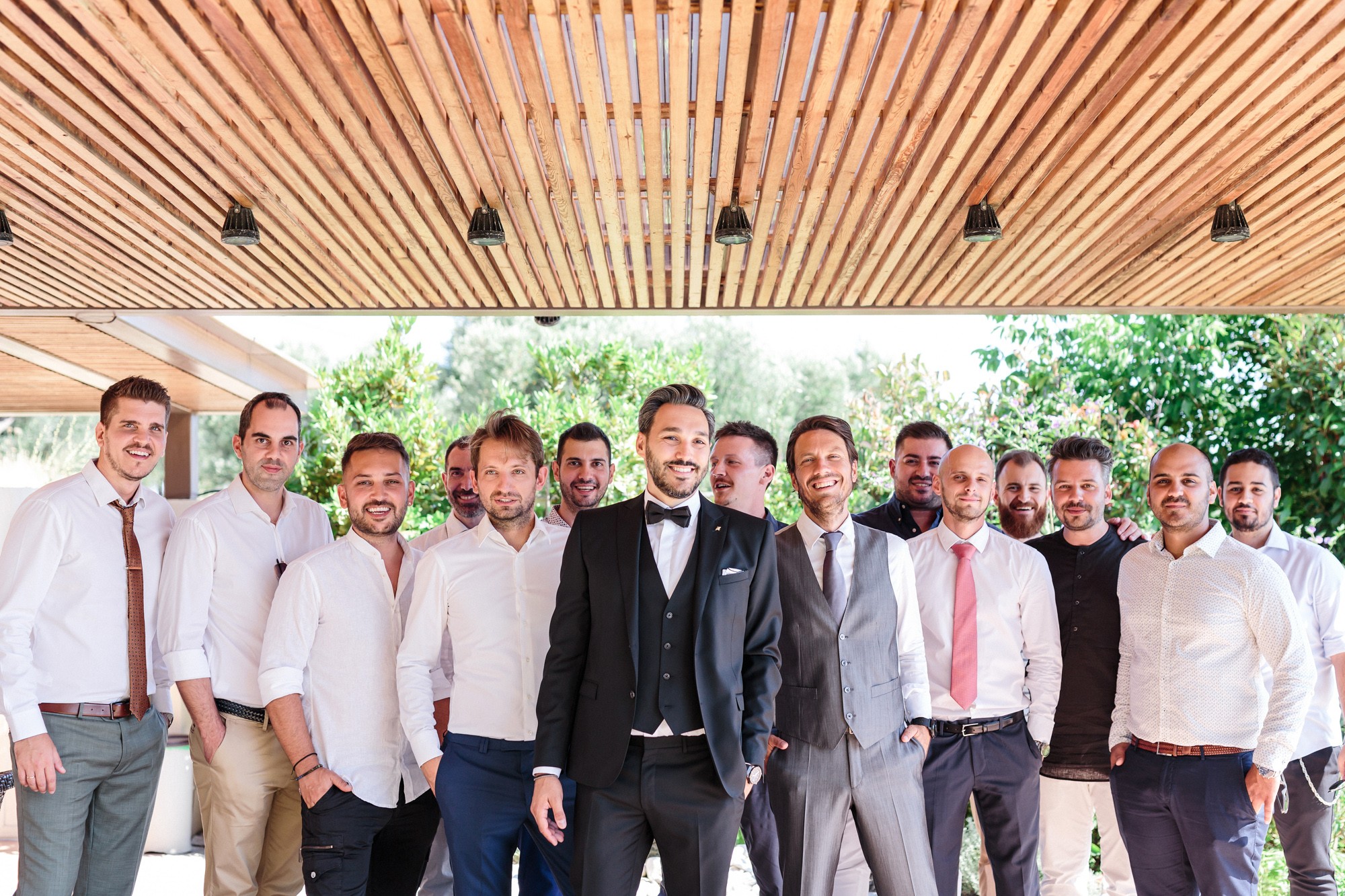 Nikos got ready in his house in Chalkidiki together with his friends and family. Their jokes and small traditions like shaving him before the ceremony, created a fun atmosphere that every guest enjoyed. His choice of a black Prada suit was perfect, as he looked as charming as ever.