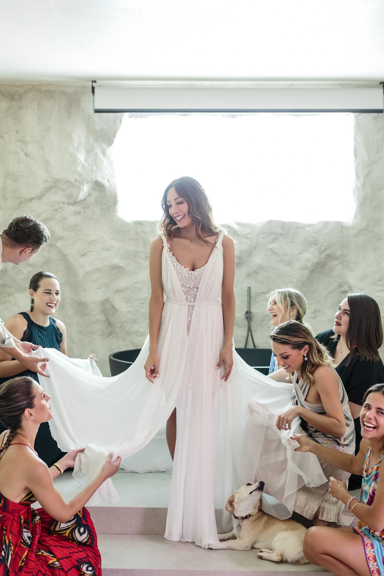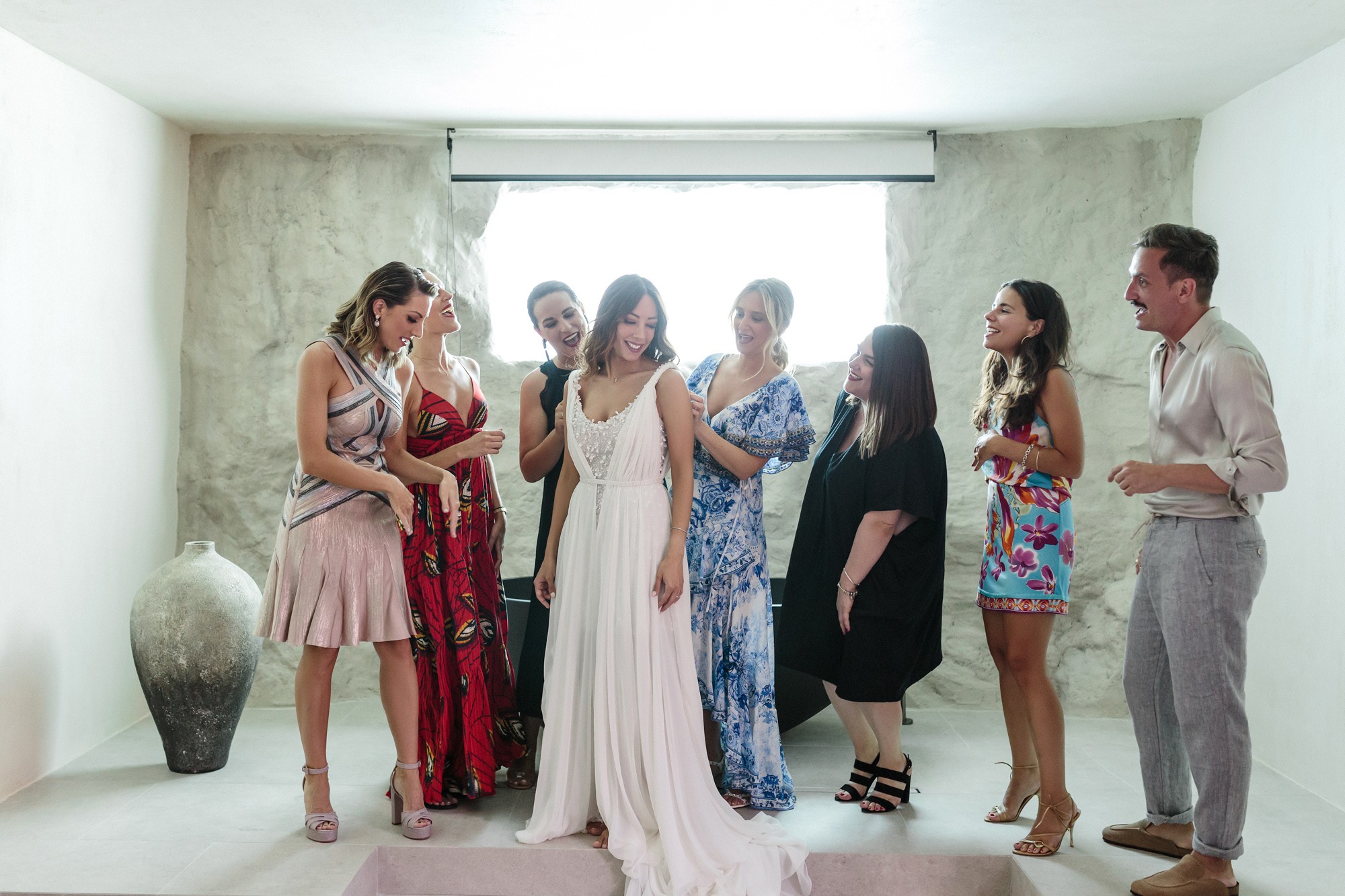 At the same time in a suite in Seven Rocks, Elena was preparing. Her friends and family threw her a bridal-themed party creating some fun memories that they will get to remember through their wedding photos. Wearing her Denise Eleftheriou white dress she looked stunning. Always during the couple’s preparations, there are moments so precious that with our wedding photos, they will get to remember forever. One of those emotional moments in this wedding was definitely the time Elena’s grandma saw her with her wedding dress on. This was one of those weddings where we could really feel the anticipation and excitement of our bride and groom building up which made us looking forward to the ceremony even more.