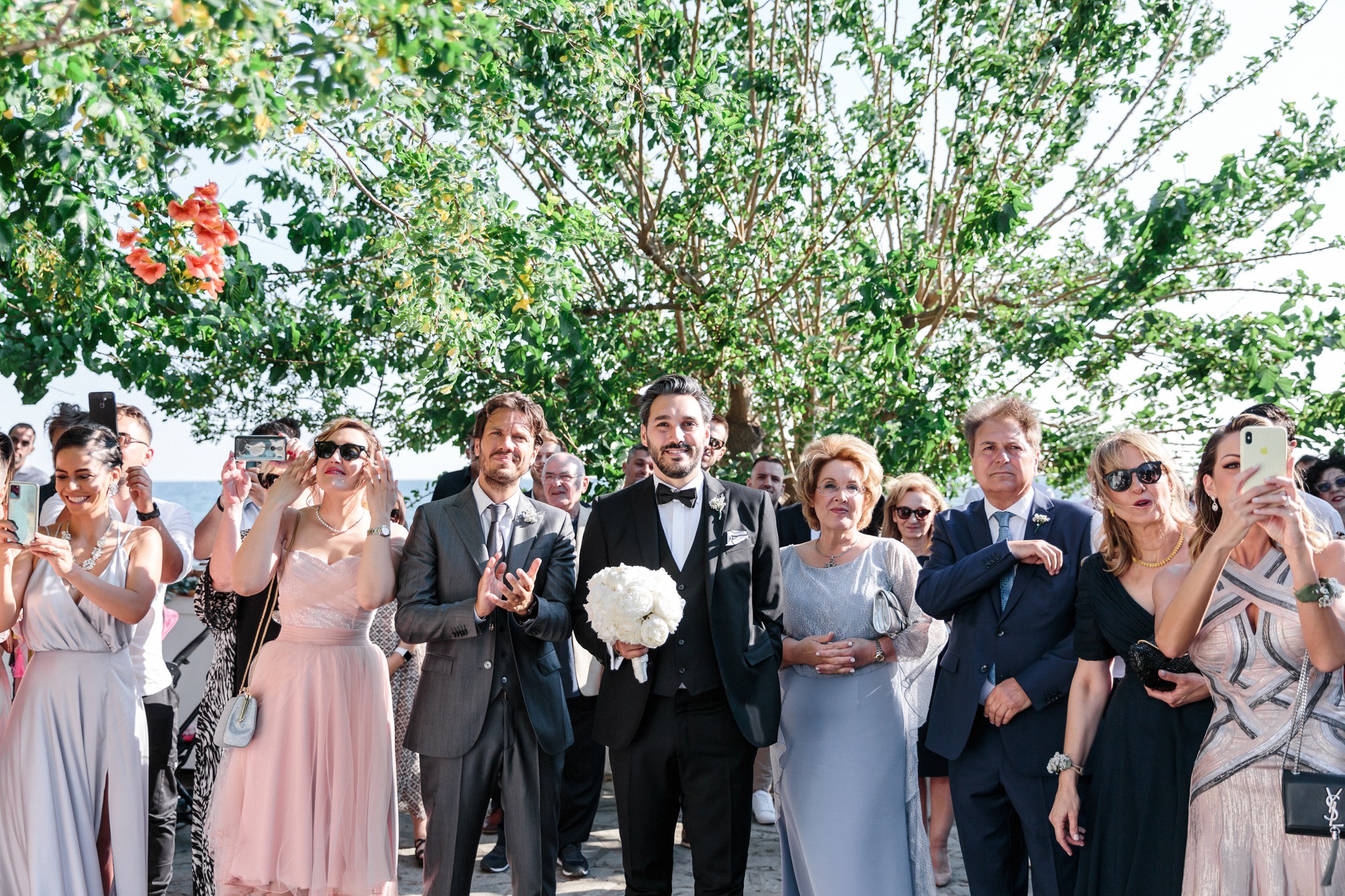 There is always something magical about a ceremony that is held in a chapel near the sea. The breeze and the summer essence created the best scenery for the union of two people that are in love. In this atmospheric scene, our bride and groom laid eyes on each other for the first time. That first look and their first kiss were enough to have the guest glowing with happiness. The ceremony felt like it lasted only a few seconds.