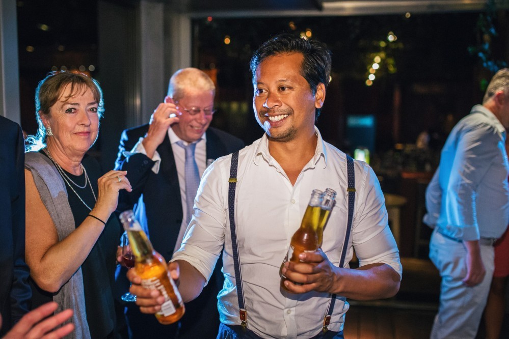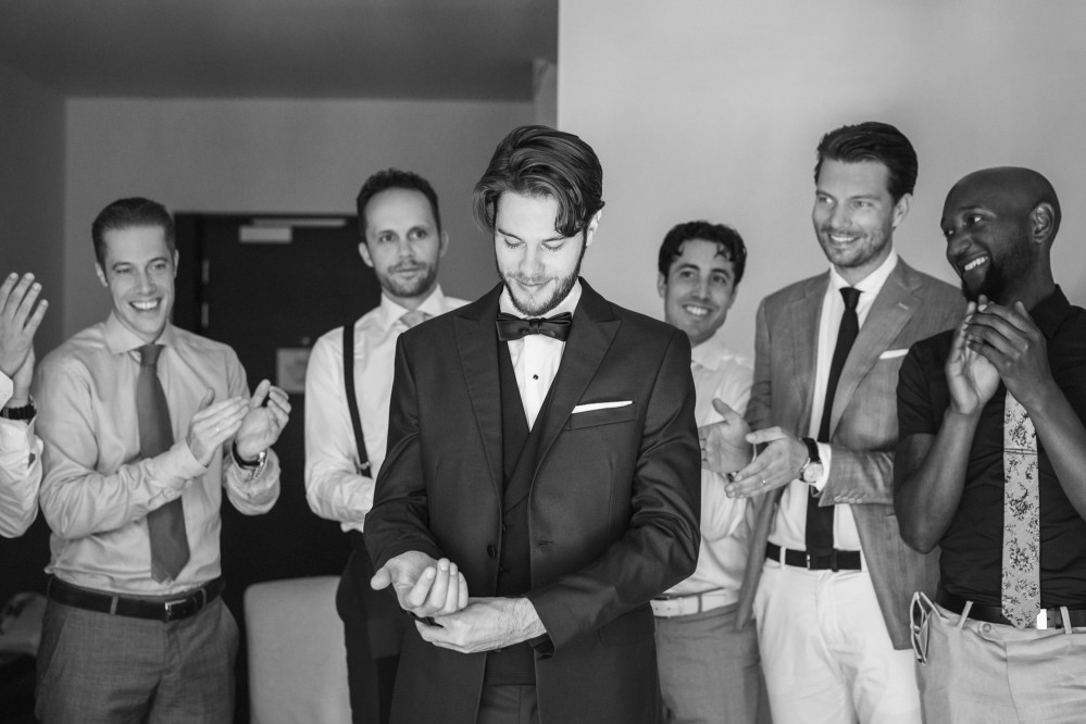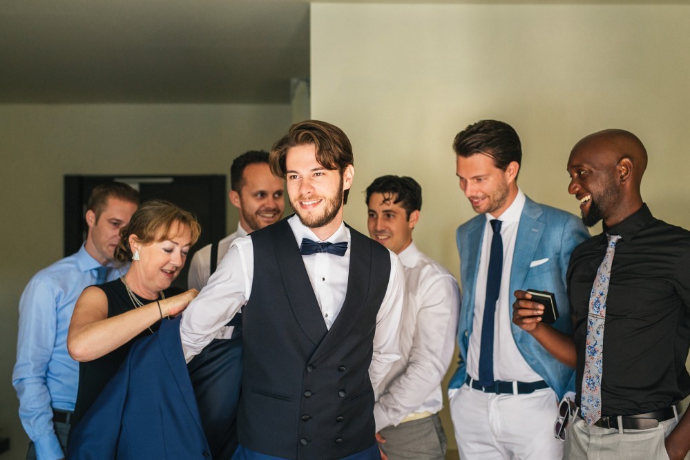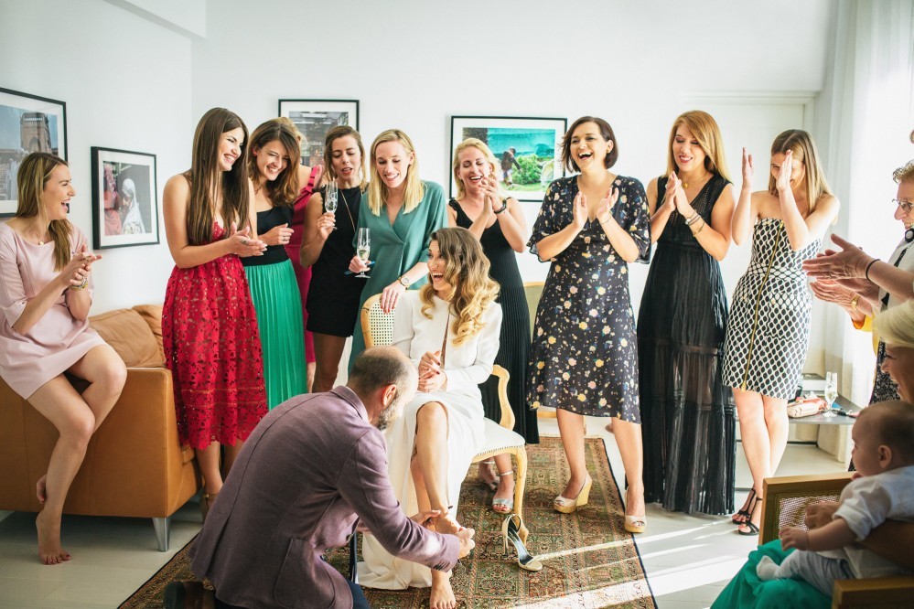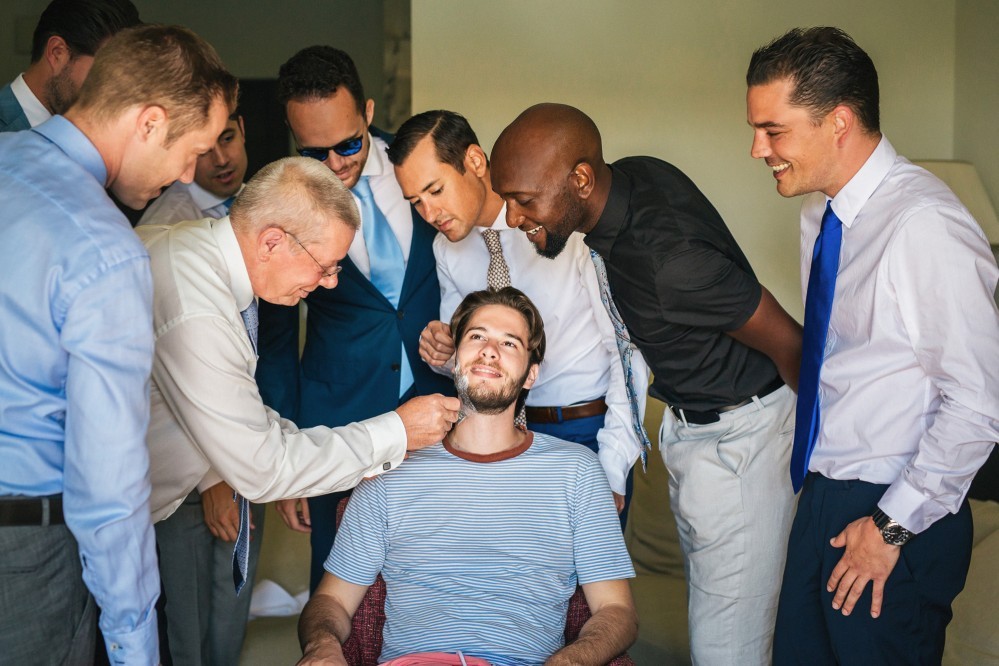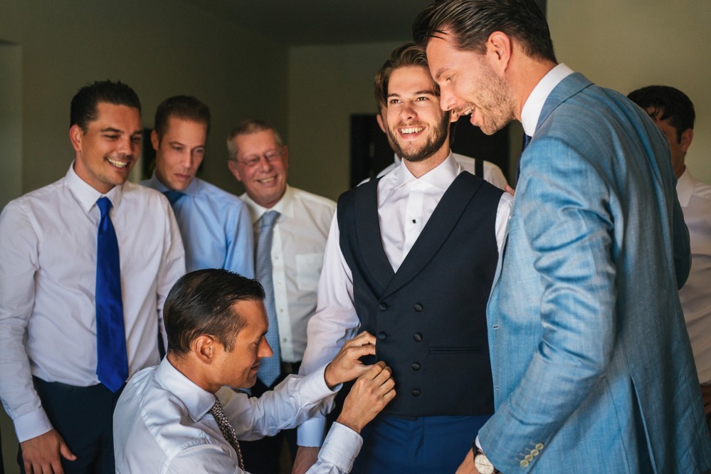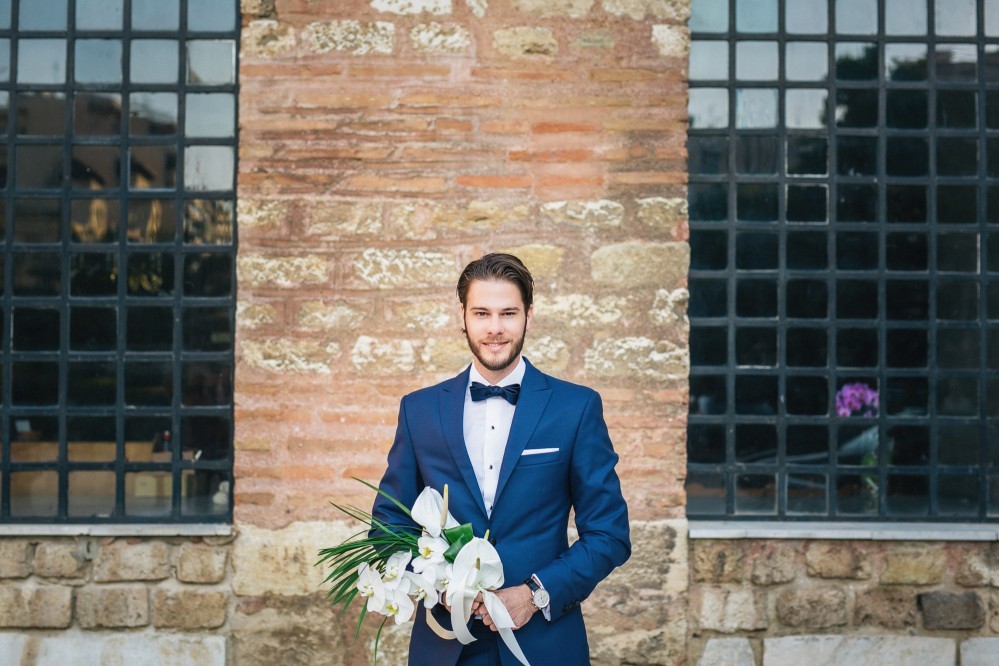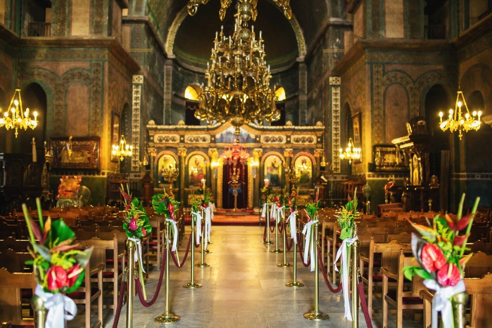 The overarching theme of this tasteful destination wedding was simplicity, challenged by the splashes of colour of the ‘Urban Jungle’ floral arrangements. Phalaenopsis, Strelitzia, red ginger and banana leaves adorned the church while the bridal bouquet consisted of white Calla lilies. Such vibrant elements are always welcome by top wedding photographers, as they truly elevate the pictures and contribute to the high quality result.