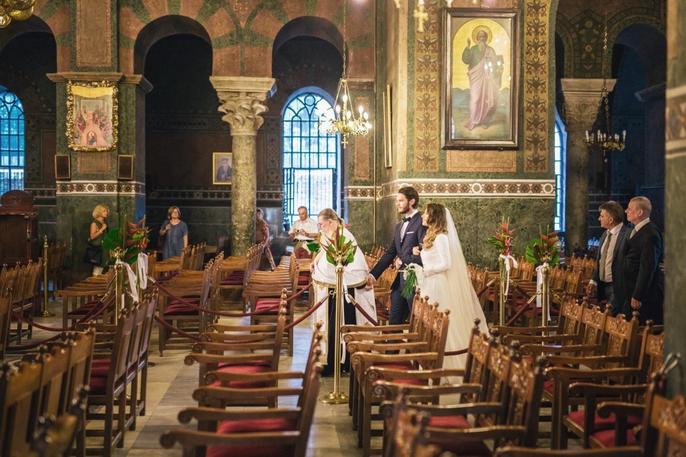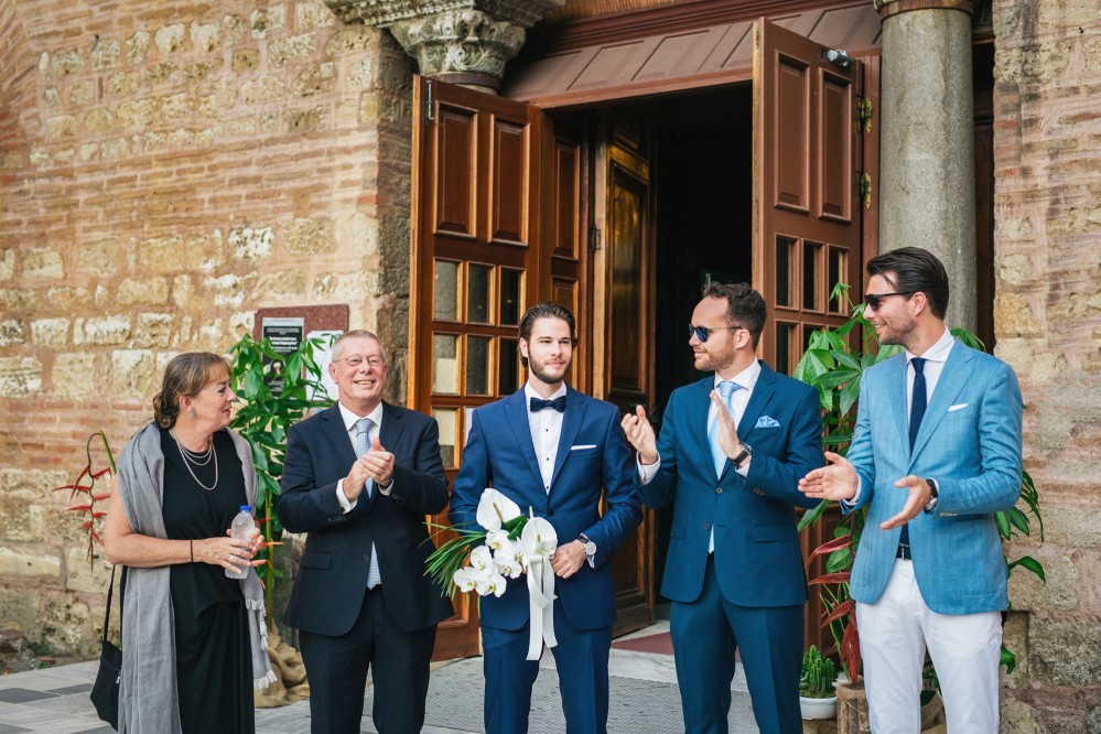 Maria is an incredibly charming lady with a disarming smile- one that Oscar didn’t fail to notice, when these two met in Amsterdam a few years back. The couple now lives in London and decided to get married on the 21st of August. For that, they chose Maria’s hometown, Thessaloniki- a popular destination for weddings due to its proximity to the beach and easy access for international guests. They chose a magnificent Byzantine church, built in the 2nd century BC and a Unesco heritage site- the space allowed our photographers to take pictures full of character and carrying a unique story.