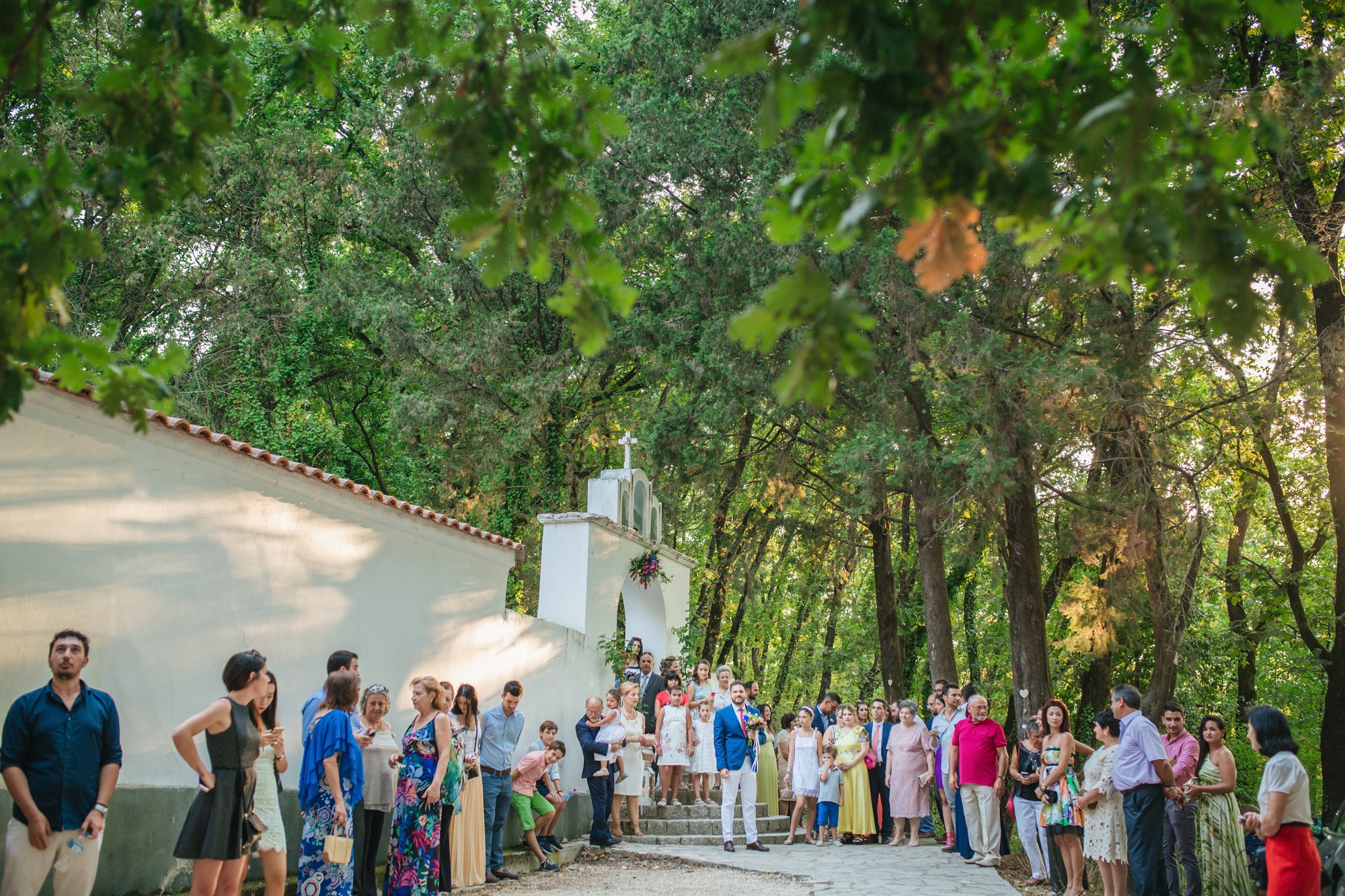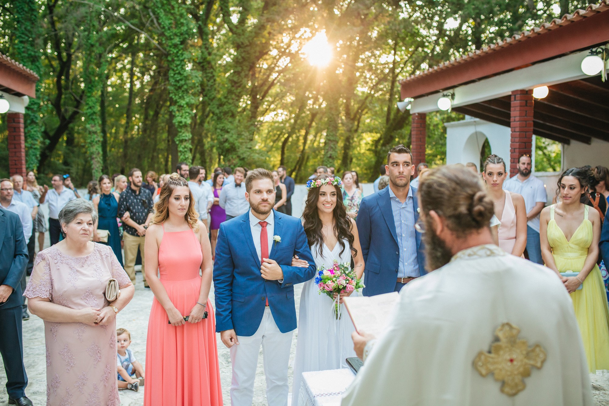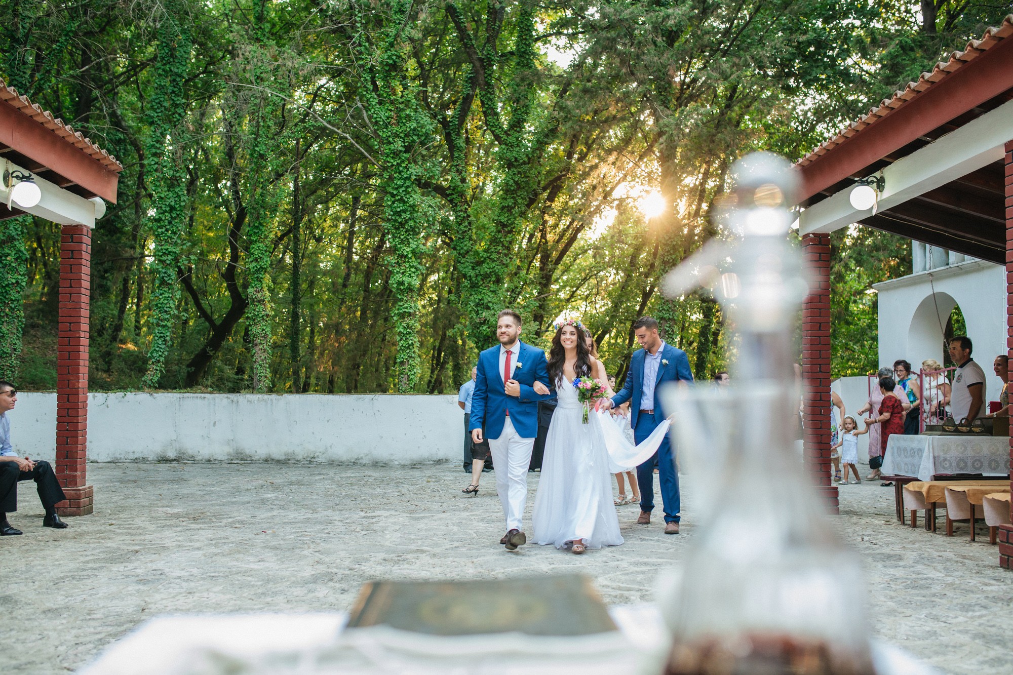 Η τελετή πραγματοποιήθηκε στην εκκλησία του Αγίου Αλεξάνδρου, ανάμεσα στα καταπράσινα δέντρα και δίπλα στη γαλάζια λίμνη. Φίλοι και συγγενείς υποδέχτηκαν το ζευγάρι με χαρά και συγκίνηση. Το μυστήριο τελέστηκε στον προαύλιο χώρο της εκκλησίας και αυτό ως φωτογράφος γάμου το χάρηκα πολύ, βγάζοντας φωτογραφίες του νεόνυμφους υπό το φυσικό φως του ήλιου.