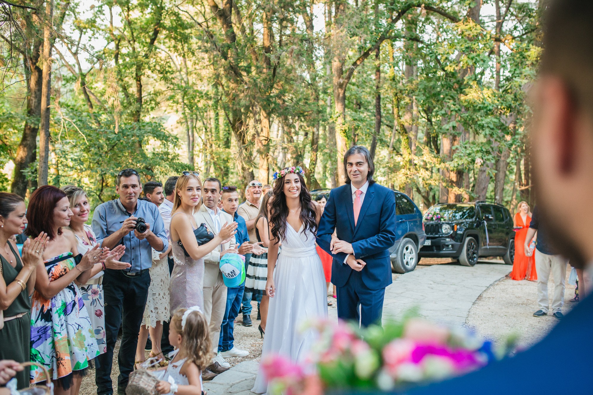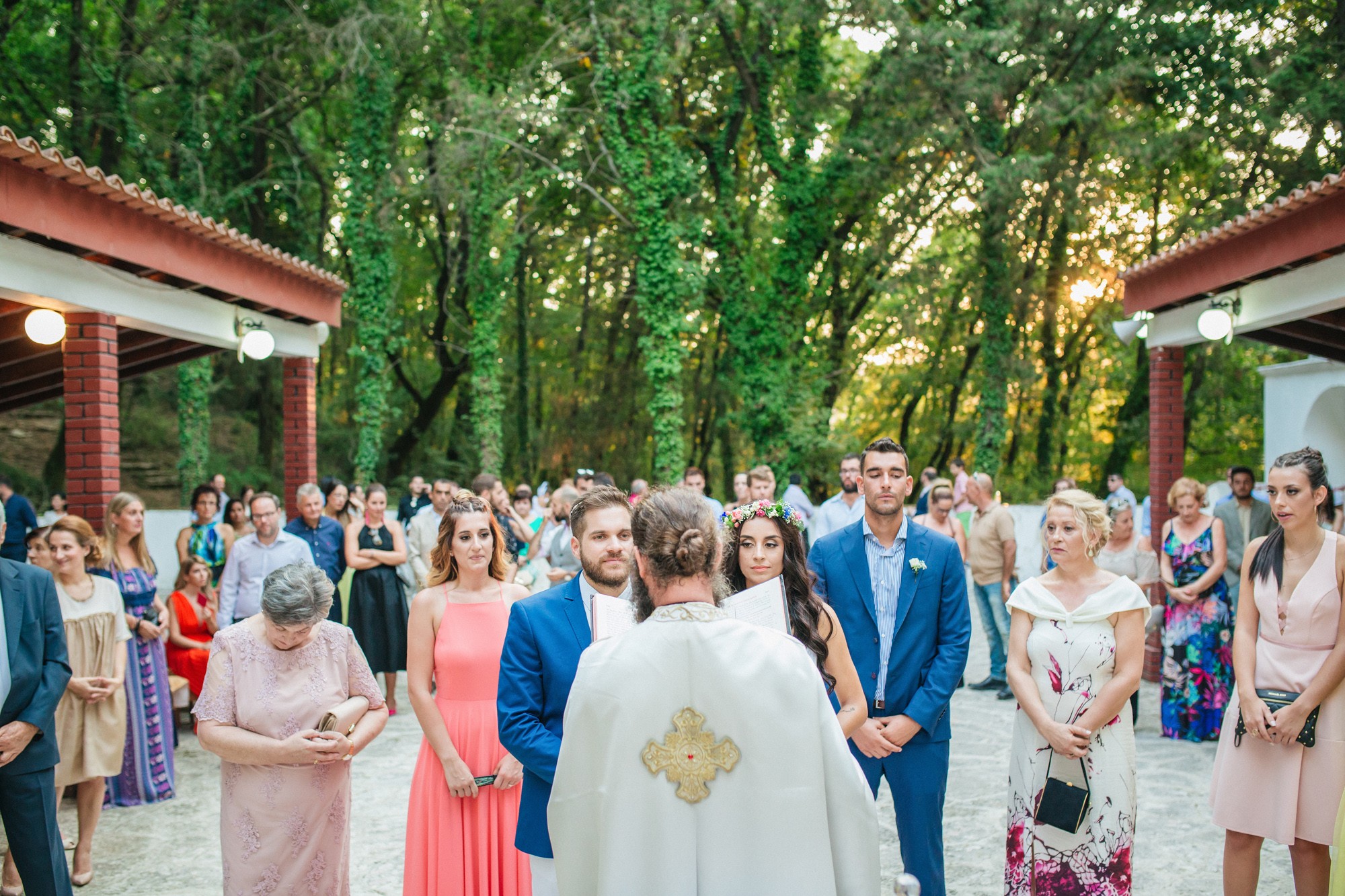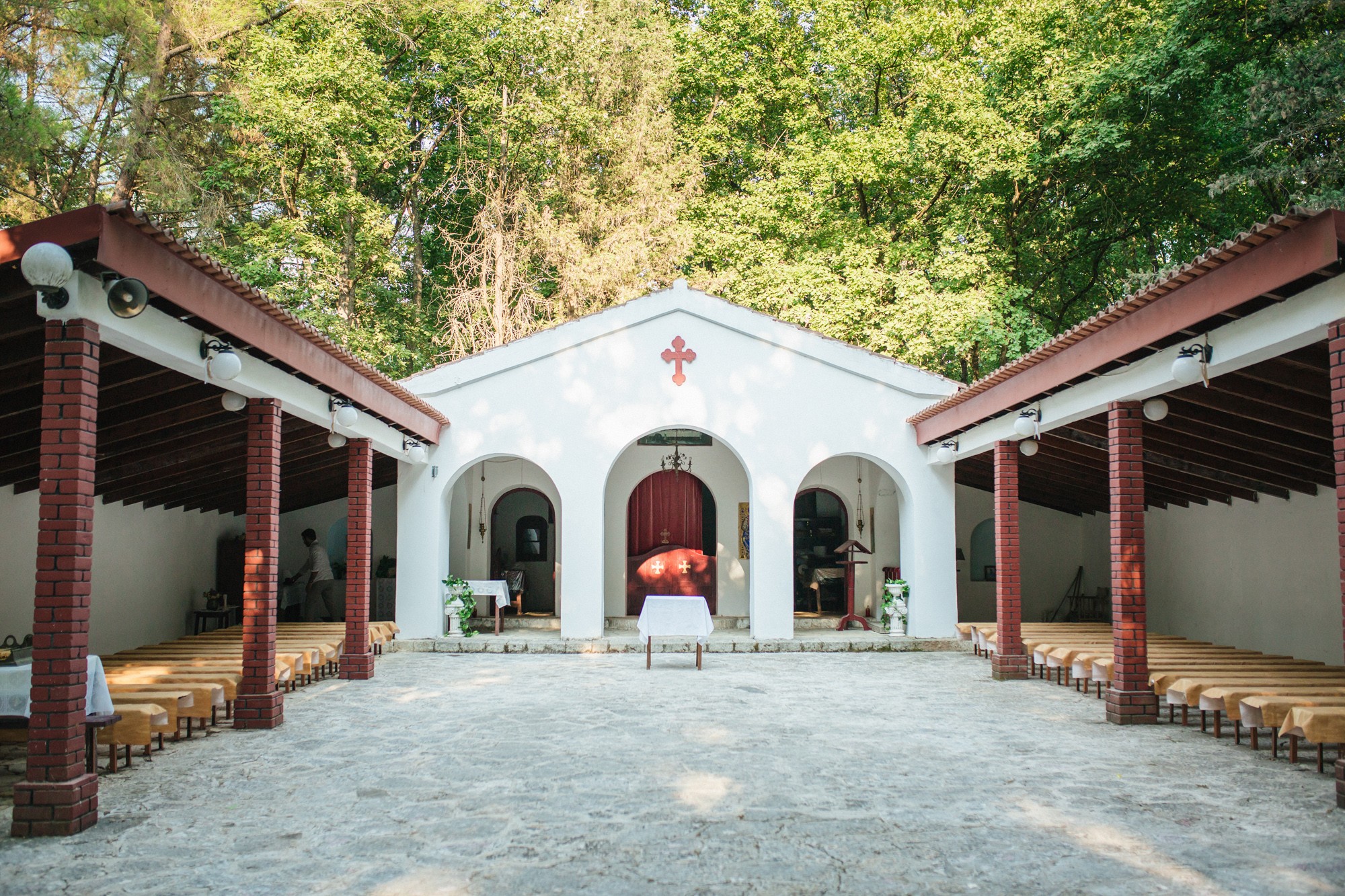 Η τελετή πραγματοποιήθηκε στην εκκλησία του Αγίου Αλεξάνδρου, ανάμεσα στα καταπράσινα δέντρα και δίπλα στη γαλάζια λίμνη. Φίλοι και συγγενείς υποδέχτηκαν το ζευγάρι με χαρά και συγκίνηση. Το μυστήριο τελέστηκε στον προαύλιο χώρο της εκκλησίας και αυτό ως φωτογράφος γάμου το χάρηκα πολύ, βγάζοντας φωτογραφίες του νεόνυμφους υπό το φυσικό φως του ήλιου.