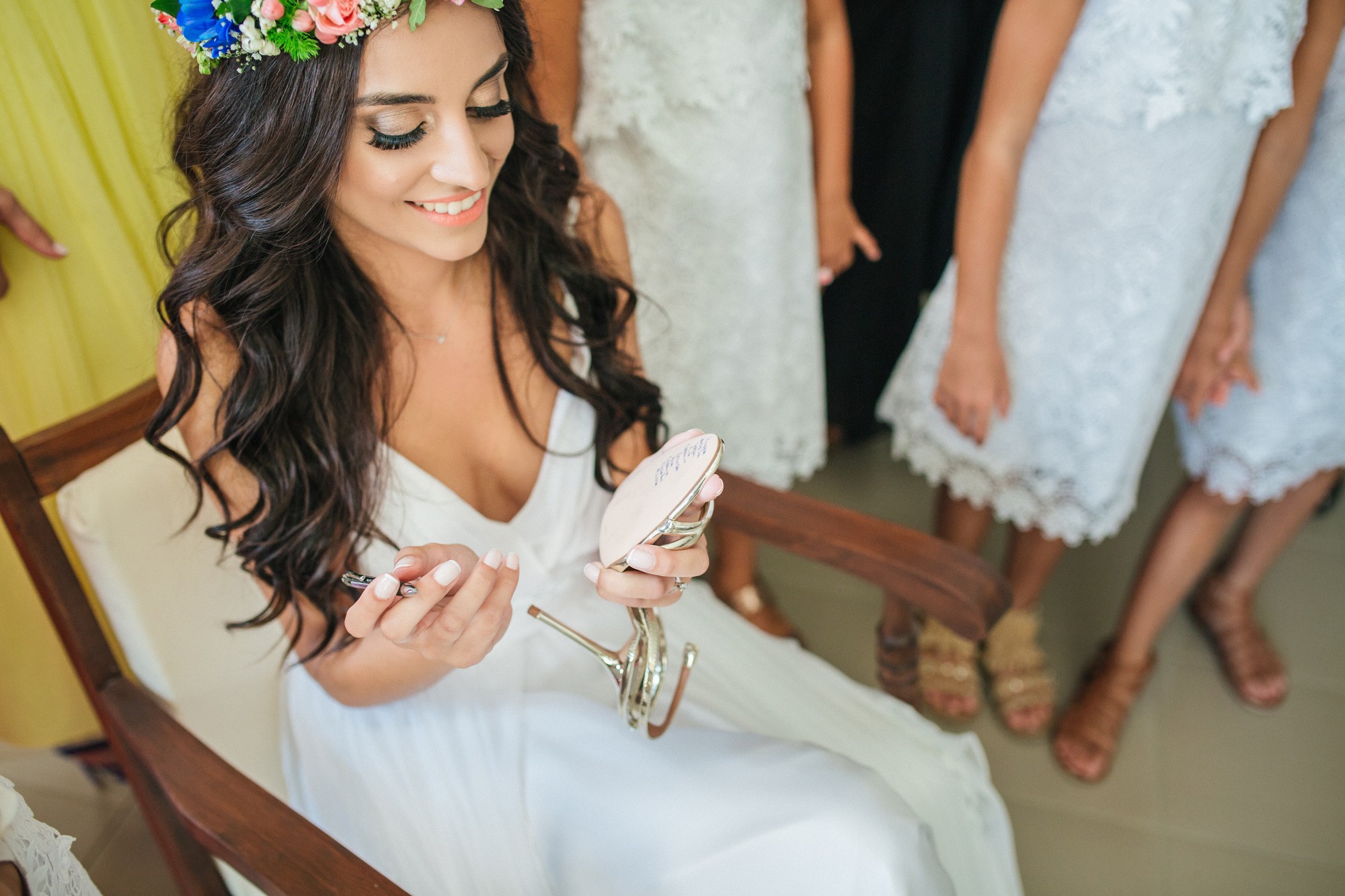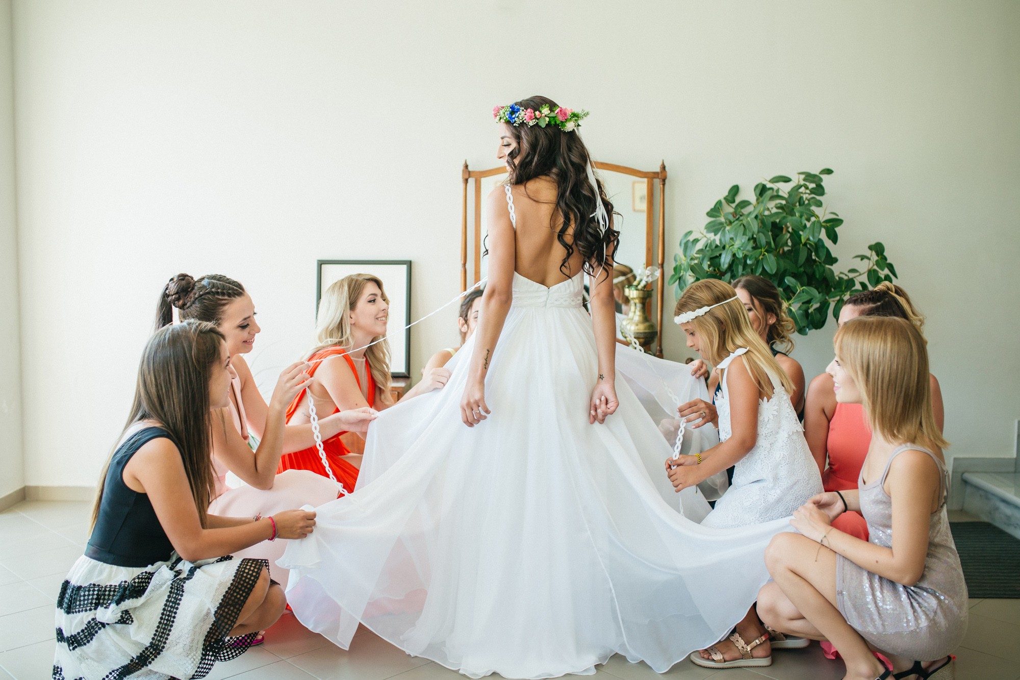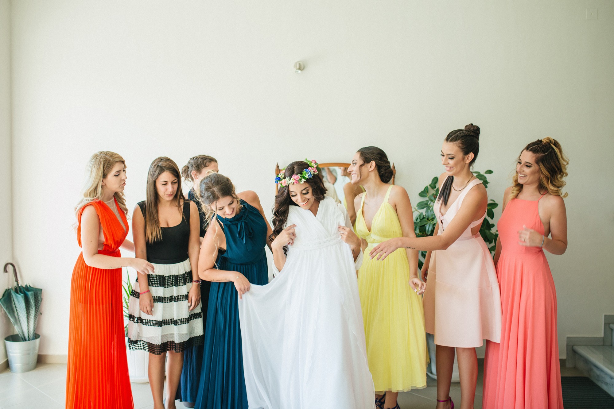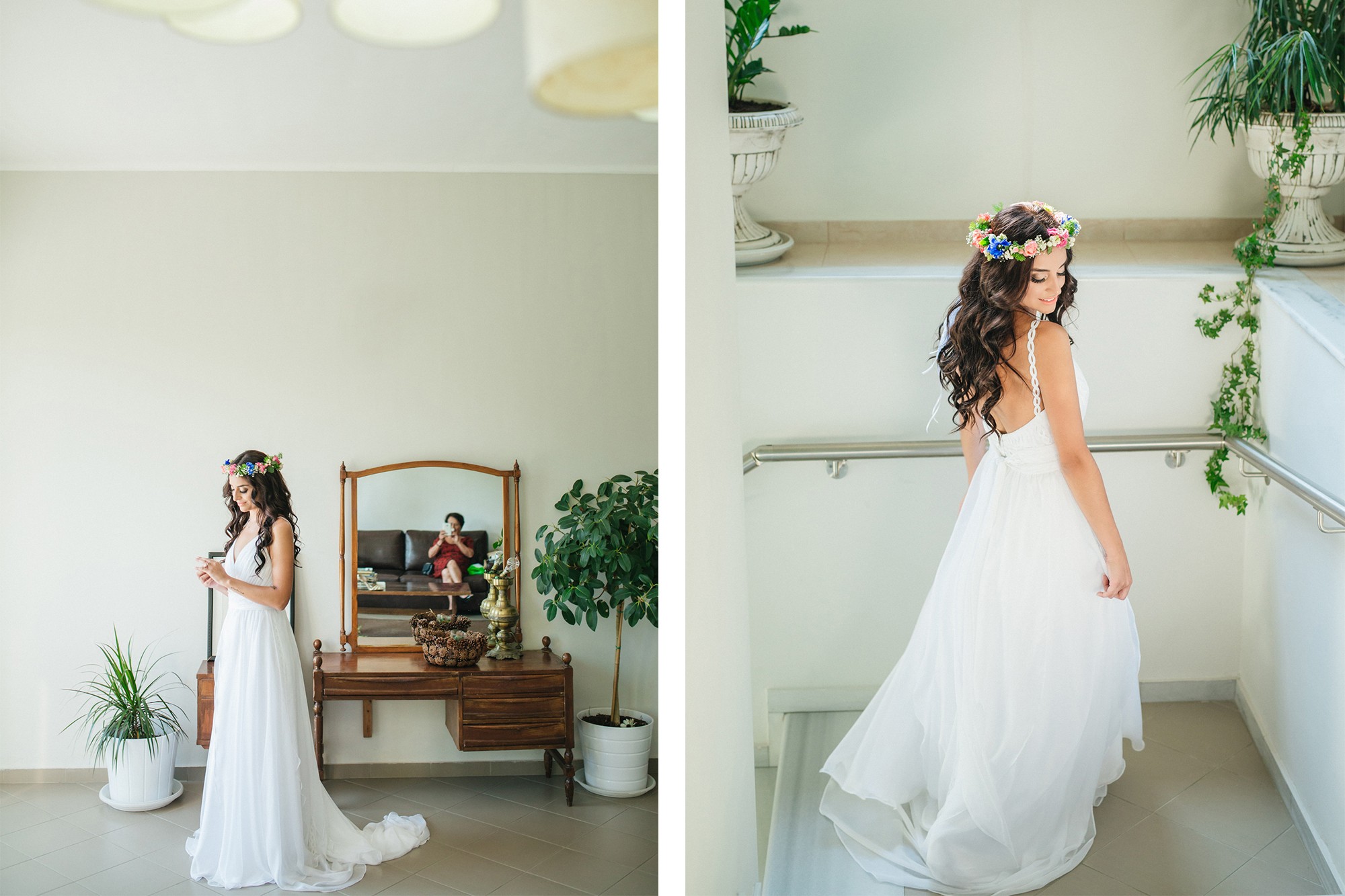 Η απλότητα θα χαρακτήριζε τον γάμο τους. Το ζευγάρι κατάφερε να δημιουργήσει ένα κλίμα που εναρμονίστηκε άριστα με το φυσικό περιβάλλον. Το νυφικό της Κωνσταντίνας ήταν λευκό και αέρινο. Τα λαμπερά μαλλιά της στόλιζε ένα πολύχρωμο στεφάνι με φρέσκα λουλούδια και ζωηρά χρώματα.