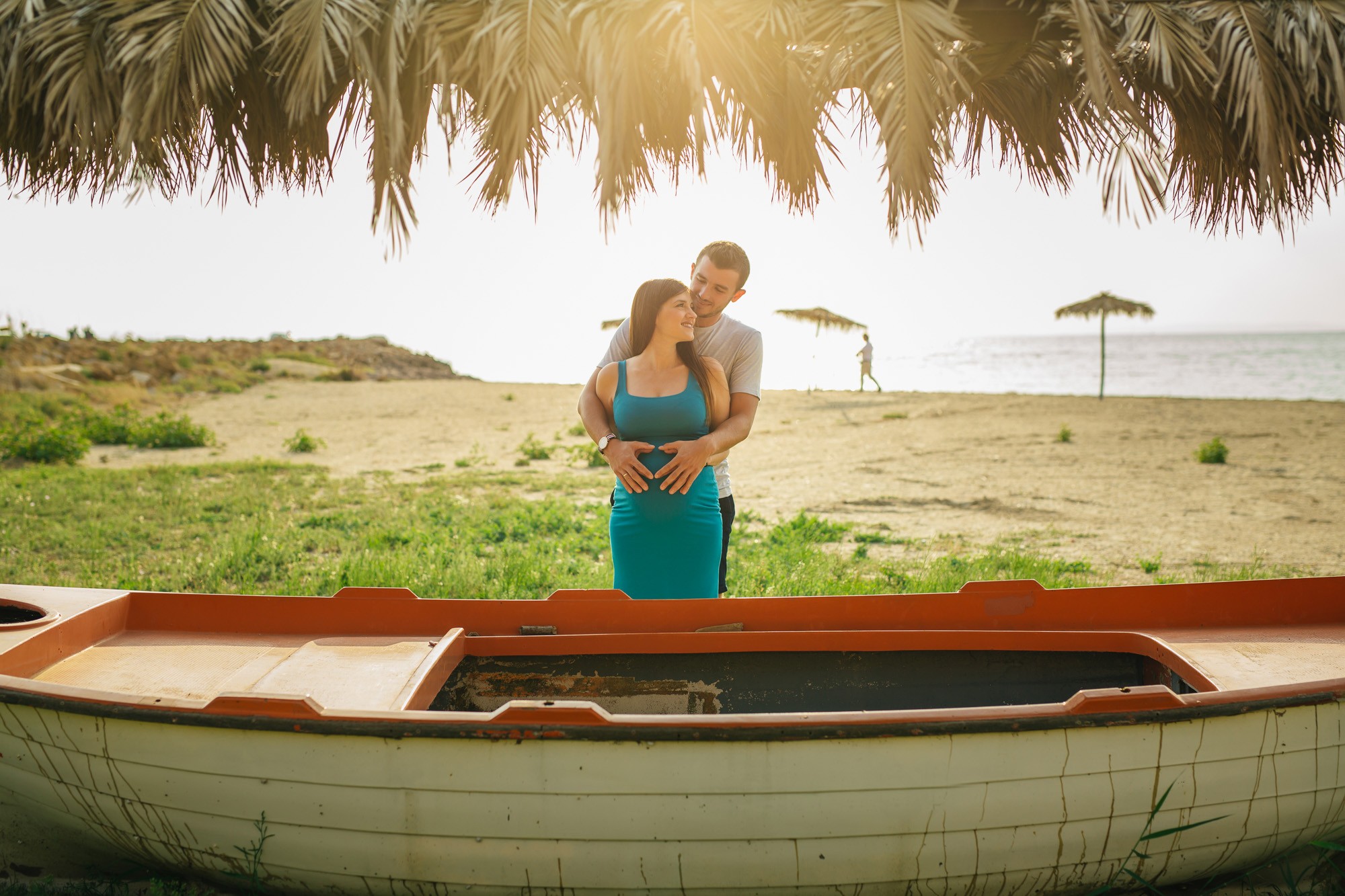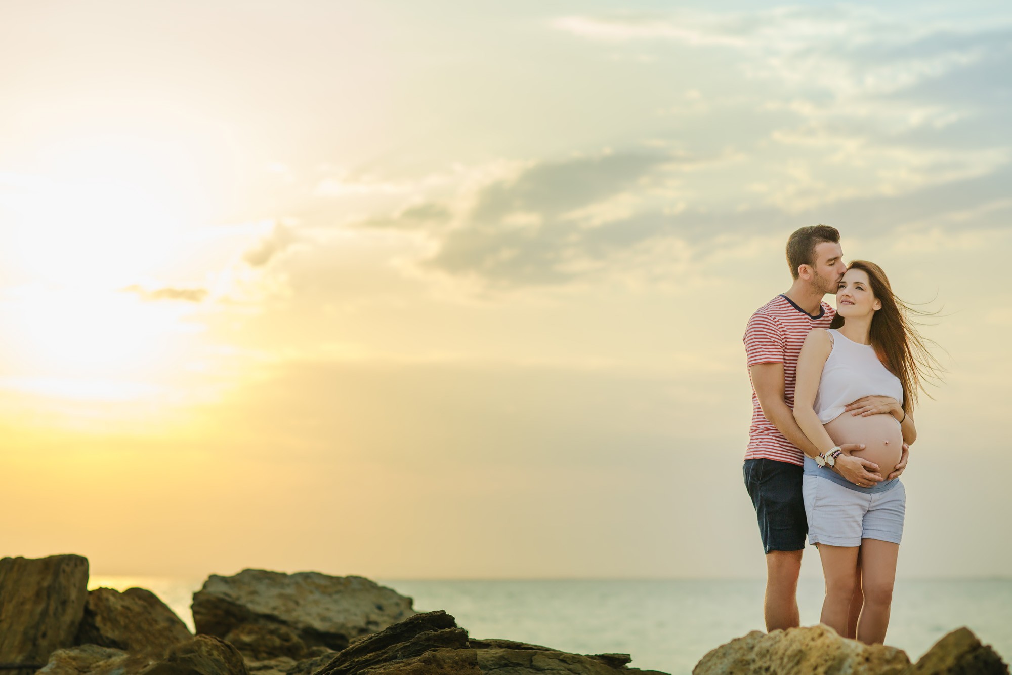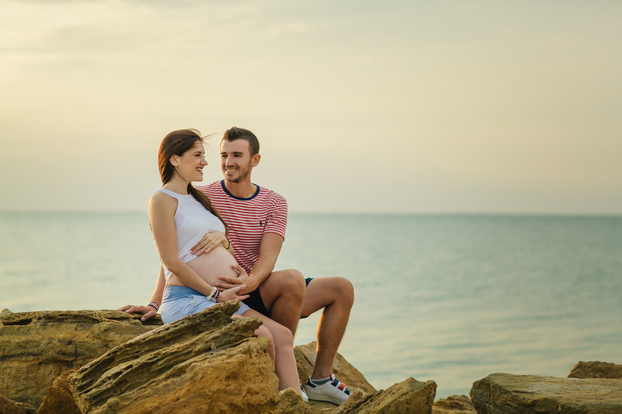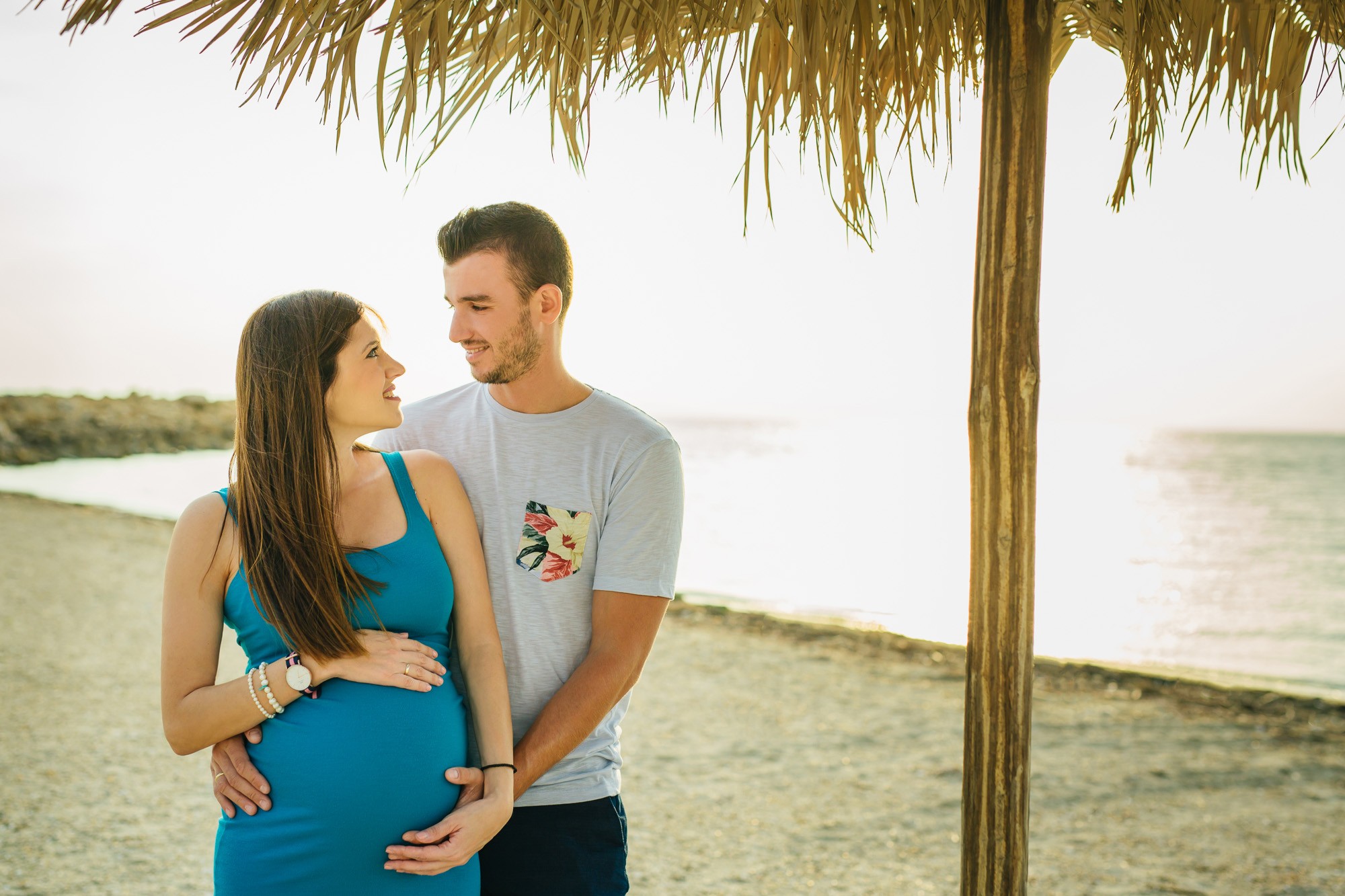 Η φωτογράφισή μας ξεκίνησε πλάι στην αμμουδιά. Η ηρεμία που αποπνέει η θάλασσα και το απίστευτα όμορφο τοπίο, τόνωσαν θετικά την δημιουργικότητα και την διάθεσή μας. Η Γεωργία, τόσο εύθυμη και όμορφη ακτινοβολούσε από ευτυχία αναμένοντας την γέννηση του μωρού τους, ενώ ο Λάζαρος, κρατώντας την πάντα στην αγκαλιά του δεν έπαψε να είναι τρυφερός μαζί της και να χαμογελά εγκάρδια.