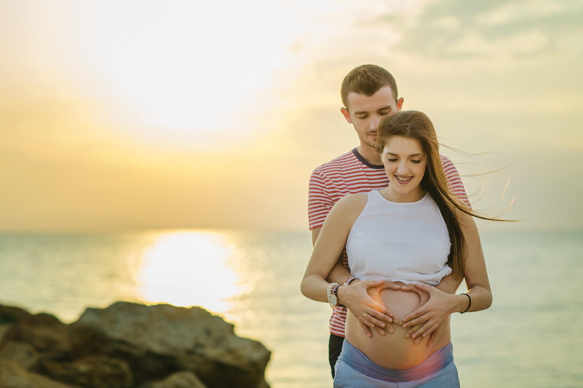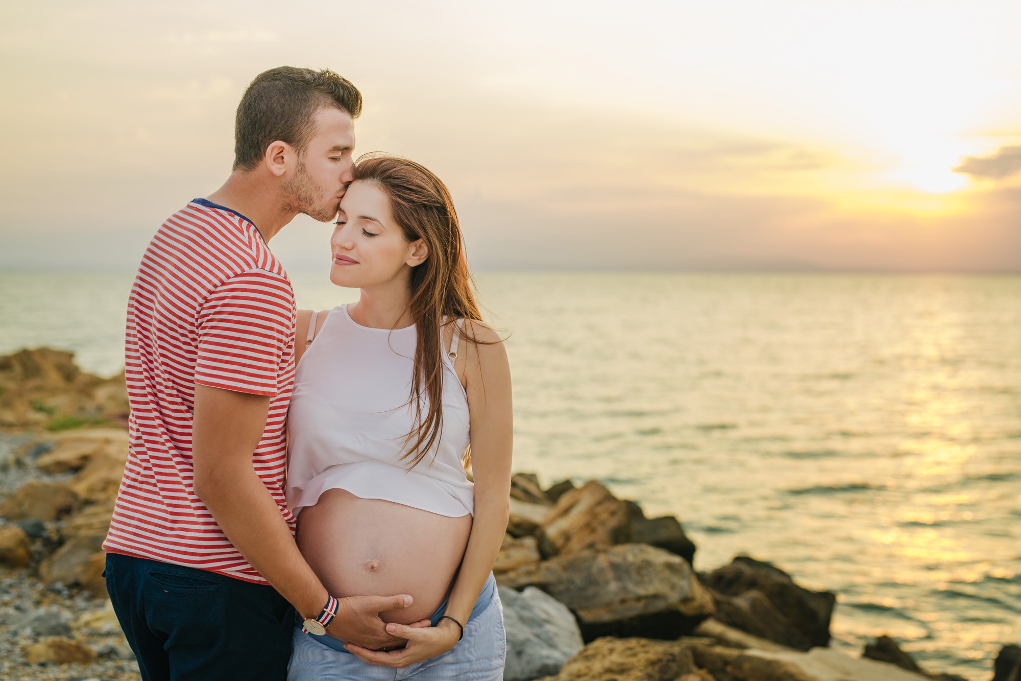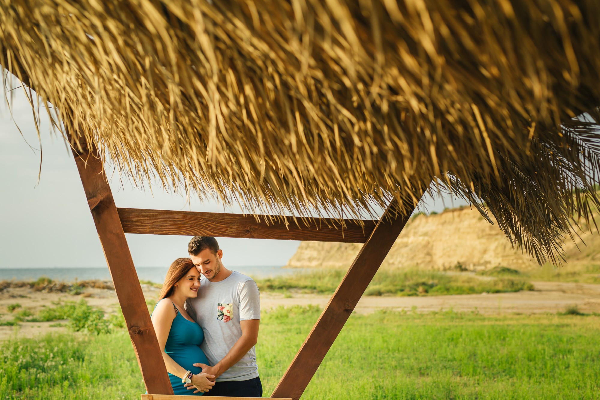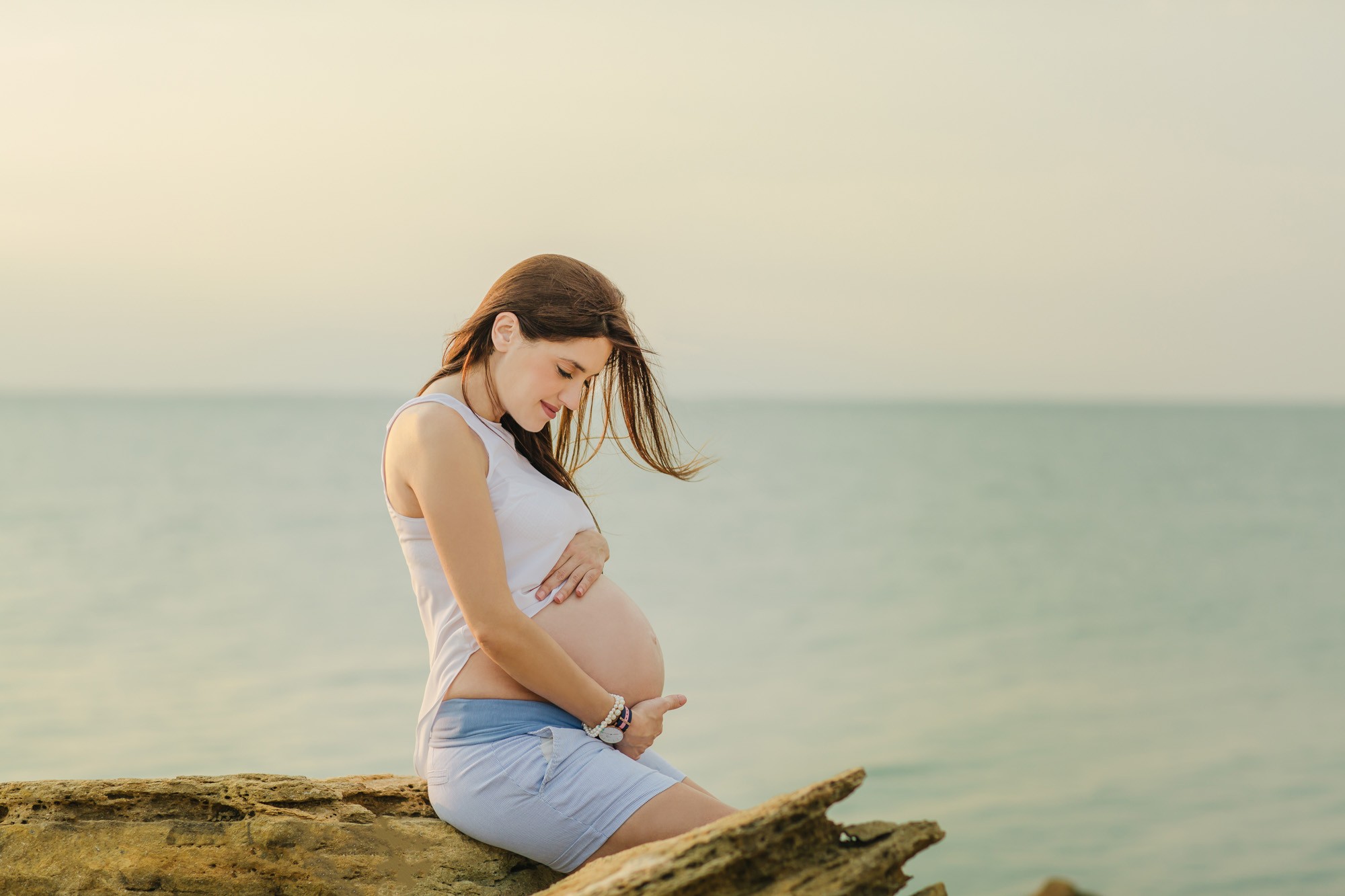 Η φωτογράφισή μας ξεκίνησε πλάι στην αμμουδιά. Η ηρεμία που αποπνέει η θάλασσα και το απίστευτα όμορφο τοπίο, τόνωσαν θετικά την δημιουργικότητα και την διάθεσή μας. Η Γεωργία, τόσο εύθυμη και όμορφη ακτινοβολούσε από ευτυχία αναμένοντας την γέννηση του μωρού τους, ενώ ο Λάζαρος, κρατώντας την πάντα στην αγκαλιά του δεν έπαψε να είναι τρυφερός μαζί της και να χαμογελά εγκάρδια.