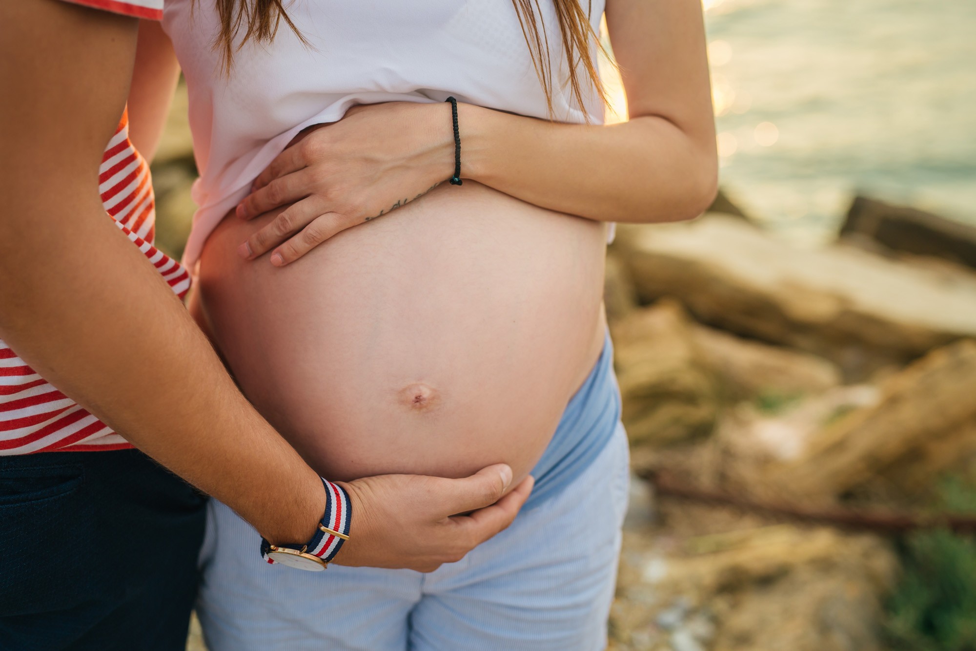 Συνεχίσαμε την φωτογράφιση πάνω στα παραθαλάσσια βράχια. Η ανυπομονησία και ο ενθουσιασμός που διαγράφονται στα πρόσωπα των ζευγαριών που πρόκειται να γίνουν γονείς αποτελούν ένα τόσο έντονο και θετικό στοιχείο που όλα τα ζευγάρια θέλουν να θυμούνται μετά από χρόνια, γι' αυτό και είναι τόσο σπουδαία και ιδιαίτερη η φωτογράφιση της εγκυμοσύνης. Η στοργή που νιώθει η Γεωργία και ο Λάζαρος για το μικρό αγγελούδι τους που σύντομα θα έρθει στον κόσμο, είναι συγκινητική και η φωτογράφιση της εγκυμοσύνης το κάνει αυτό φανερό με τον πιο γλυκό τρόπο.