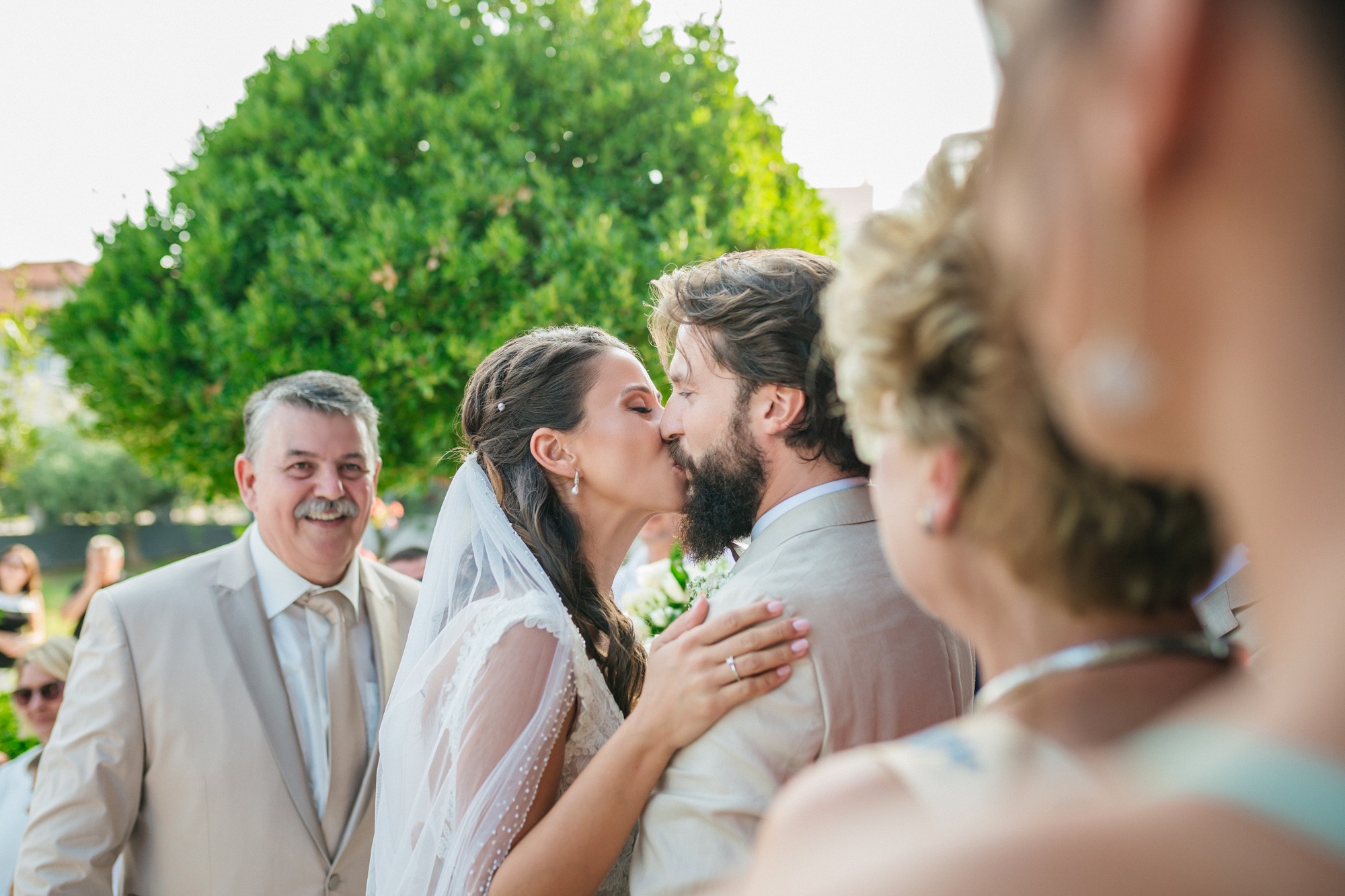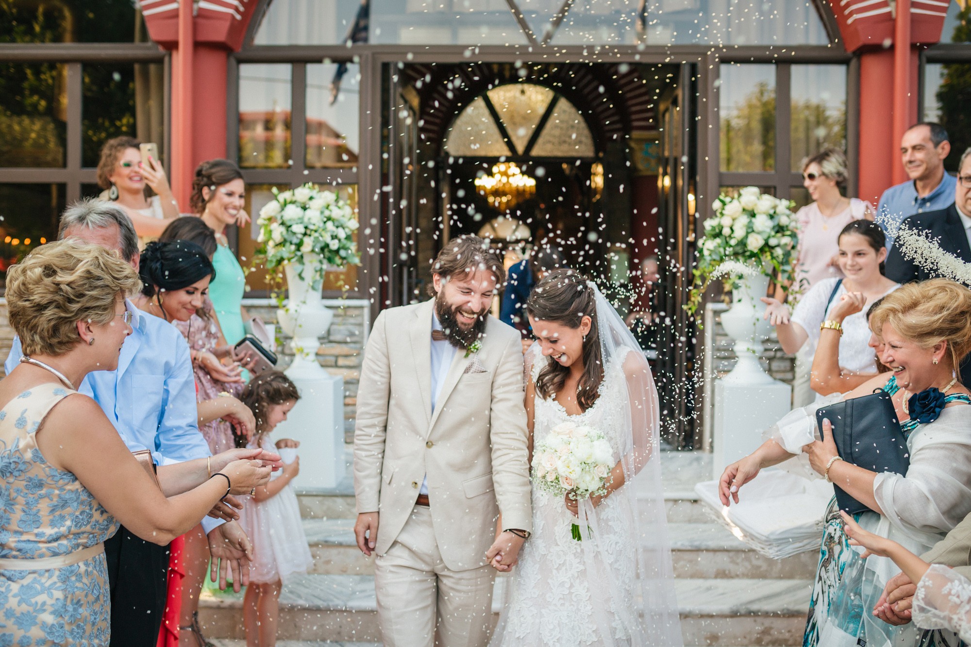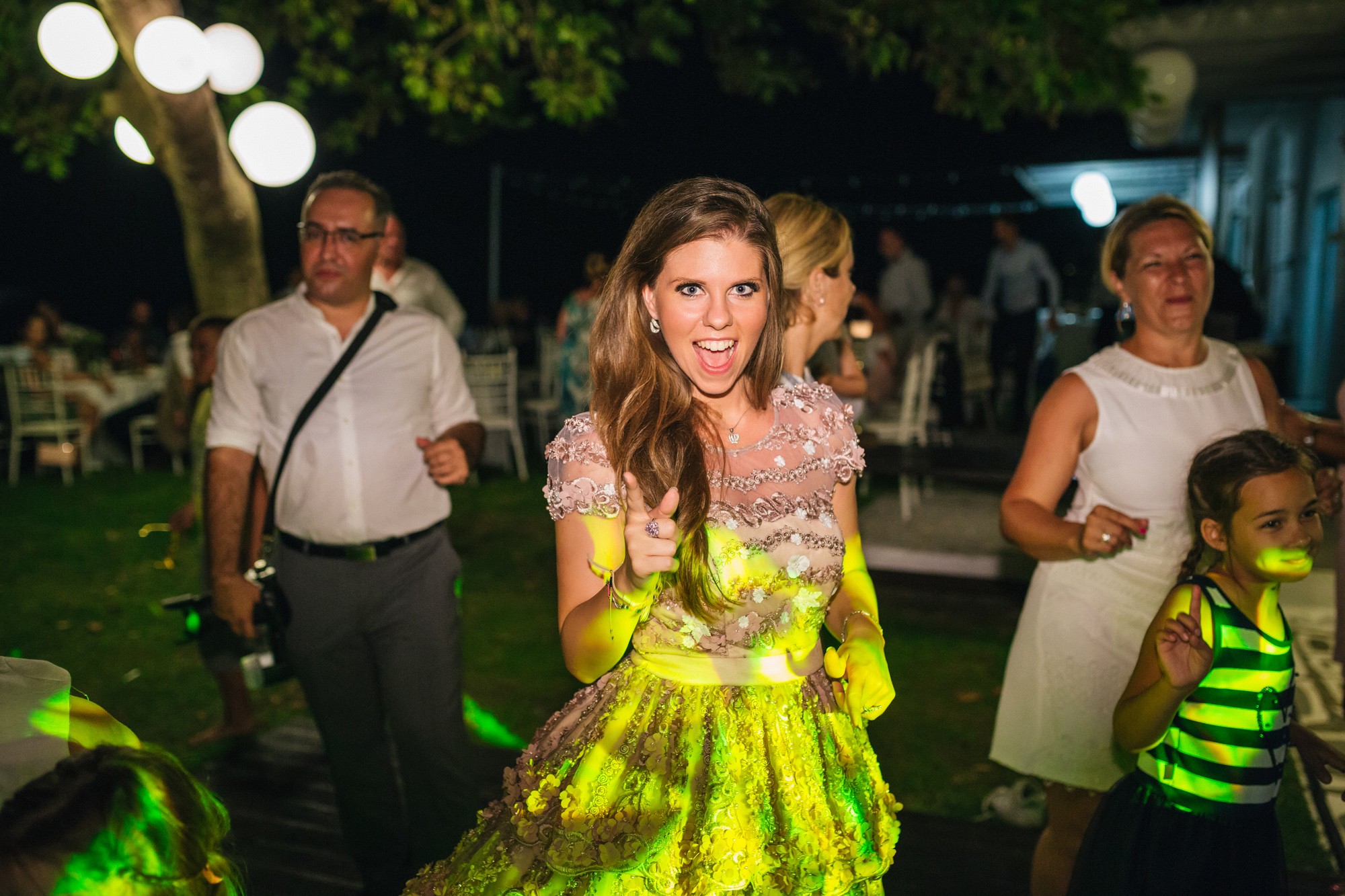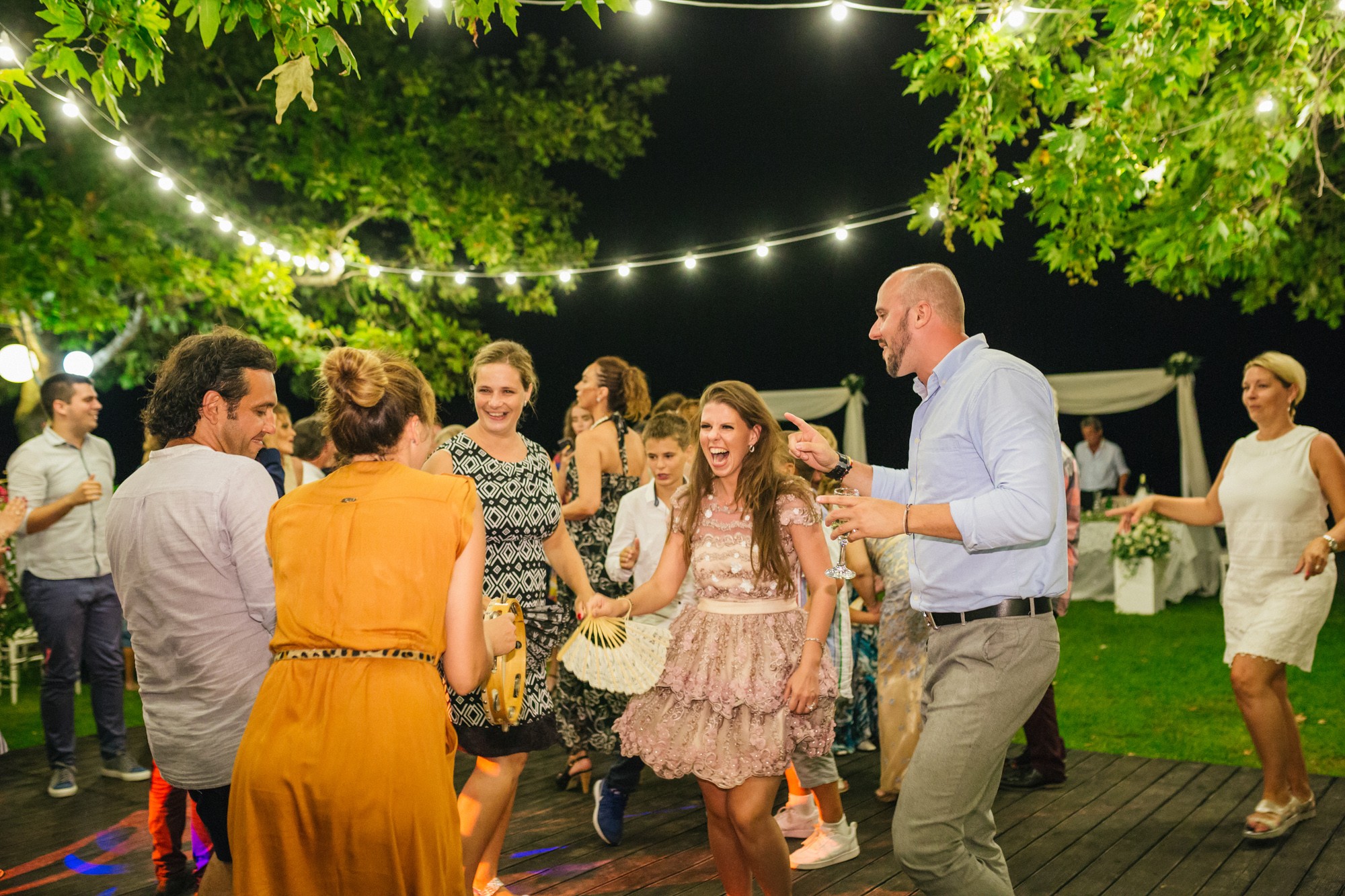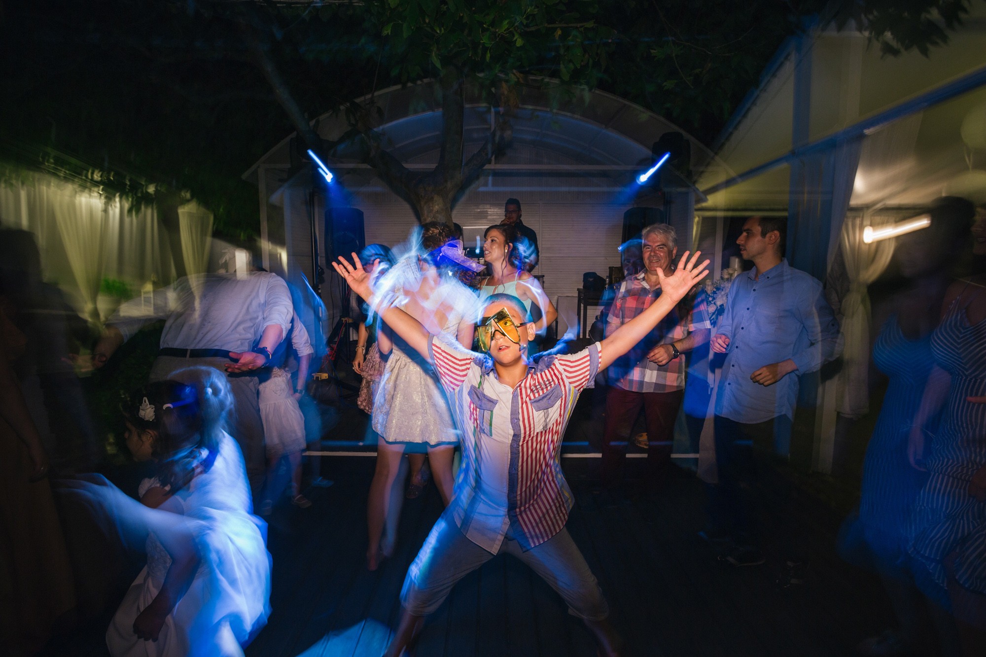 Οι καλεσμένοι περίμεναν το ζευγάρι στο Κτήμα Φαργκάνη και οι νεόνυμφοι κατέφθασαν εντυπωσιακά μέσα από τη θάλασσα με βαρκάκι. Η διάθεση που δημιουργήθηκε θύμιζε ένα πετυχημένο beach party γεμάτο ενέργεια και κέφι. Οι καλεσμένοι μαζί με το ζευγάρι άναψαν μια μεγάλη φωτιά στην παραλία και στη συνέχεια φώτισαν τον ουρανό με πανέμορφα κόκκινα φαναράκια. Οι φωτογραφίες αυτής της ρομαντικής στιγμής θα μας μείνουν αξέχαστες.