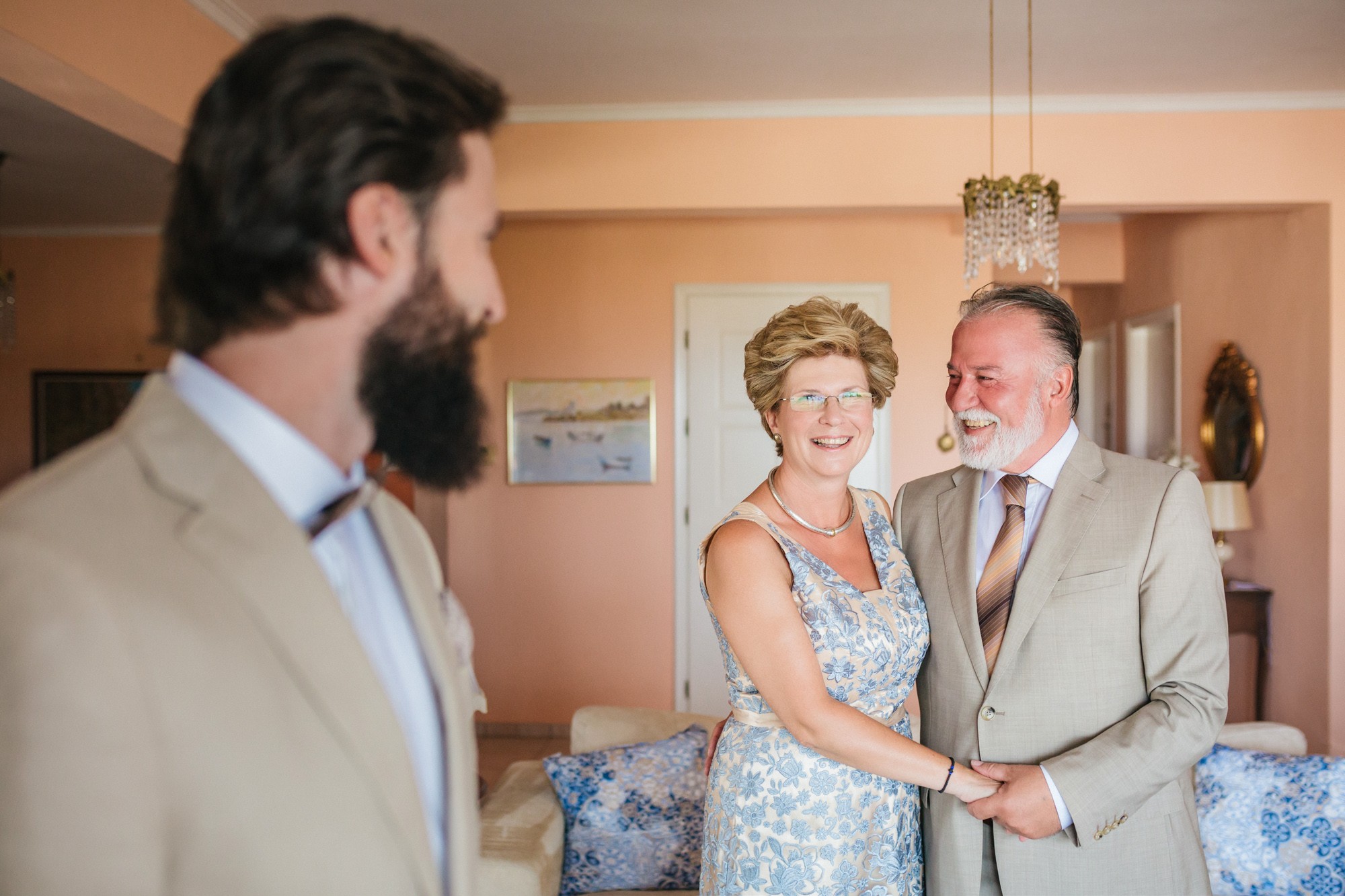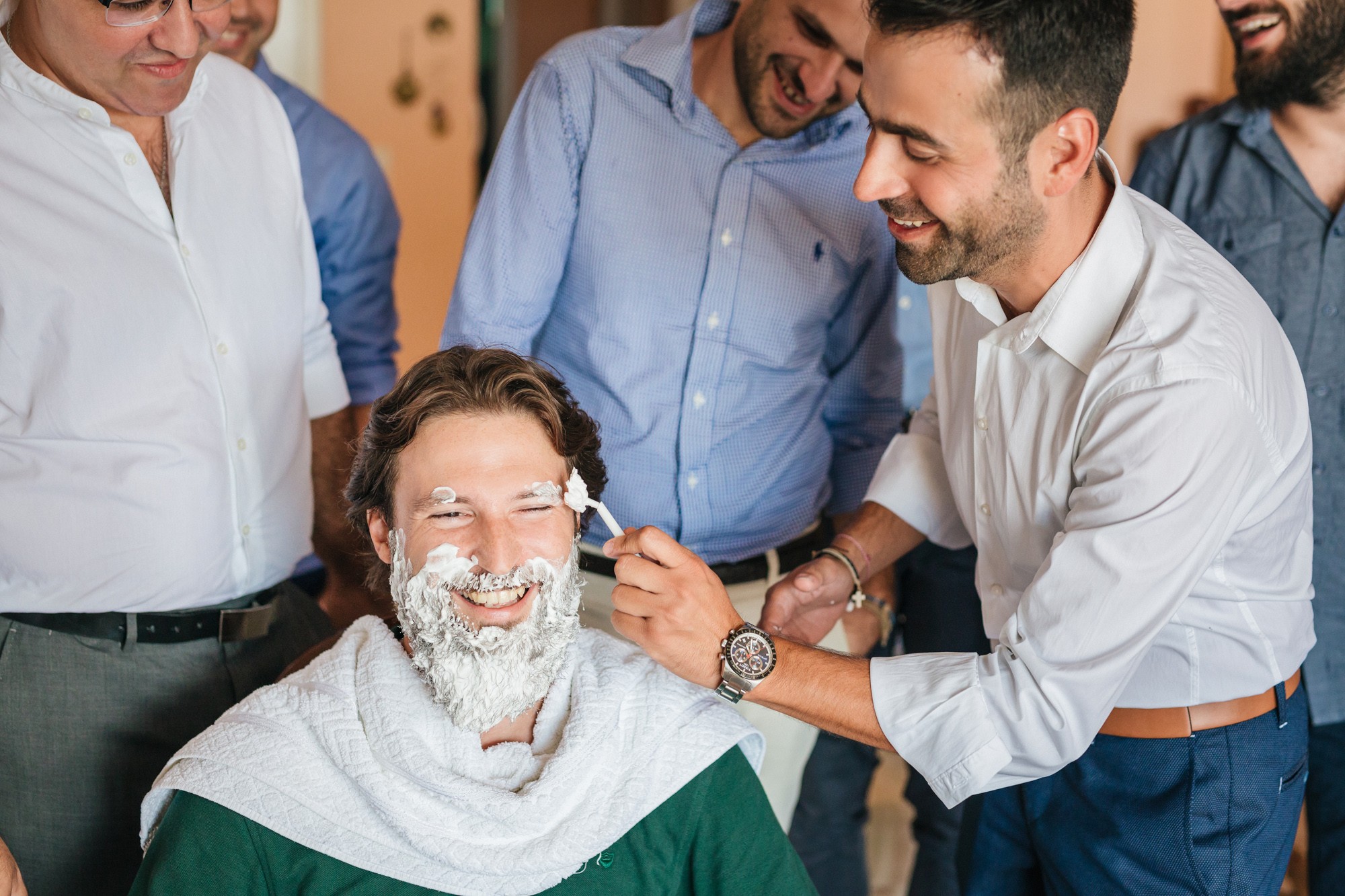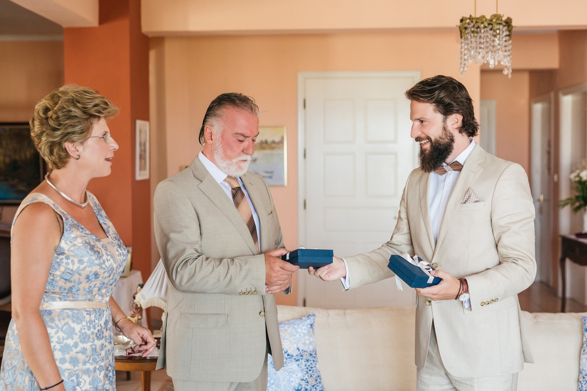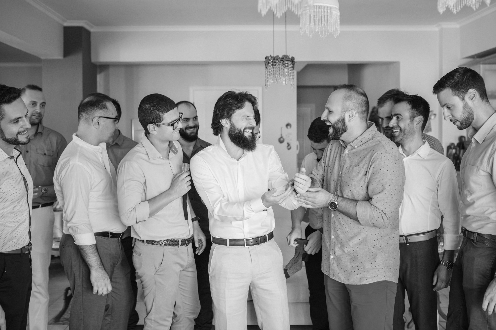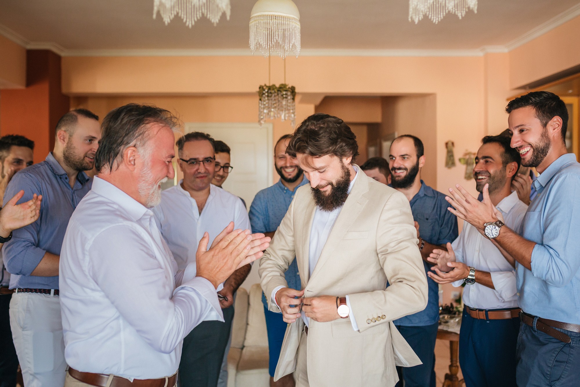 Οι καλεσμένοι περίμεναν το ζευγάρι στο Κτήμα Φαργκάνη και οι νεόνυμφοι κατέφθασαν εντυπωσιακά μέσα από τη θάλασσα με βαρκάκι. Η διάθεση που δημιουργήθηκε θύμιζε ένα πετυχημένο beach party γεμάτο ενέργεια και κέφι. Οι καλεσμένοι μαζί με το ζευγάρι άναψαν μια μεγάλη φωτιά στην παραλία και στη συνέχεια φώτισαν τον ουρανό με πανέμορφα κόκκινα φαναράκια. Οι φωτογραφίες αυτής της ρομαντικής στιγμής θα μας μείνουν αξέχαστες.