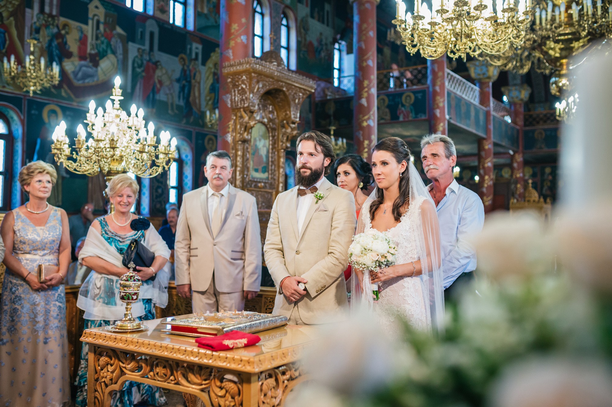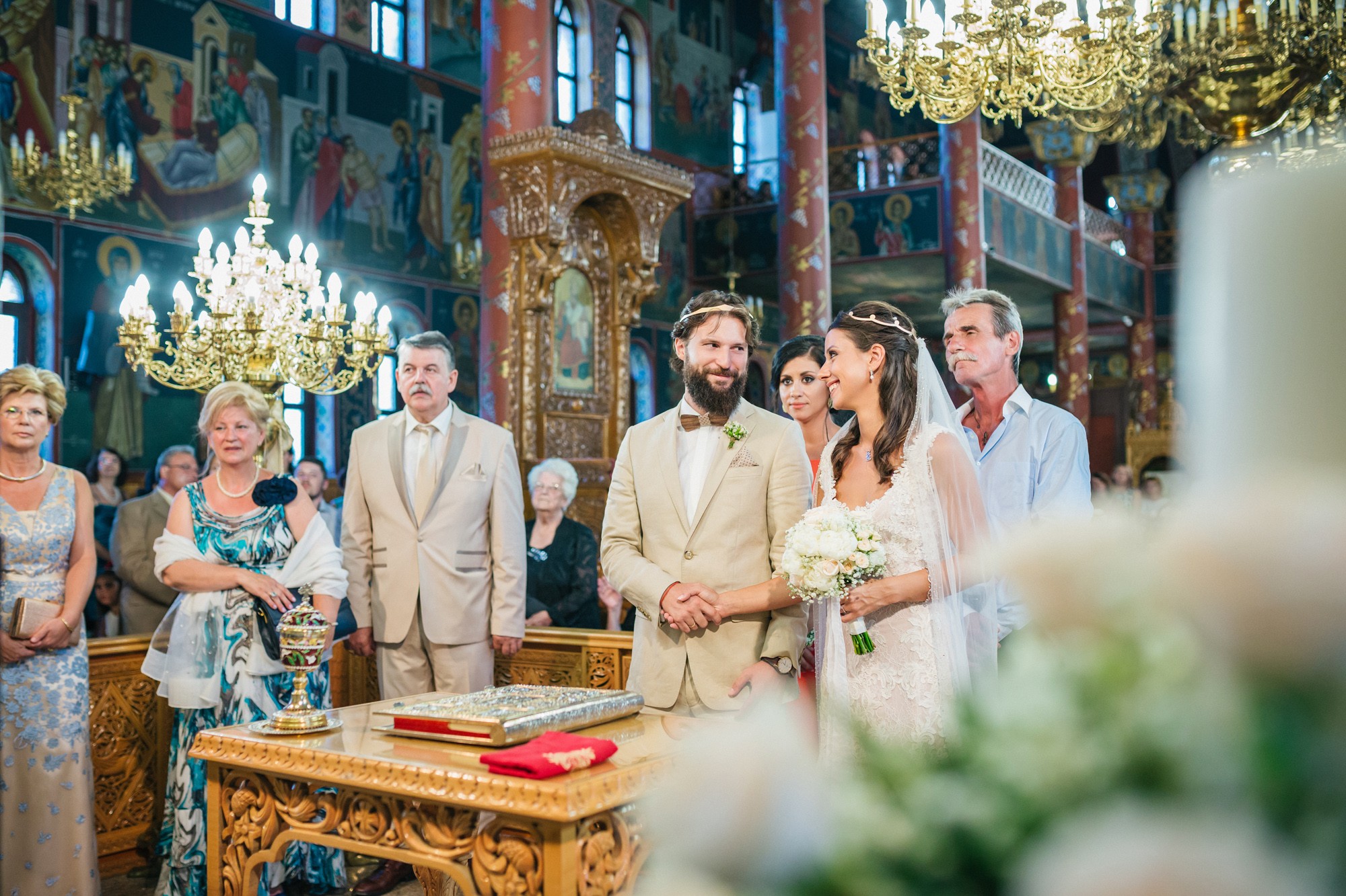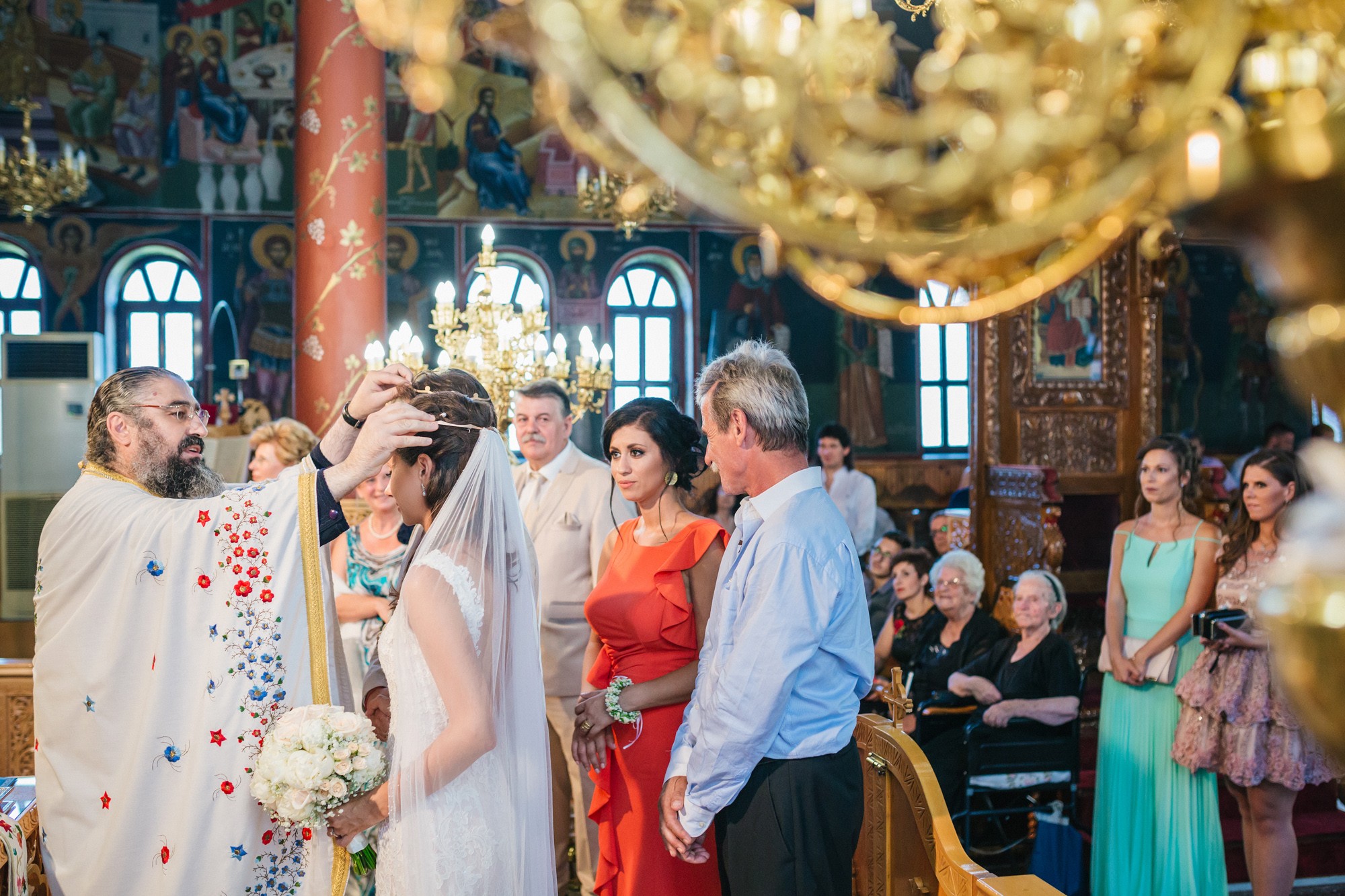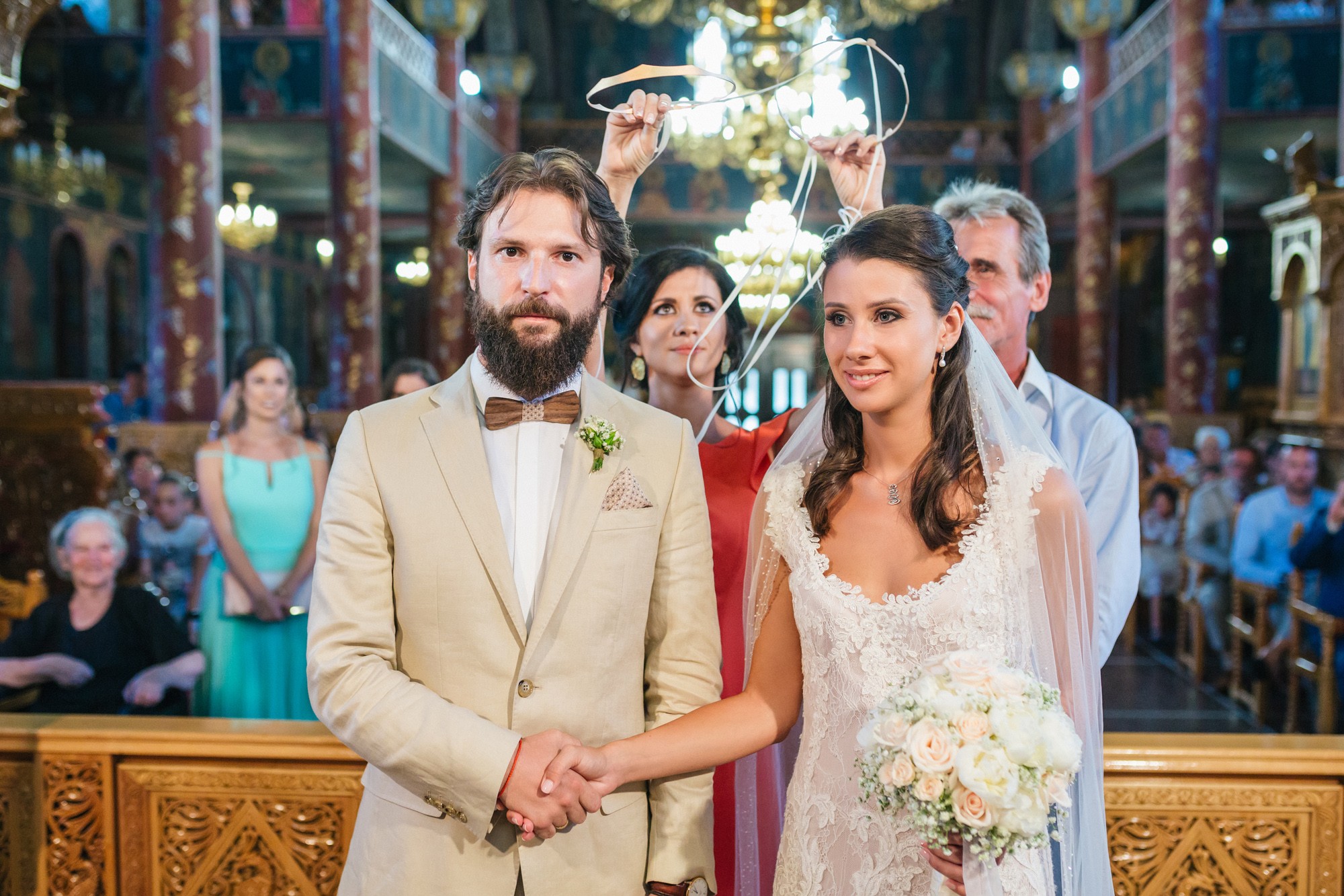 Το μυστήριο πραγματοποιήθηκε στο γραφικό και πέτρινο εκκλησάκι του Αγίου Νικολάου στη Λεπτοκαρυά. Η ένθερμη συνάντηση του ζευγαριού και η χαρά των καλεσμένων περιγράφονται μέσα από τις φωτογραφίες της τρυφερής εκείνης στιγμής.