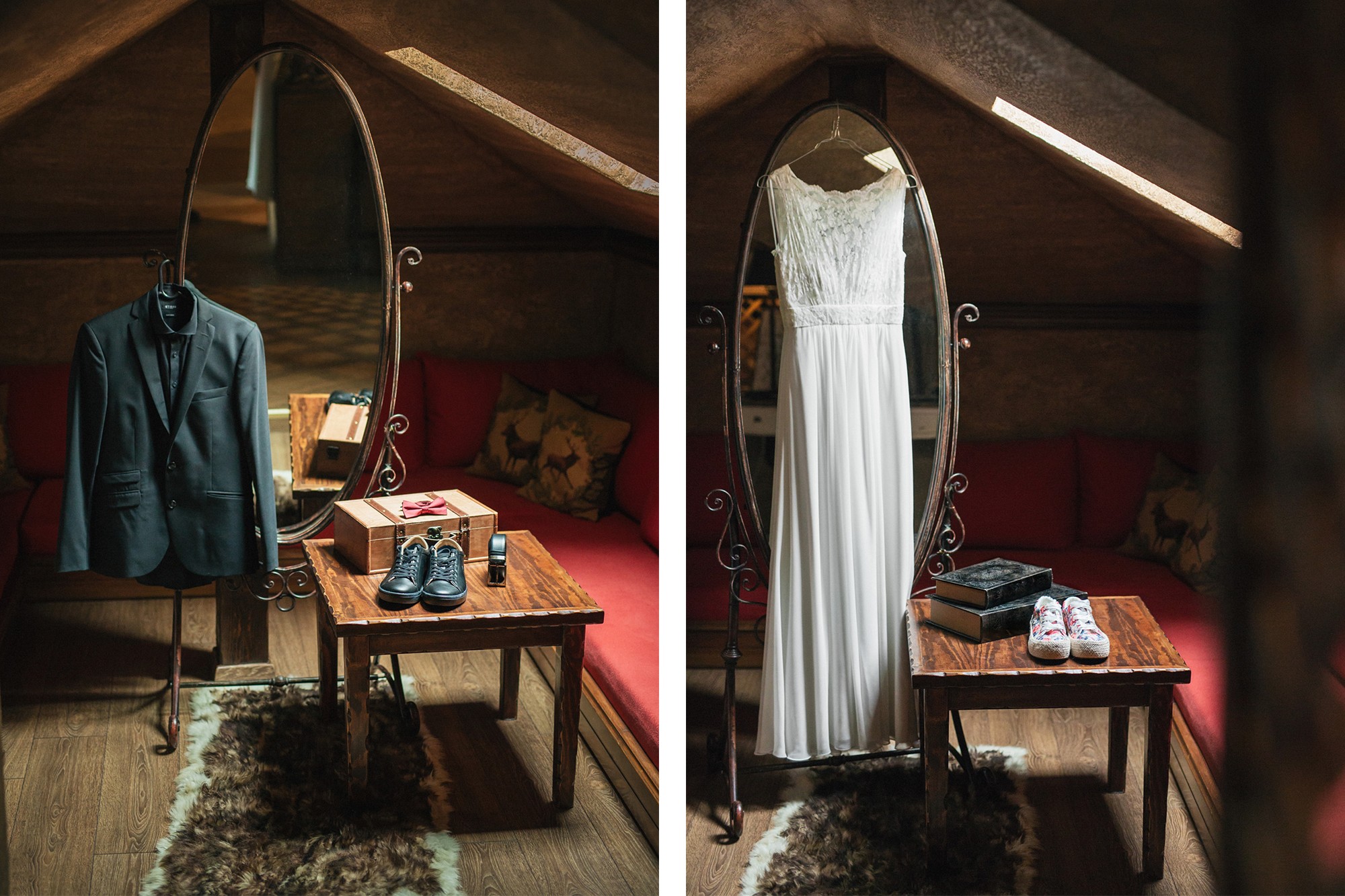 Γαμπρός και νύφη, ετοιμάστηκαν στο πανέμορφο και καταπράσινο Μέτσοβο. Η Μαρία επέλεξε ένα ρομαντικό νυφικό με δαντέλα, προσθέτοντας την δική της πινελιά, φόρεσε τα αγαπημένα της σταράκια. Ο Παύλος, απίστευτα γοητευτικός, επέλεξε ένα μαύρο κοστούμι και μαύρο πουκάμισο με κόκκινο παπιγιόν.