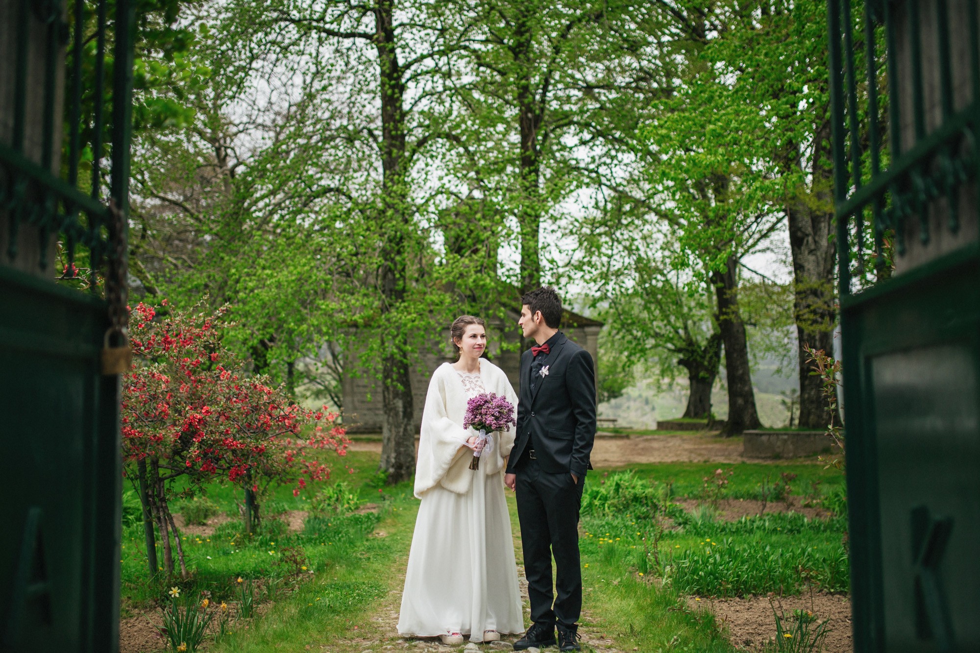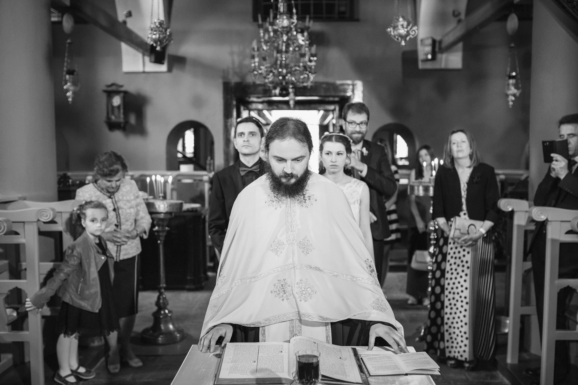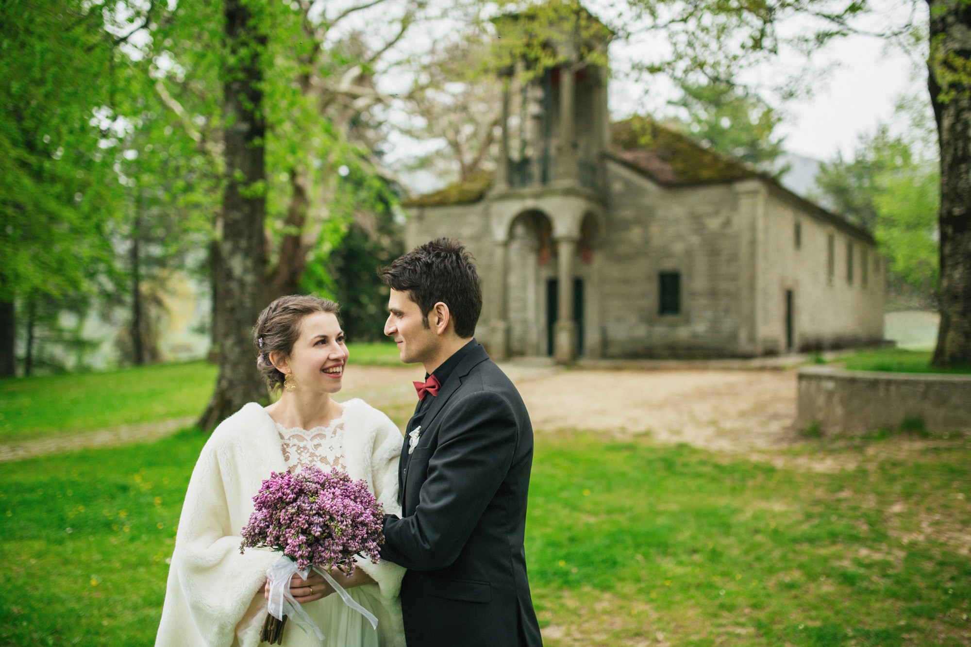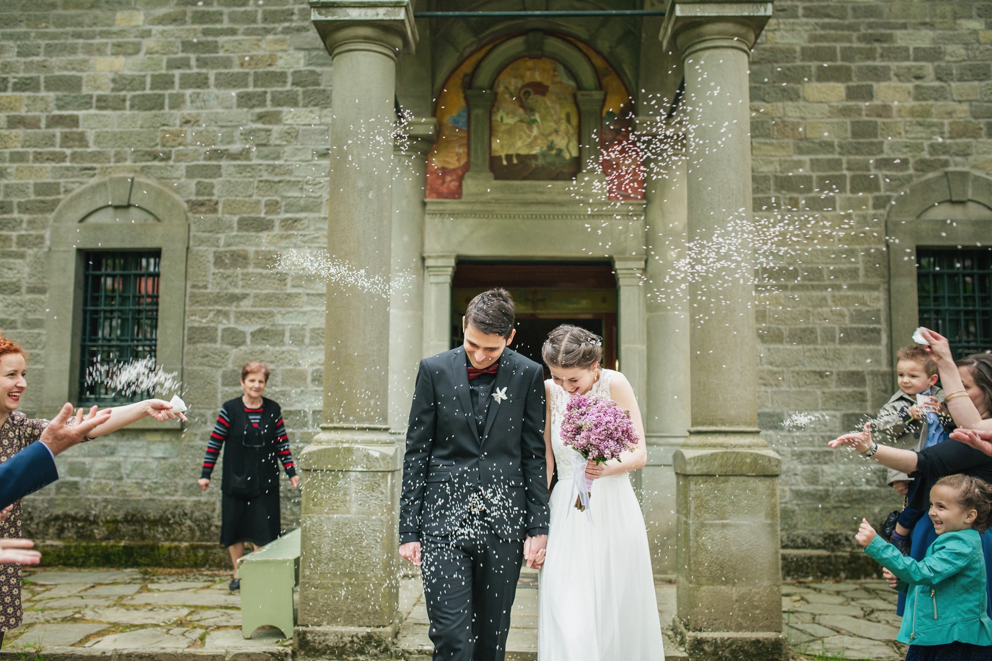 Οι δυο τους μη τηρώντας τον παραδοσιακό τρόπο που γαμπρός και νύφη συναντιούνται στην εκκλησία, ξεκίνησαν μαζί και κρατώντας ο ένας το χέρι του άλλου, έφτασαν στον ιερό χώρο της εκκλησίας. Ψηλά δέντρα περίκλυαν και ομόρφαιναν τον εξωτερικό χώρο, δημιουργώντας μία ιδιαίτερη ρομαντική ατμόσφαιρα και ένα ονειρικό σκηνικό για την φωτογράφιση του γάμου.