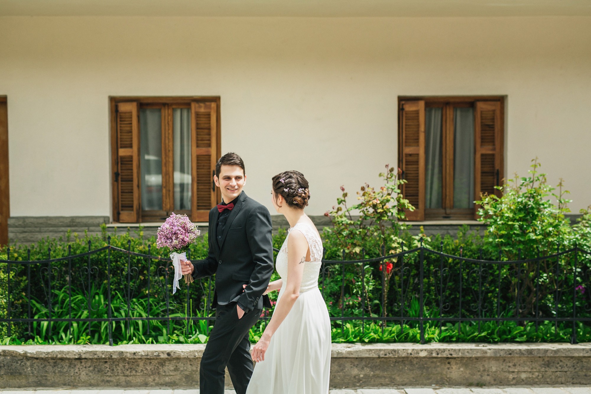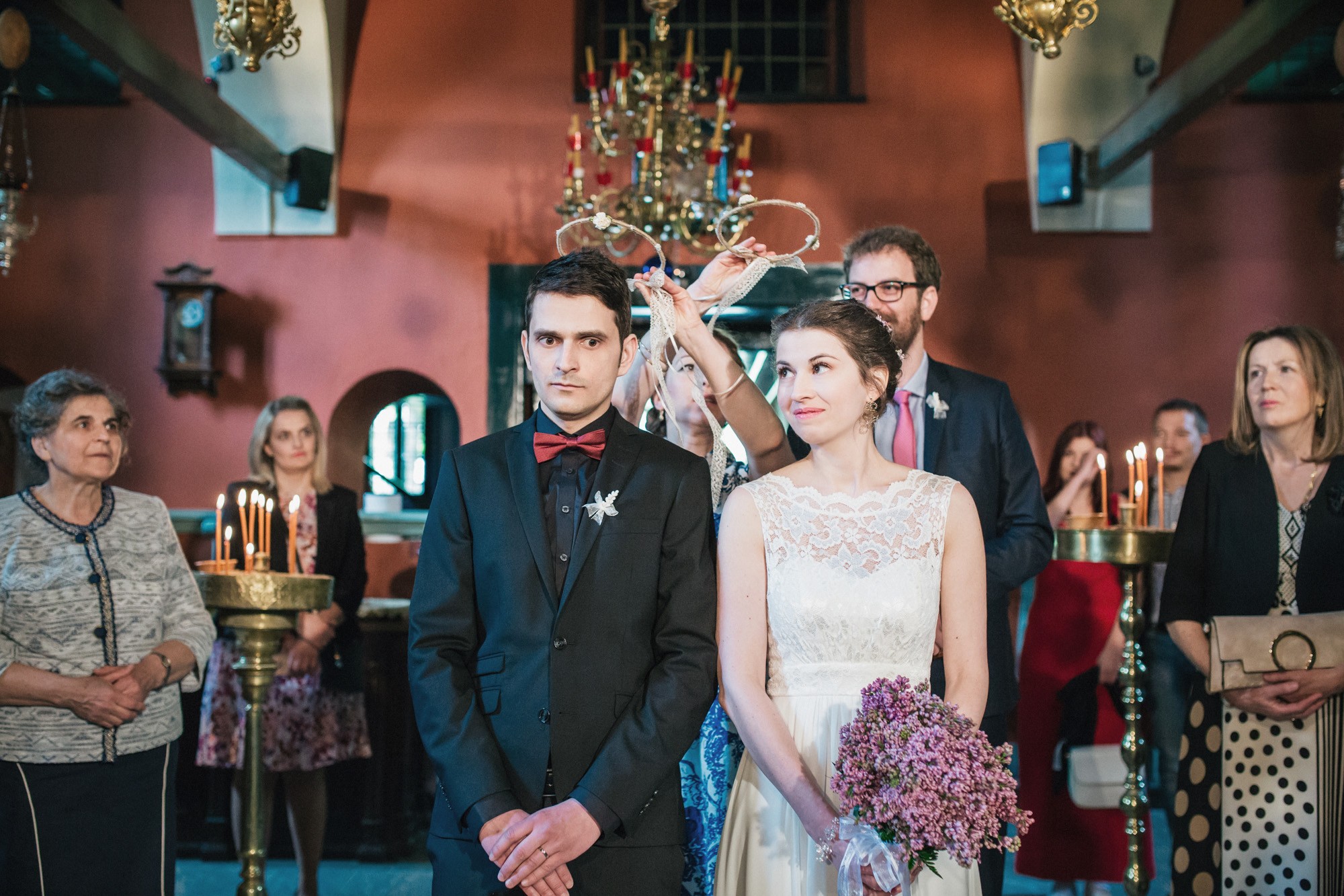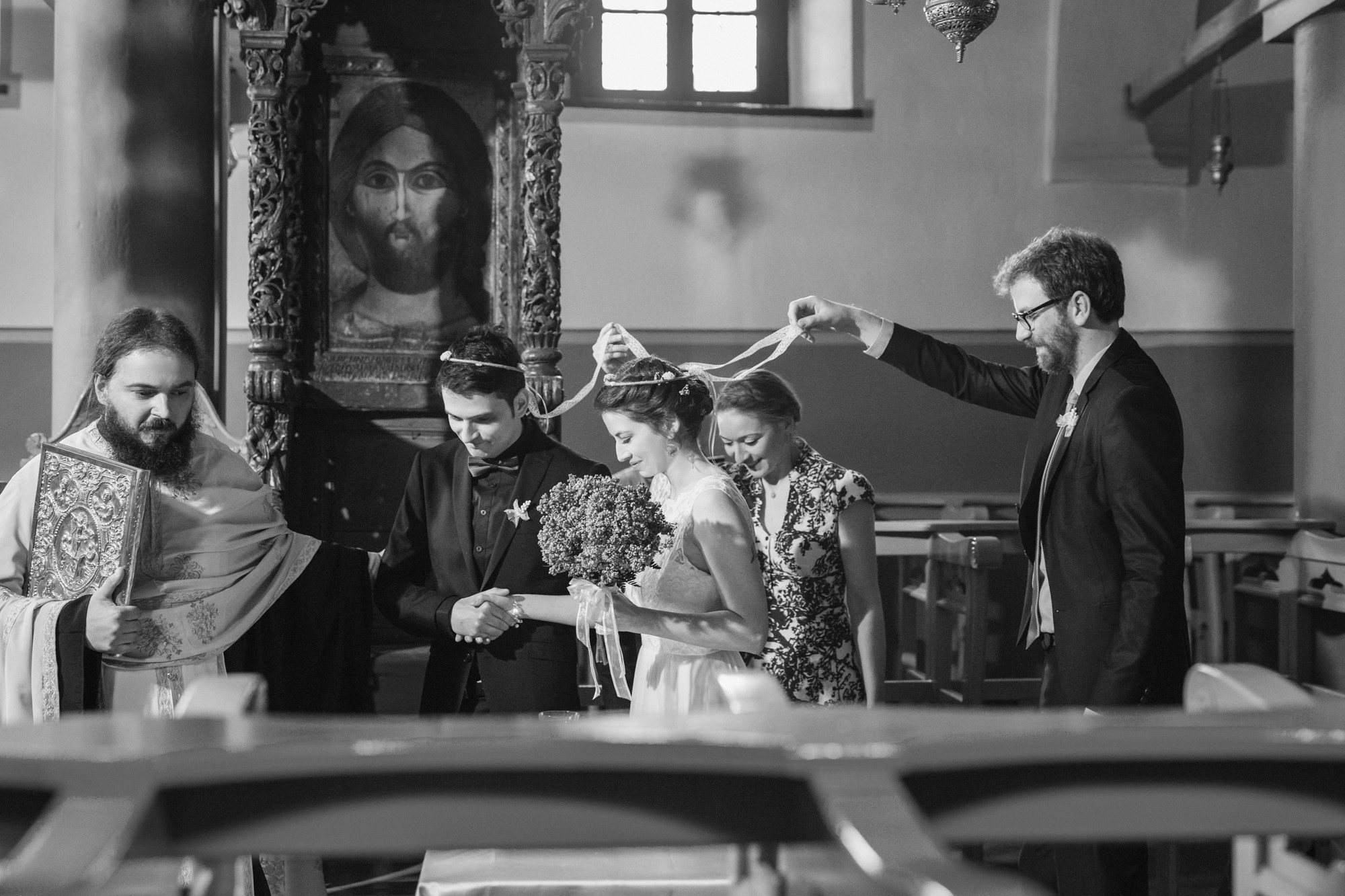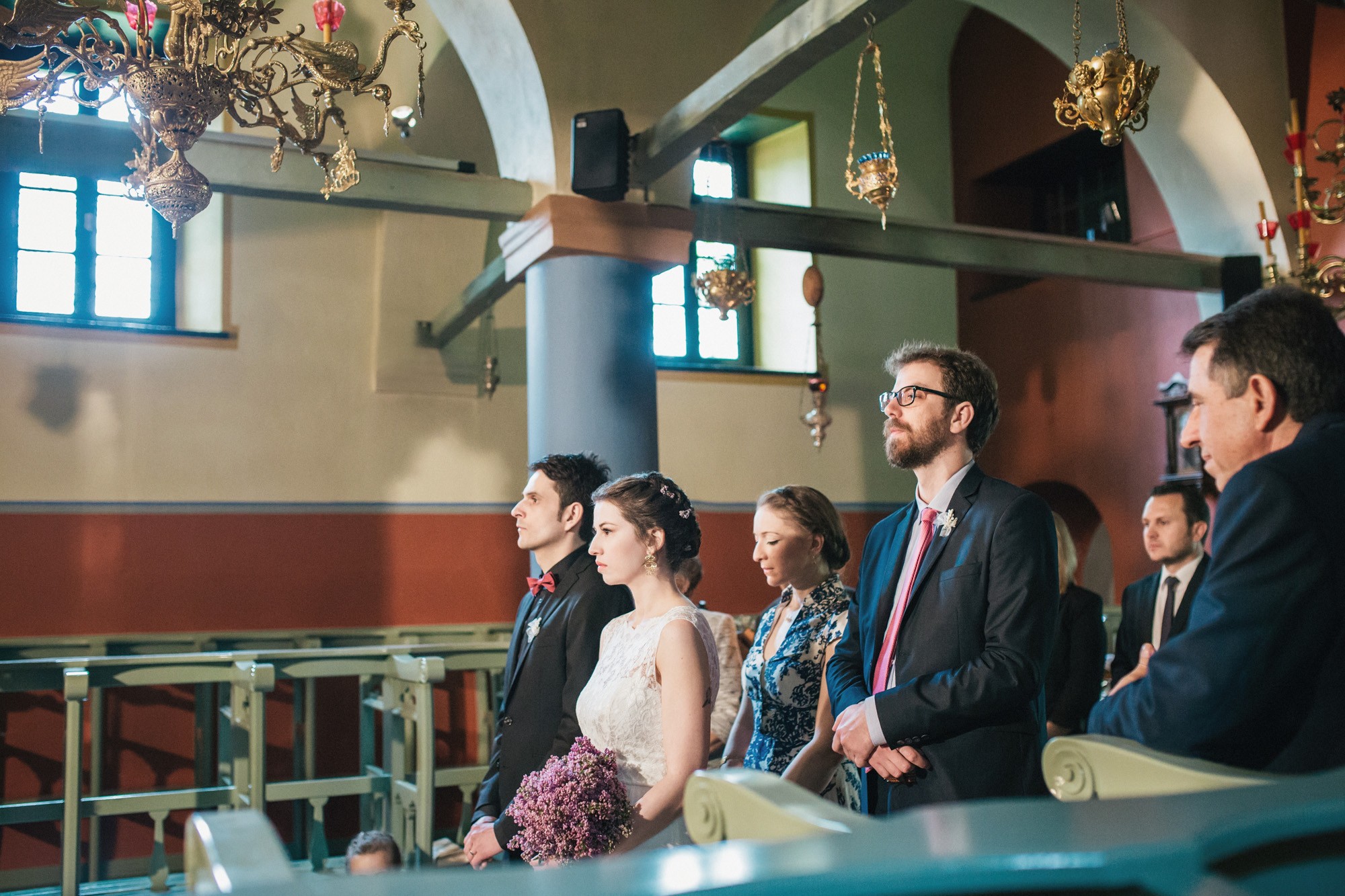 Οι δυο τους μη τηρώντας τον παραδοσιακό τρόπο που γαμπρός και νύφη συναντιούνται στην εκκλησία, ξεκίνησαν μαζί και κρατώντας ο ένας το χέρι του άλλου, έφτασαν στον ιερό χώρο της εκκλησίας. Ψηλά δέντρα περίκλυαν και ομόρφαιναν τον εξωτερικό χώρο, δημιουργώντας μία ιδιαίτερη ρομαντική ατμόσφαιρα και ένα ονειρικό σκηνικό για την φωτογράφιση του γάμου.