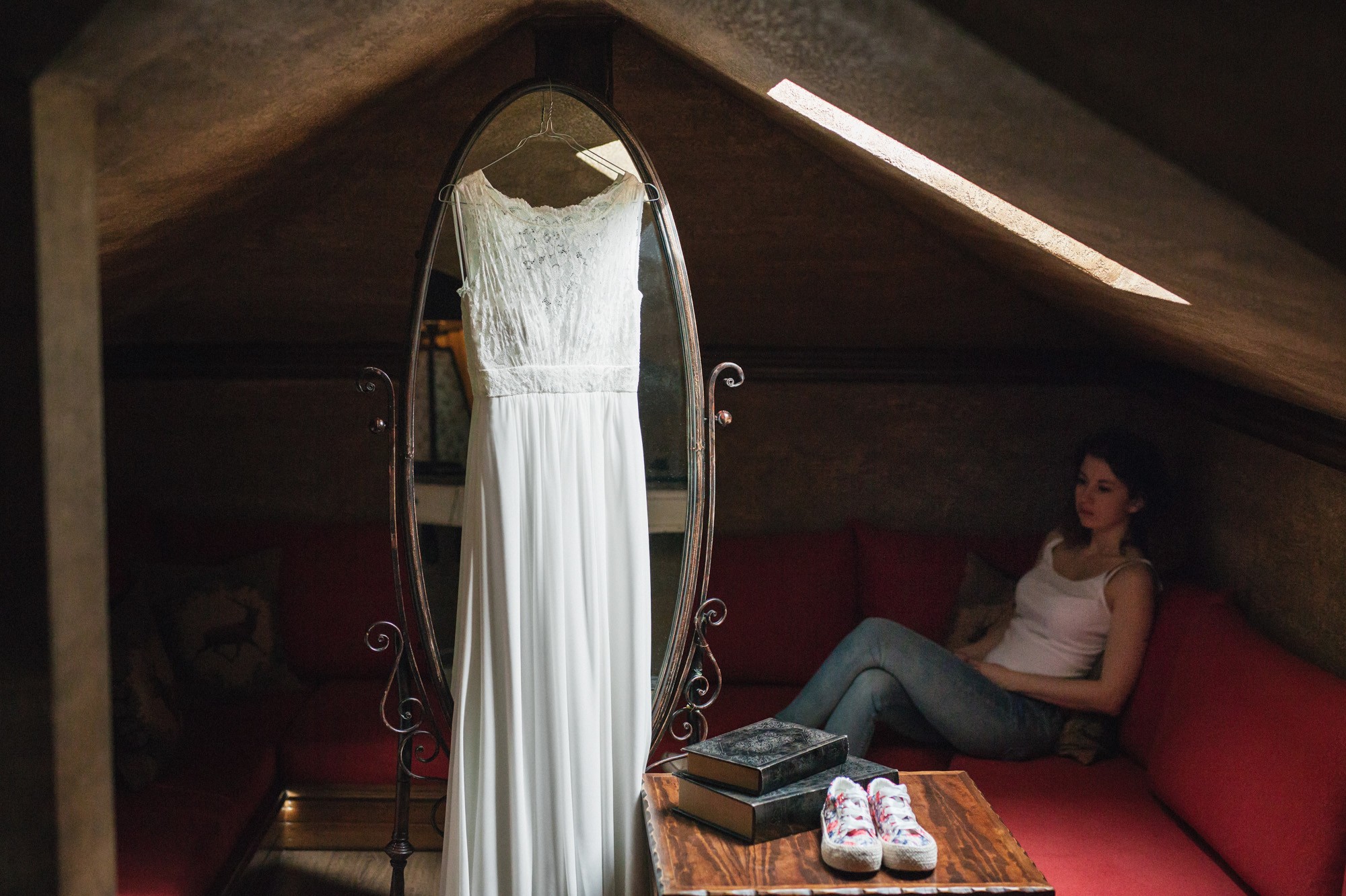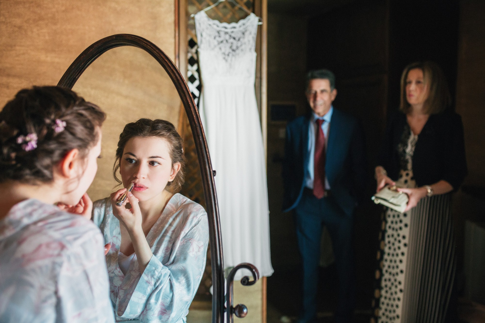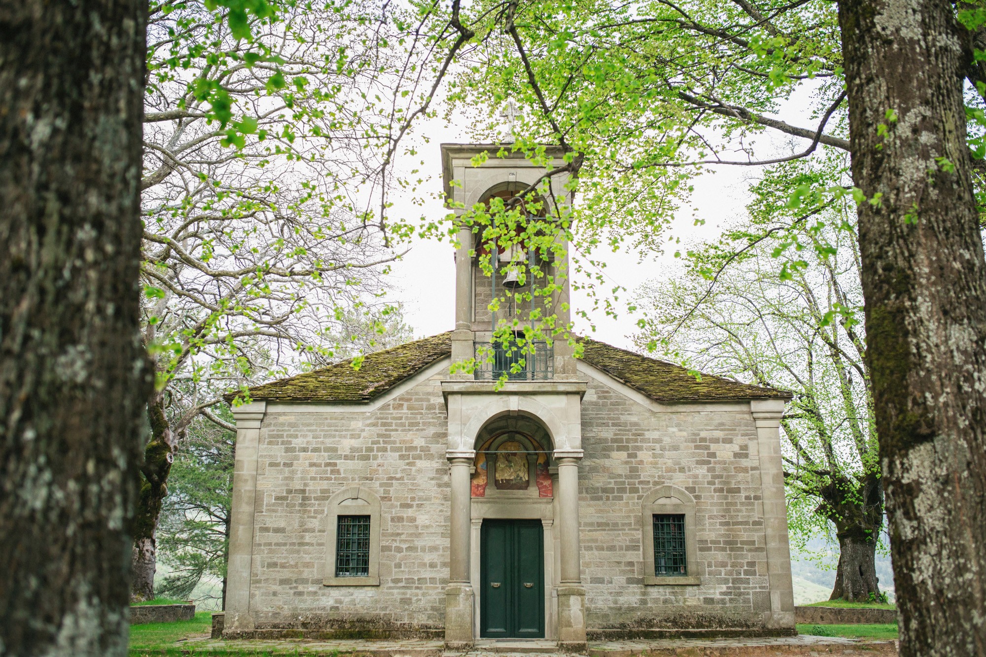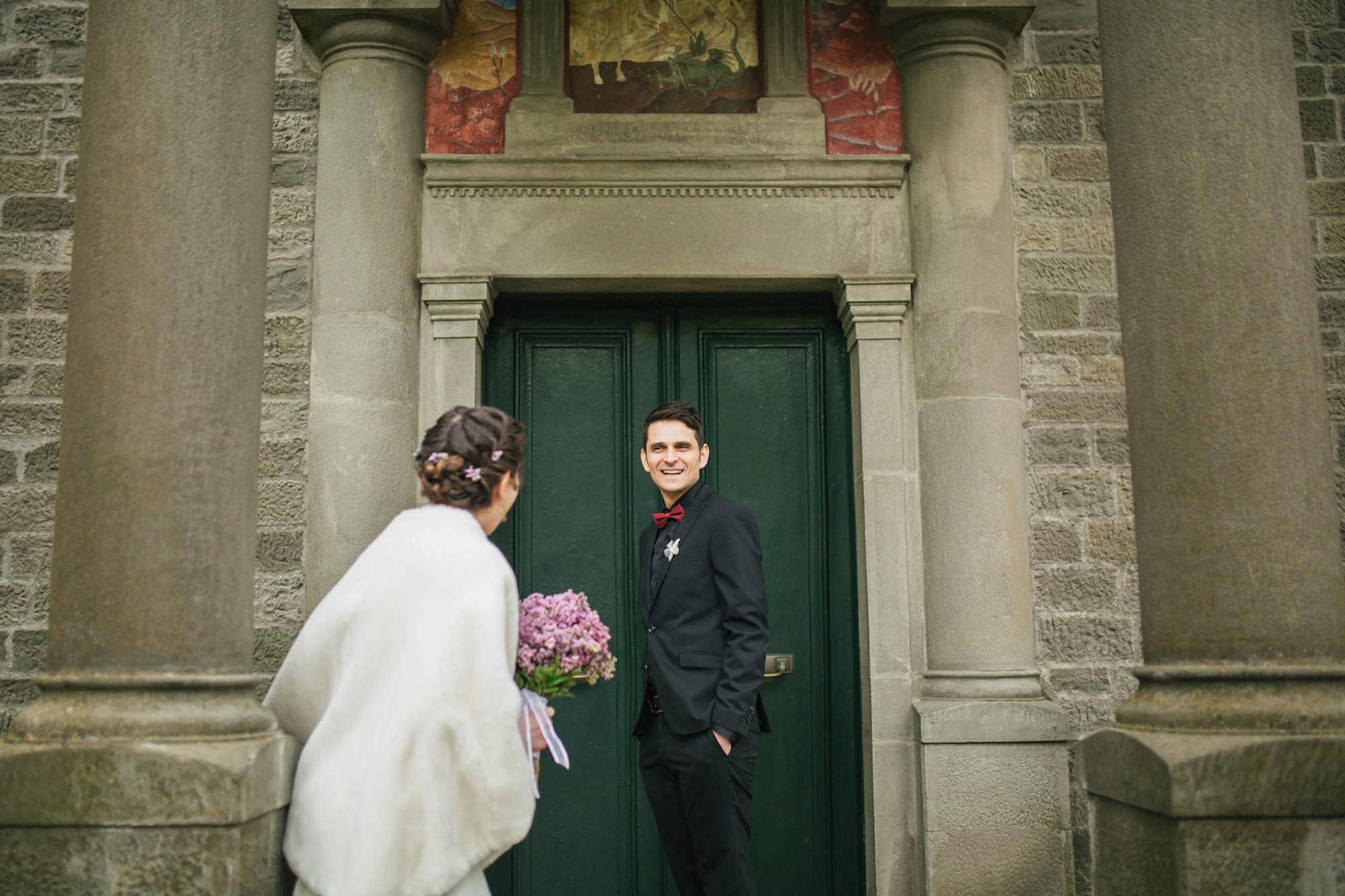 Οι δυο τους μη τηρώντας τον παραδοσιακό τρόπο που γαμπρός και νύφη συναντιούνται στην εκκλησία, ξεκίνησαν μαζί και κρατώντας ο ένας το χέρι του άλλου, έφτασαν στον ιερό χώρο της εκκλησίας. Ψηλά δέντρα περίκλυαν και ομόρφαιναν τον εξωτερικό χώρο, δημιουργώντας μία ιδιαίτερη ρομαντική ατμόσφαιρα και ένα ονειρικό σκηνικό για την φωτογράφιση του γάμου.