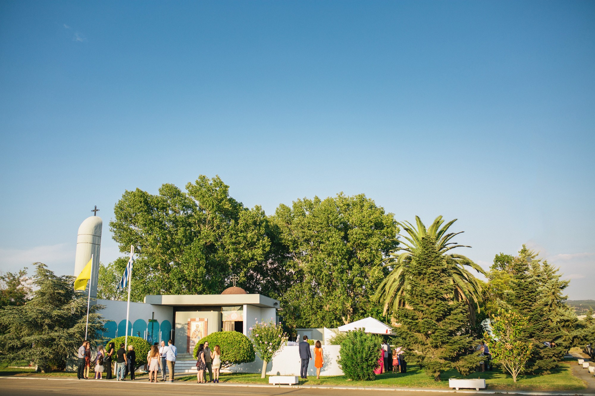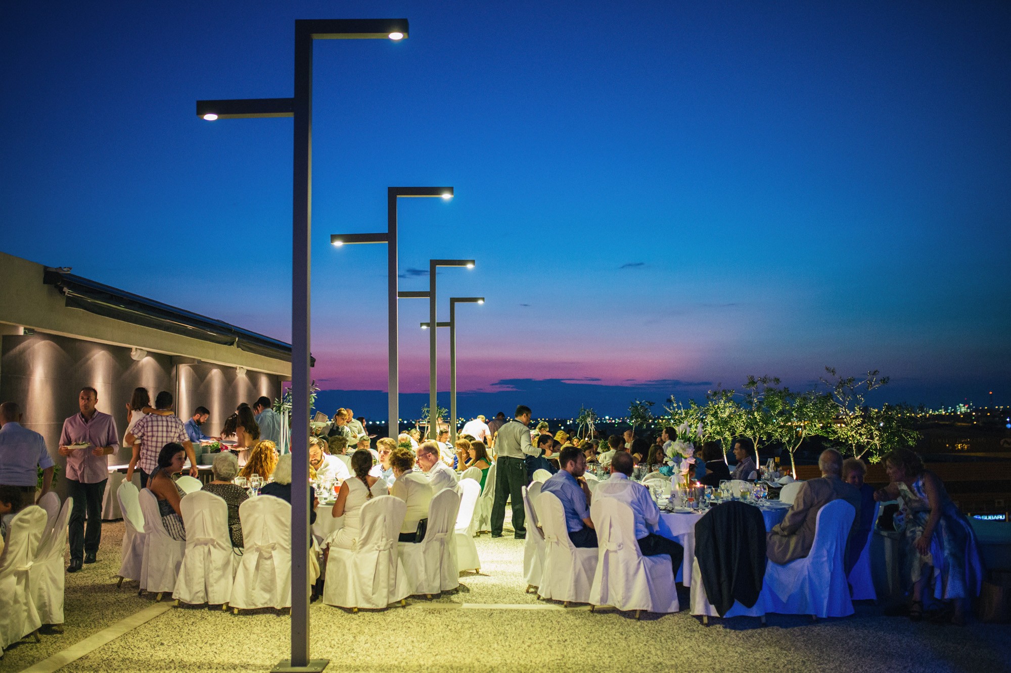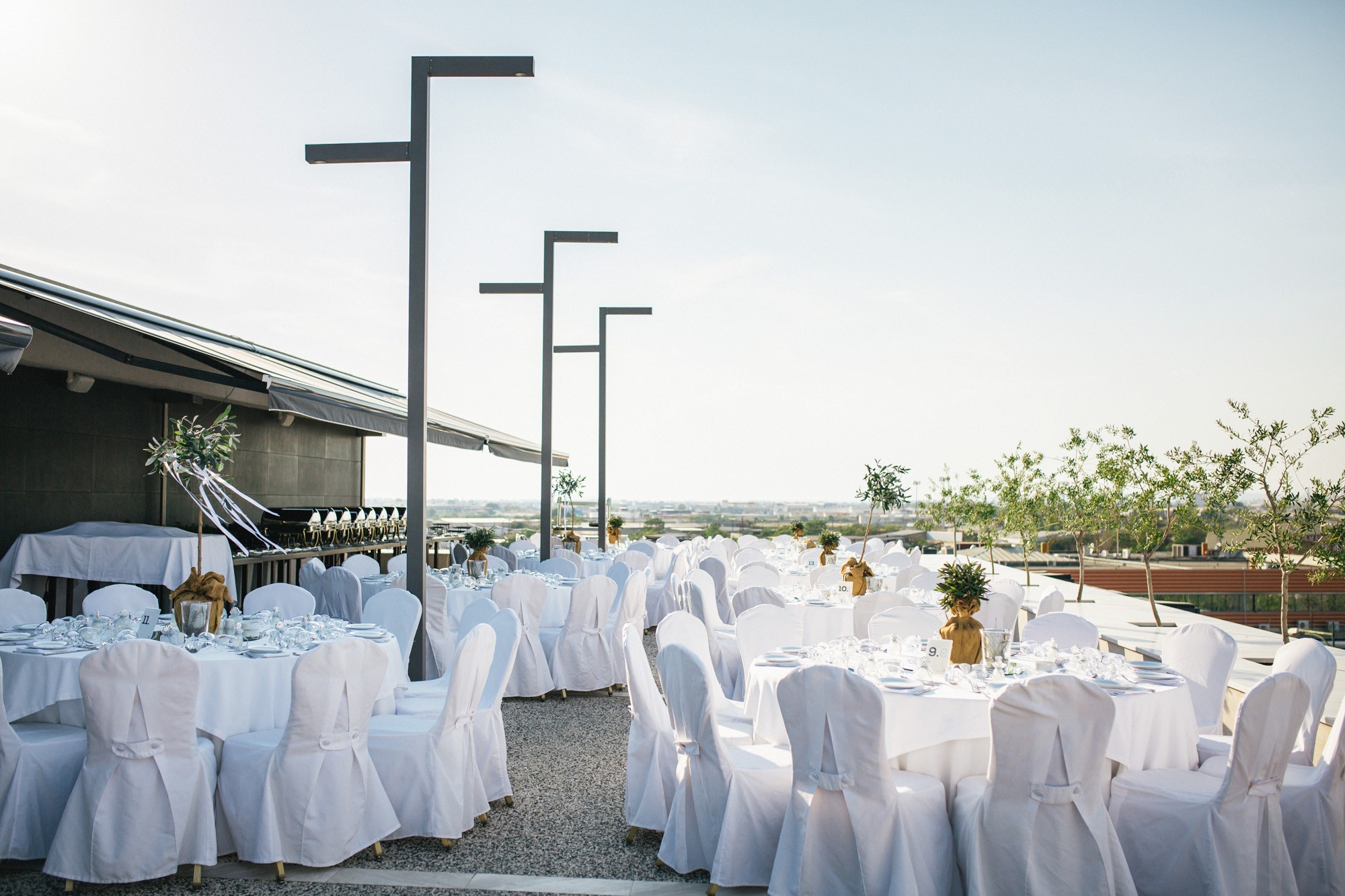 Η δεξίωση που ακολούθησε πραγματοποιήθηκε στο Porto Palace Hotel, στο roof garden. Το λευκό χρώμα διεκδικούσε την απόλυτη κυριαρχία στον χώρο ενώ τα δεντράκια και κλαδάκια ελιάς που στόλιζαν τα τραπέζια και το όλο σκηνικό δημιουργούσαν μια εξέχουσα εικόνα που άφησε τις καλύτερες εντυπώσεις.