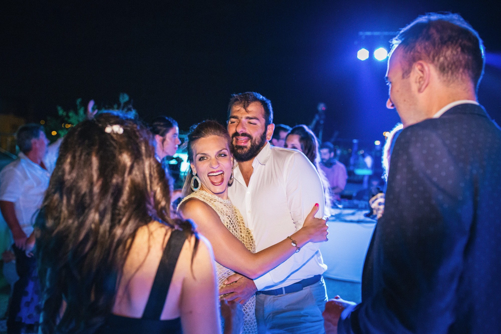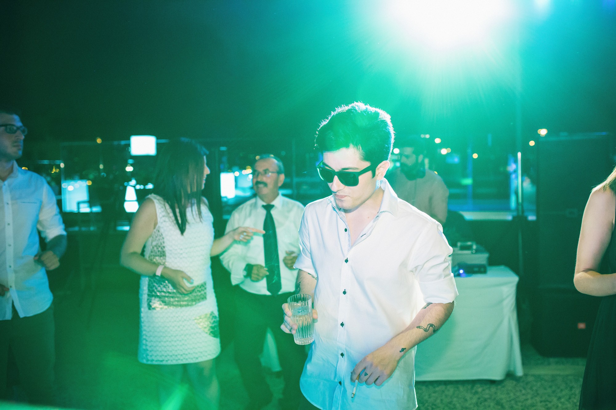 Το ζευγάρι επέλεξε να γευματίσει απευθείας με τους καλεσμένους του παραλείποντας την είσοδο. Η βραδιά ξεκίνησε με live μουσική από το αγαπημένο τους συγκρότημα στους ρυθμούς του swing και συνεχίστηκε με ποικιλία μουσικής από επιλεγμένο dj, προσκαλώντας και τους πιο διστακτικούς για χορό. Ήταν ένα μοναδικό βράδυ για το ζευγάρι αλλά και για όλο τον κόσμο που διασκέδασε με την ψυχή του και μοιράστηκε την άμετρη χαρά των νεονύμφων.