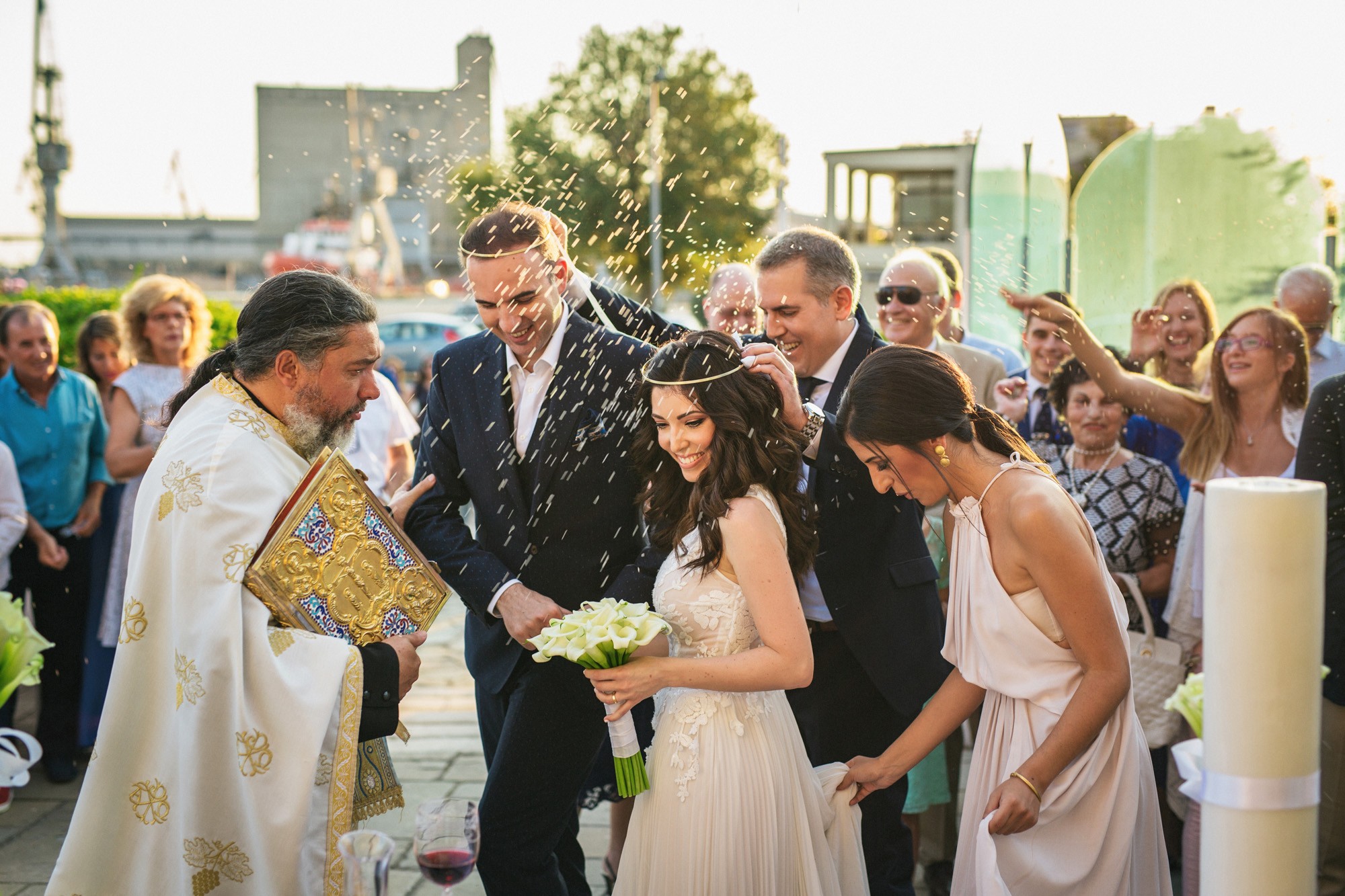 Οι δυο τους γνωρίστηκαν στην Θεσσαλονίκη, τα τελευταία χρόνια ζουν στην Γερμανία και επέστρεψαν για να ενώσουν τις ζωές τους στο εκκλησάκι στον Άγιο Νικόλαο Θεσσαλονίκης. Οι ετοιμασίες τους έγινα στο Porto Palace Hotel Thessaloniki. Λουκούμια, φρέσκια λεμονάδα και χυμοί περίμεναν τους καλεσμένους στον εξωτερικό χώρο της εκκλησίας όπου και επιτελέσθηκε το μυστήριο, ενώ τα λευκά κρίνα πρωταγωνιστούσαν στον στολισμό και στο μπουκέτο της νύφης.