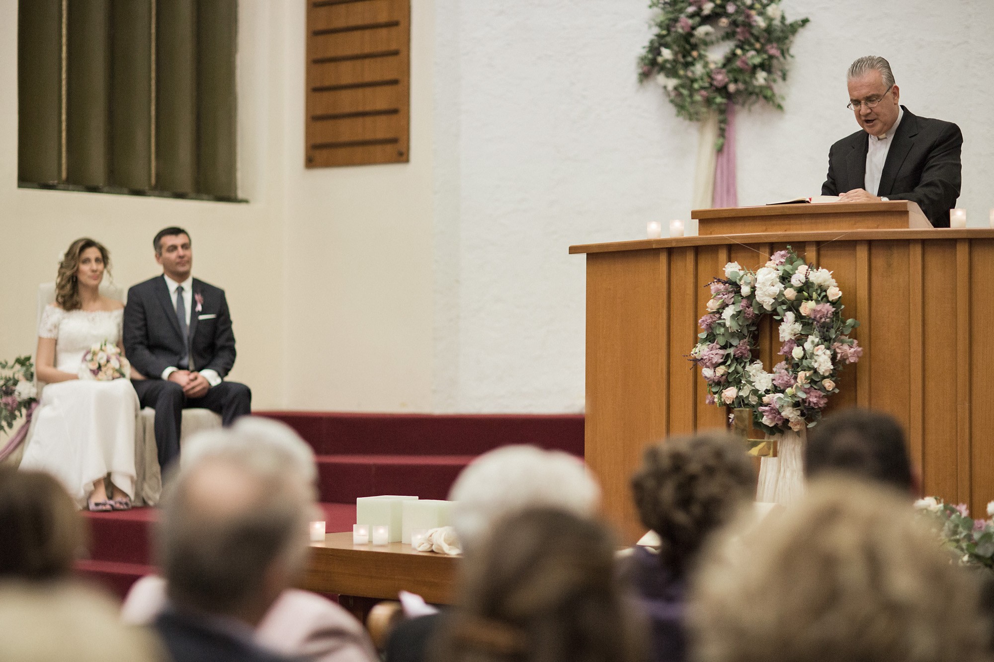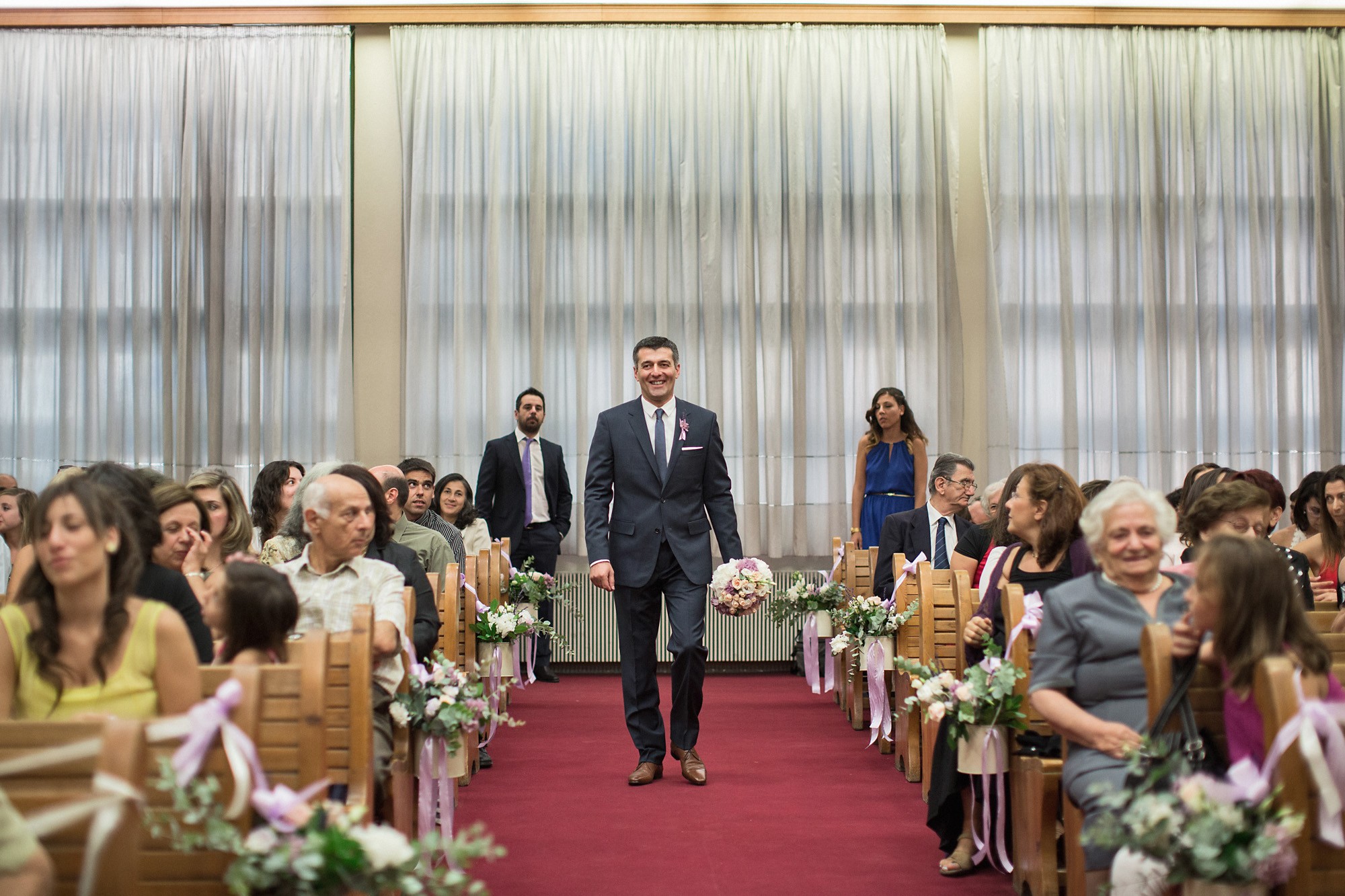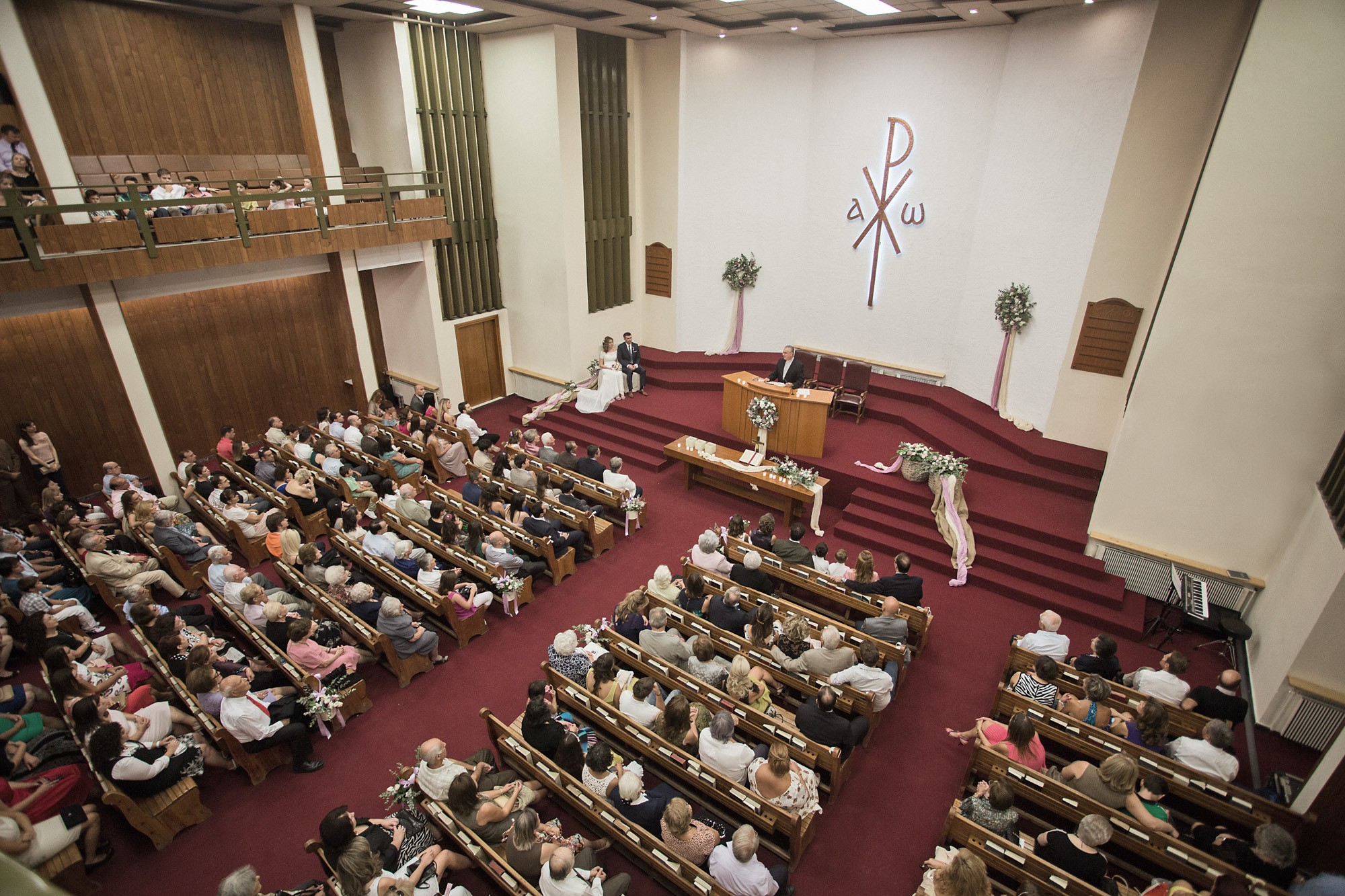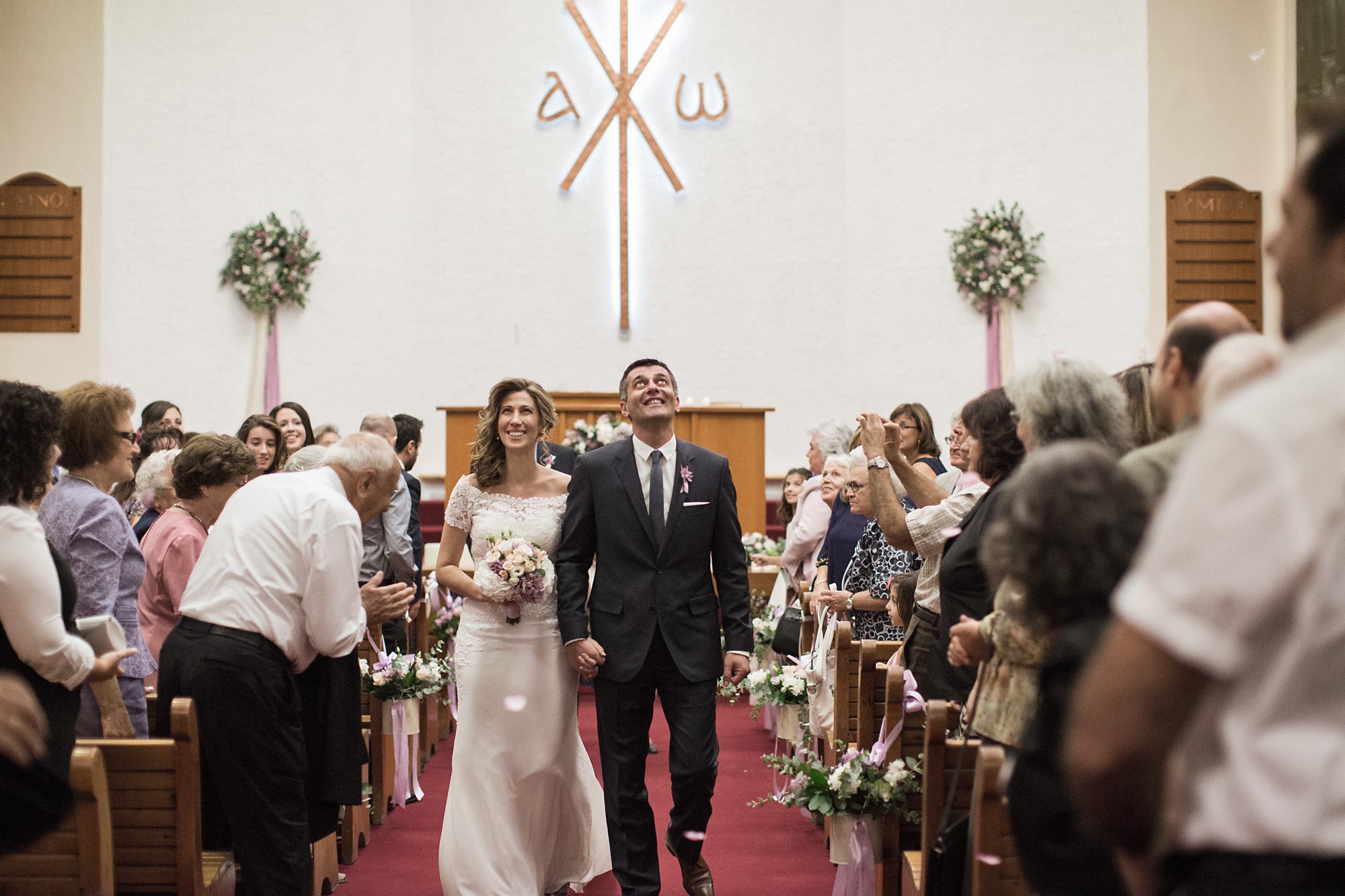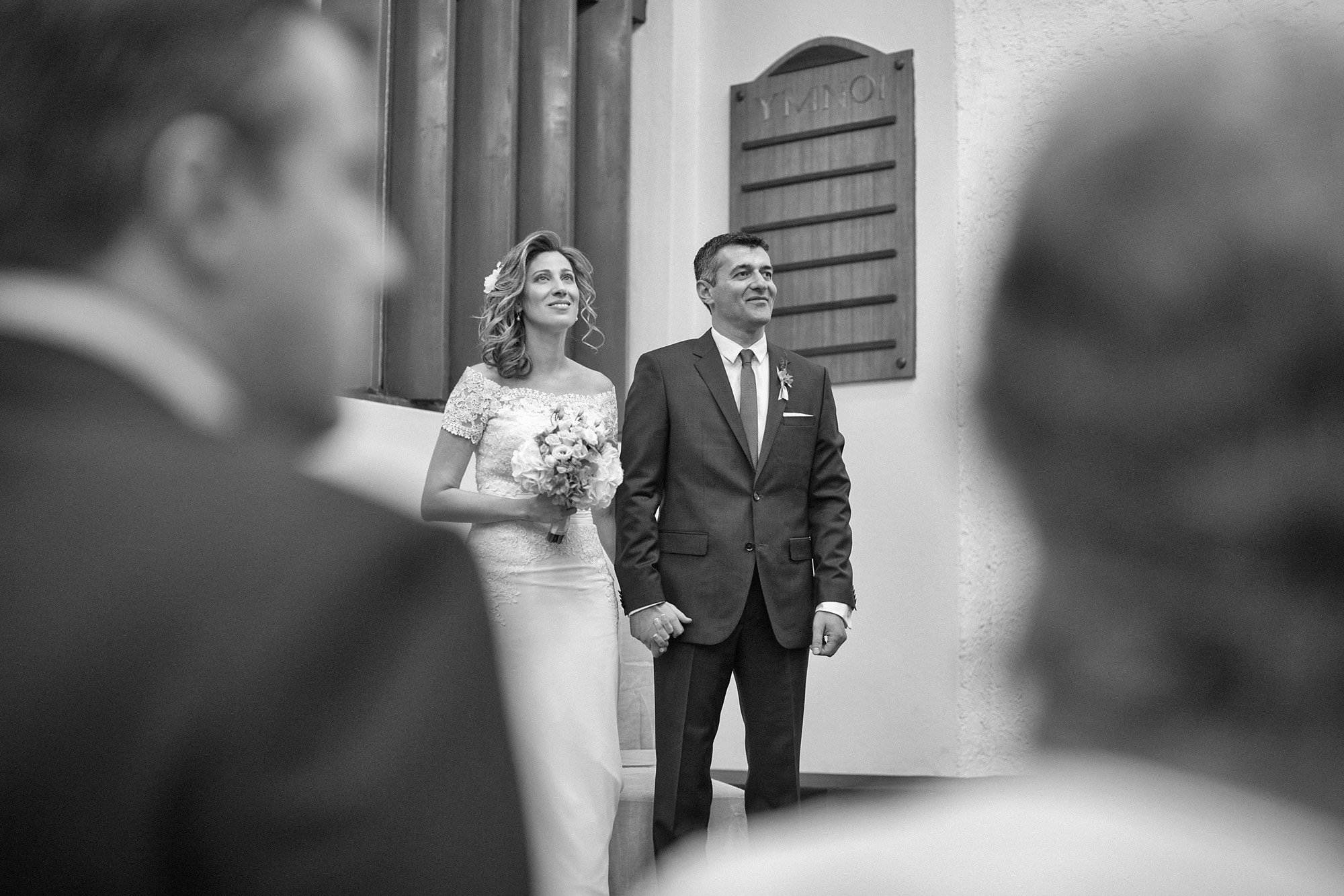 Ο εσωτερικός χώρος της εκκλησίας, στολισμένος με λευκά και σε αποχρώσεις του ροζ μπουκέτα από άνθη, ενίσχυσε τον ρομαντισμό του χώρου δημιουργώντας το απόλυτο σκηνικό για την φωτογράφιση του γάμου. Το μυστήριο τελέσθηκε μέσα σε κλίμα υπέρμετρης χαράς ενώ η χορωδία που συντρόφευσε την όλη διαδικασία δημιούργησε ένα κλίμα έντονων συναισθηματικών σκιρτημάτων και ξεχωριστής ατμόσφαιρας που άφησε κάθε καλεσμένο με τις καλύτερες αναμνήσεις.