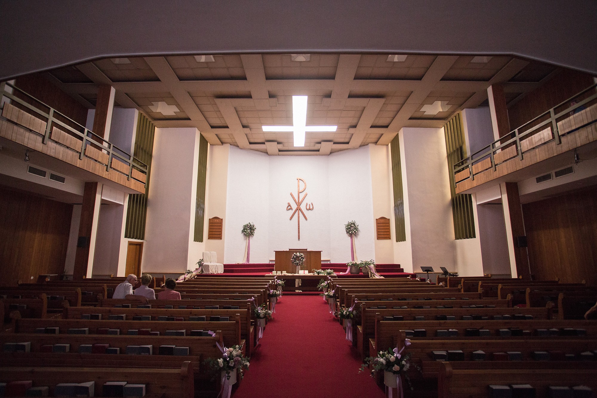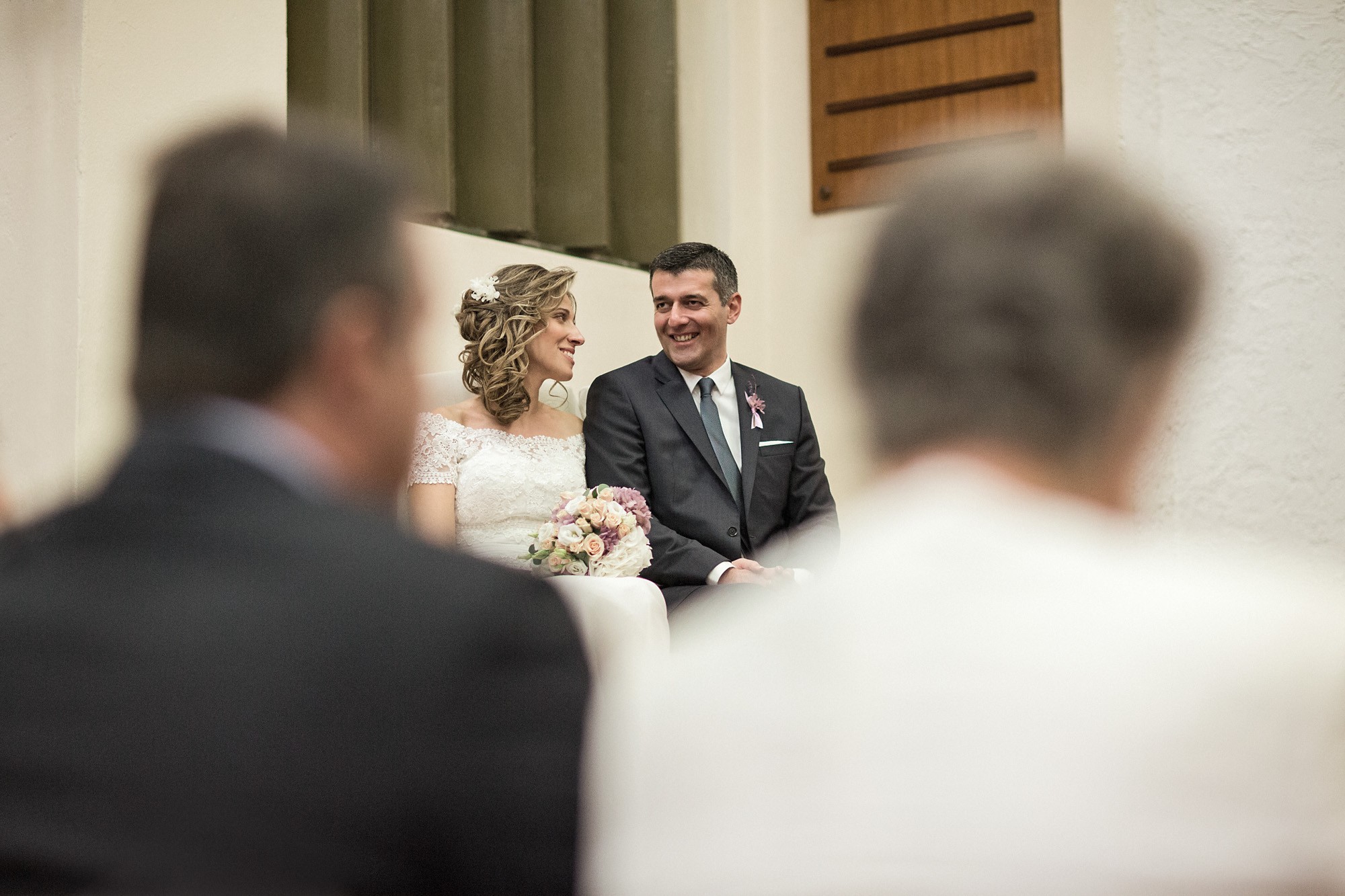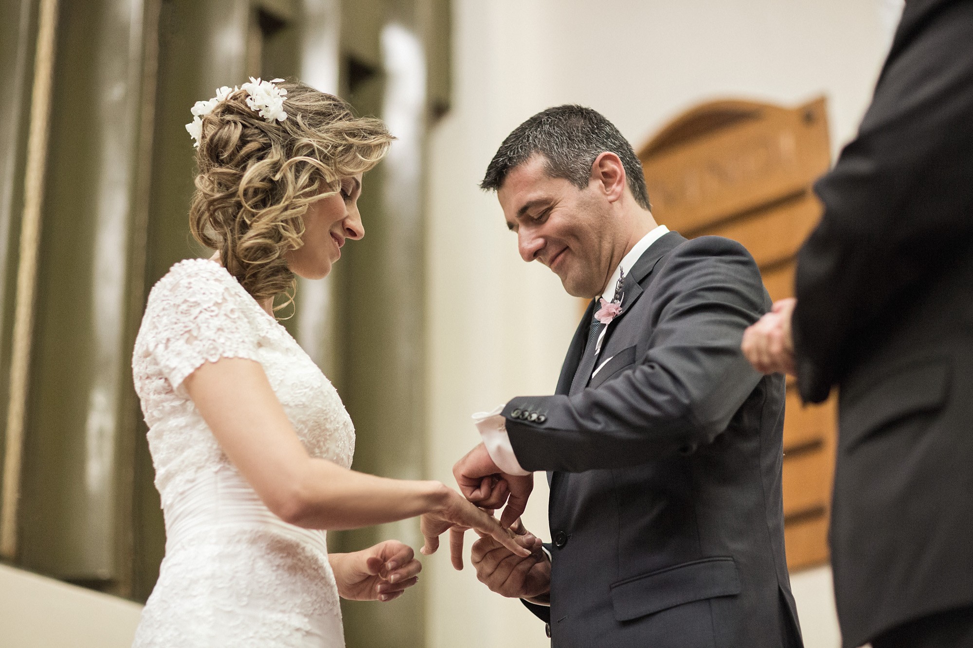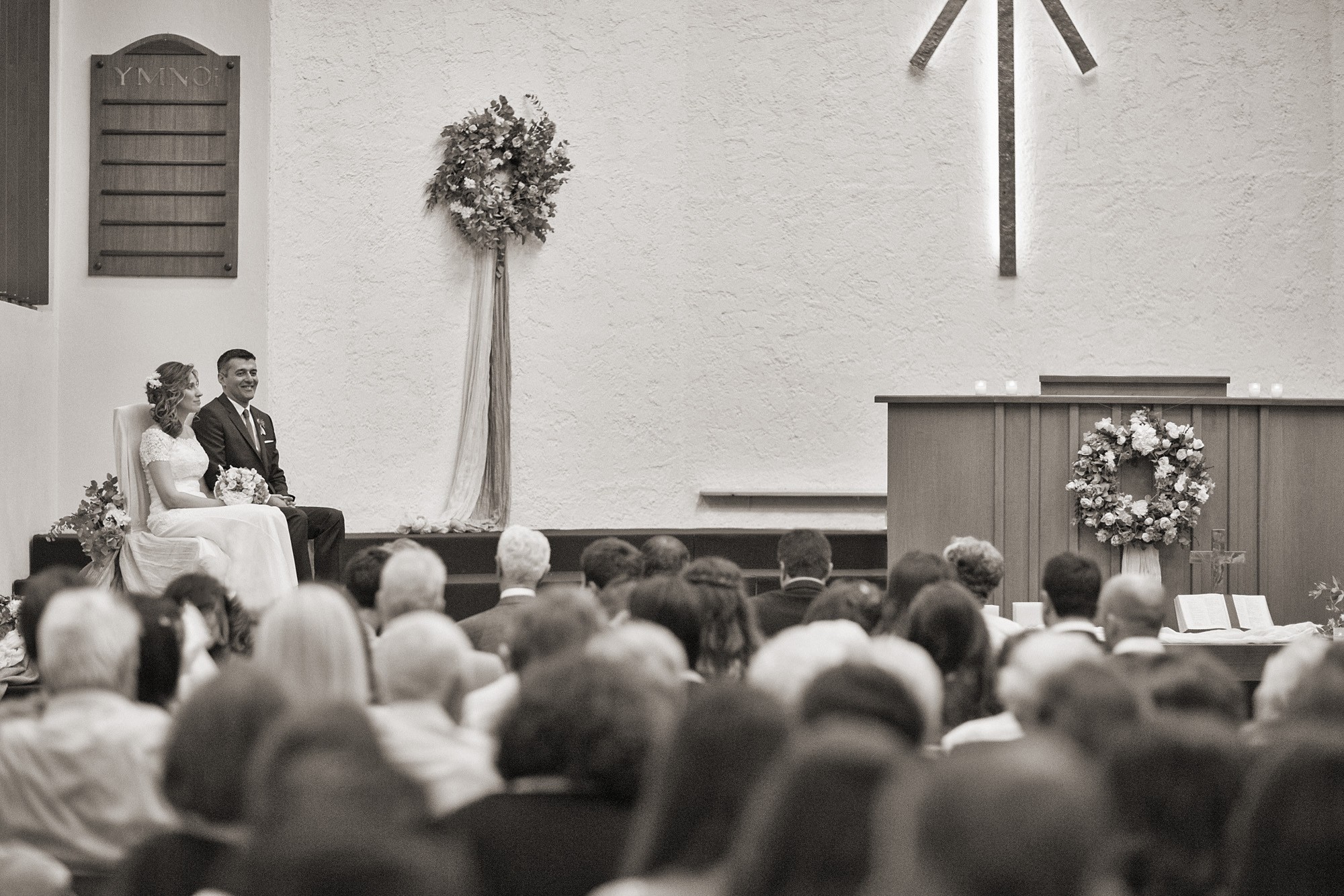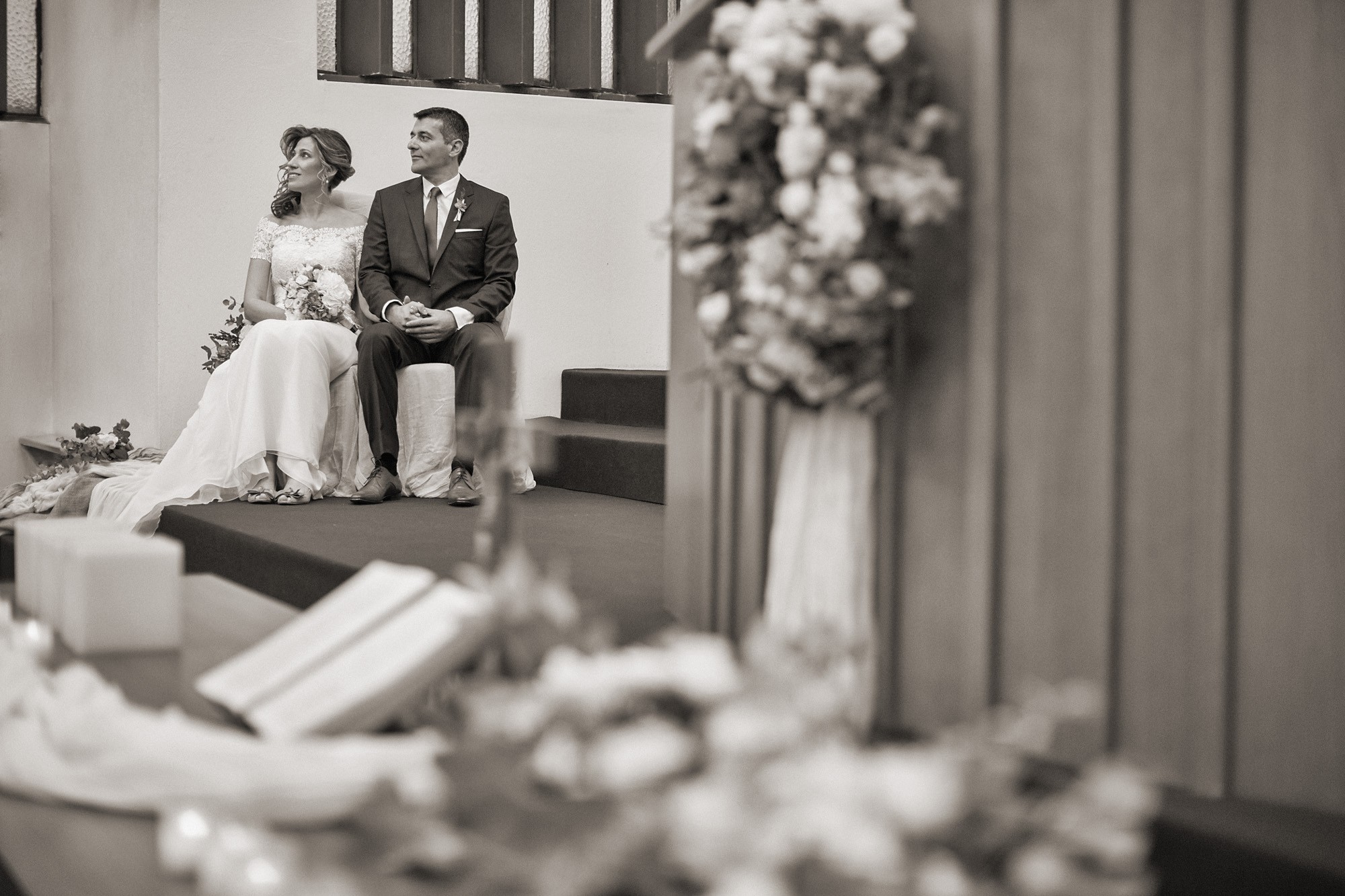 Ο εσωτερικός χώρος της εκκλησίας, στολισμένος με λευκά και σε αποχρώσεις του ροζ μπουκέτα από άνθη, ενίσχυσε τον ρομαντισμό του χώρου δημιουργώντας το απόλυτο σκηνικό για την φωτογράφιση του γάμου. Το μυστήριο τελέσθηκε μέσα σε κλίμα υπέρμετρης χαράς ενώ η χορωδία που συντρόφευσε την όλη διαδικασία δημιούργησε ένα κλίμα έντονων συναισθηματικών σκιρτημάτων και ξεχωριστής ατμόσφαιρας που άφησε κάθε καλεσμένο με τις καλύτερες αναμνήσεις.