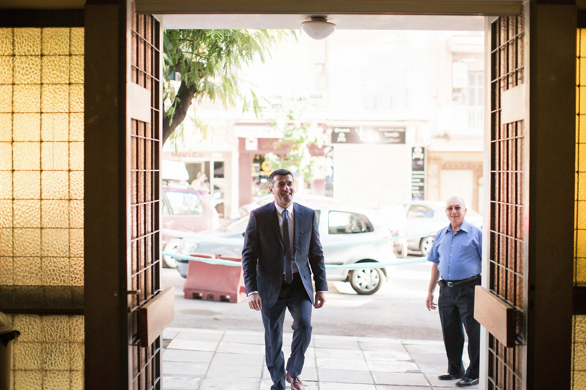 Ο Μάκης, μέσα στο μαύρο, κλασικό και απόλυτα κομψό κοστούμι του, διέθετε, σε συνδυασμό με την φυσική γοητεία του, το παρουσιαστικό του ιδανικού συντρόφου. Ενώ η Δήμητρα, έχοντας επιλέξει την απόλυτη προσωποποίηση του ρομαντισμού στο νυφικό της, με αποκαλυπτικούς ώμους και υπέροχη ουρά, δεν μπορούσε παρά να μην τραβήξει όλα τα βλέμματα πάνω της. Η συνάντηση του ζευγαριού υπήρξε απαράμιλλα συγκινητική γεμίζοντας την ατμόσφαιρα ένταση και ευφορία.