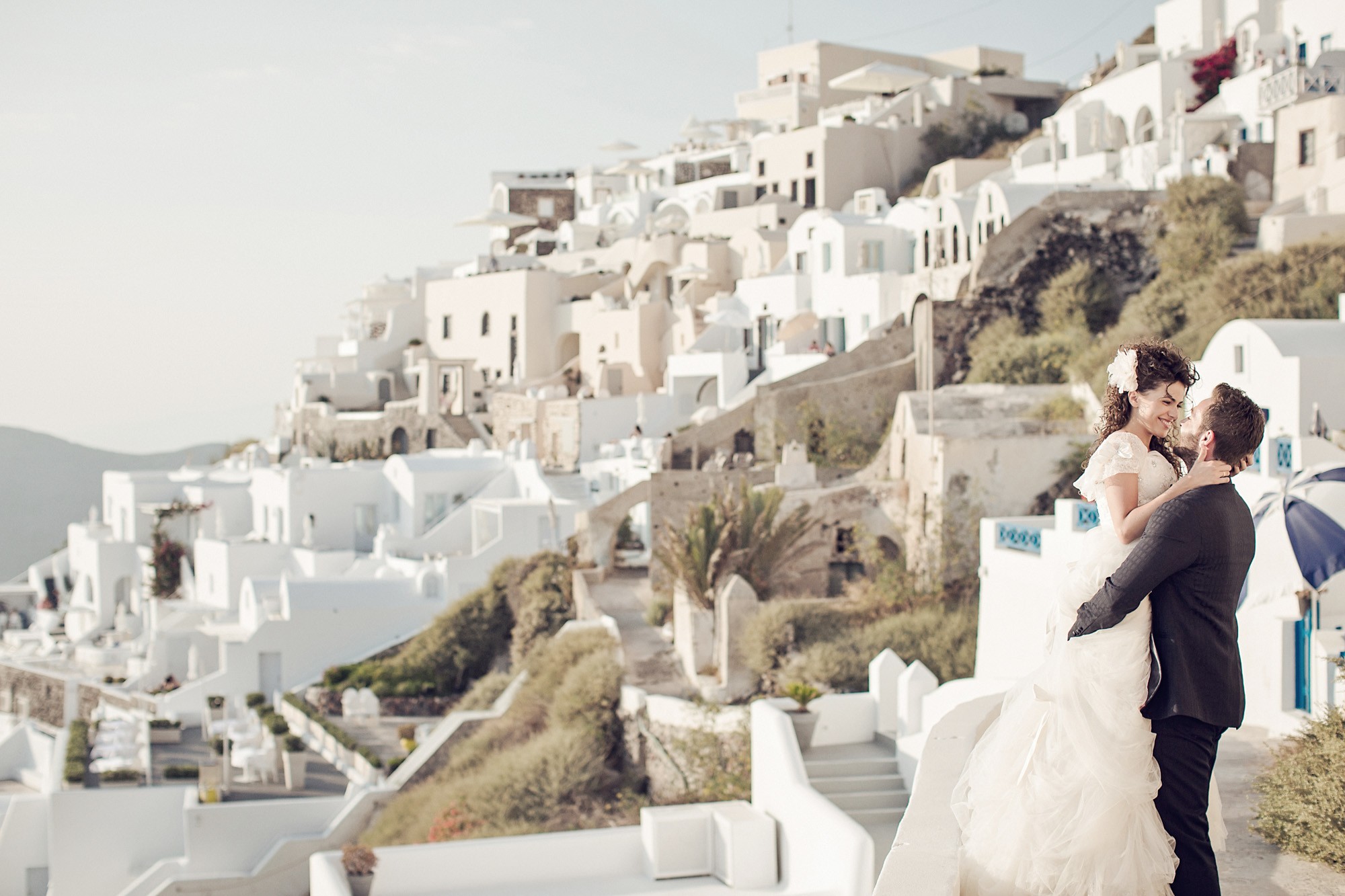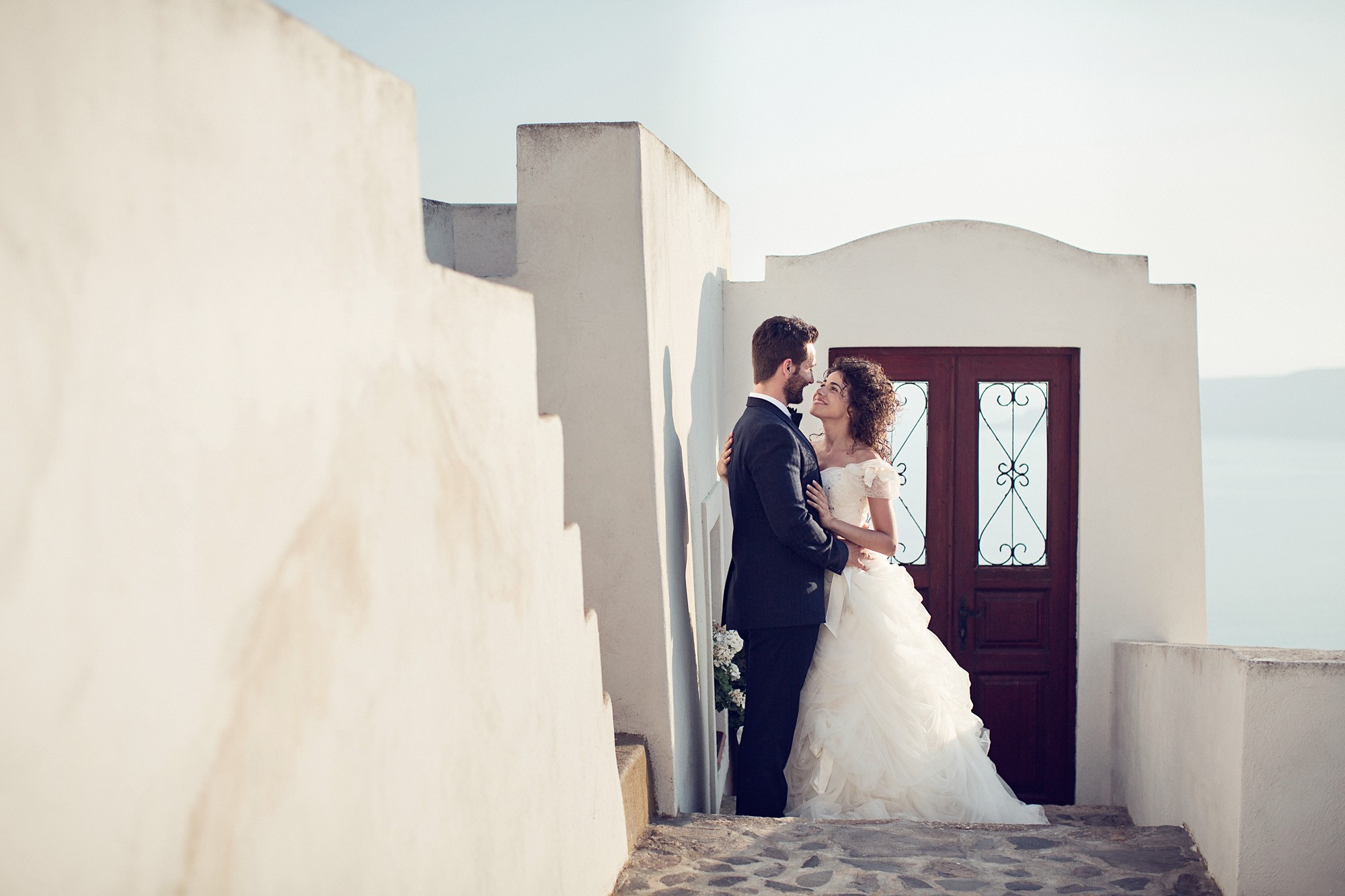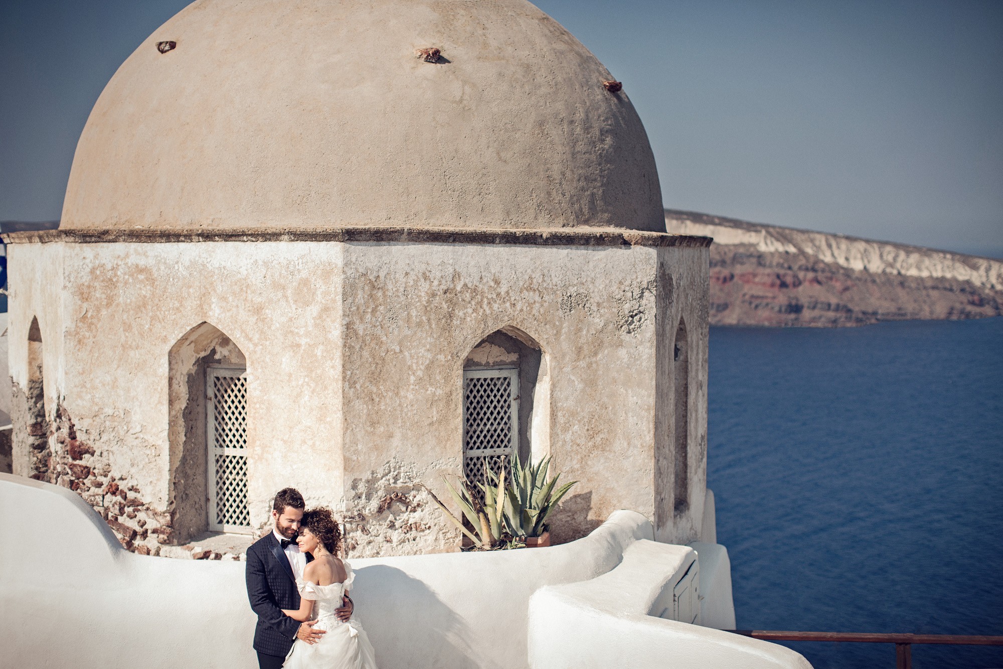 Ο Δημήτρης και η Στέλλα μετά τον γάμο τους που επιτελέσθηκε στην Θεσσαλονίκη, αποφάσισαν να ταξιδέψουν στην Σαντορίνη. Δύο ημέρες περιπλάνησης στο νησί ήταν υπεραρκετές για να τους μαγέψουν και να οξύνουν τις αισθήσεις τους χάρη στο υπέροχο τοπίο, την μεθυστική παρουσία της θαλασσινής αύρας και τα έντονα χρώματα του Αιγαίου Πελάγους. Έτσι μας τηλεφώνησαν αμέσως για να μας μεταδώσουν τον ενθουσιασμό τους ζητώντας μας να κάνουμε την next day φωτογράφιση στο υπέροχο νησί.