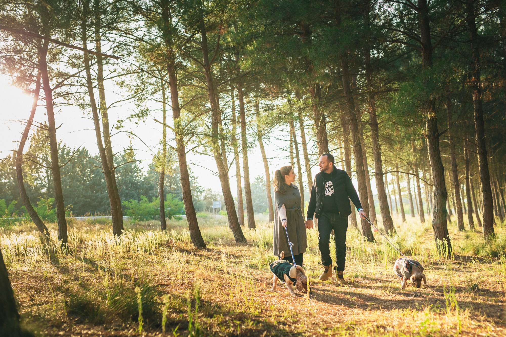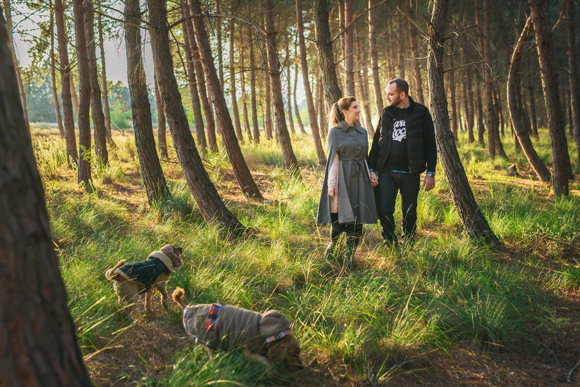 One of my favorite guestbook photoshoots is that of Nasia and Vangelis. The two of them, accompanied by their adorable dogs, were visibly excited about our adventure in nature. Our session began with a leisurely walk among the towering pine trees.