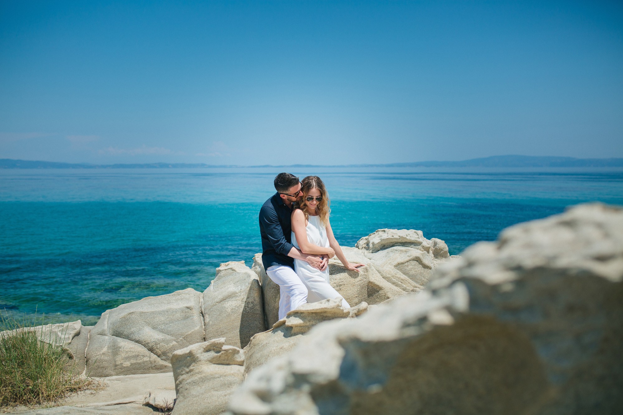 Our pre-wedding photo shoot took place in Halkidiki, on some of the stunning beaches. The tender and love-filled couple didn’t hesitate for a moment to express their feelings and showcase their positive energy.