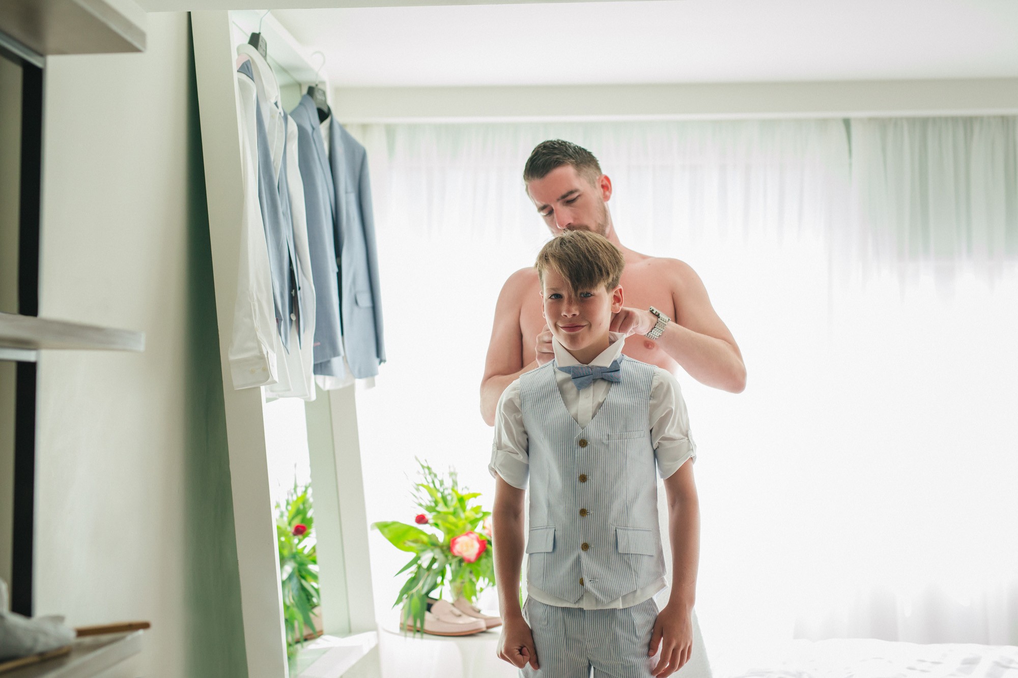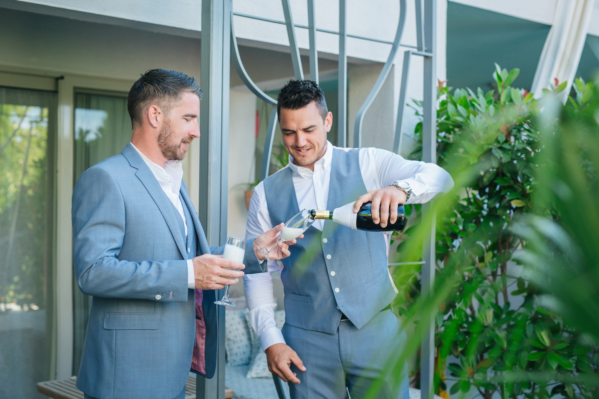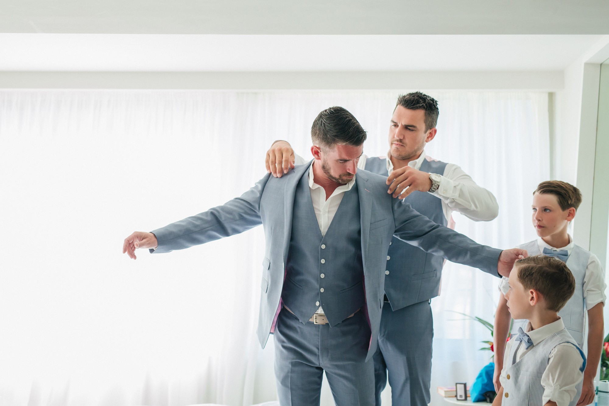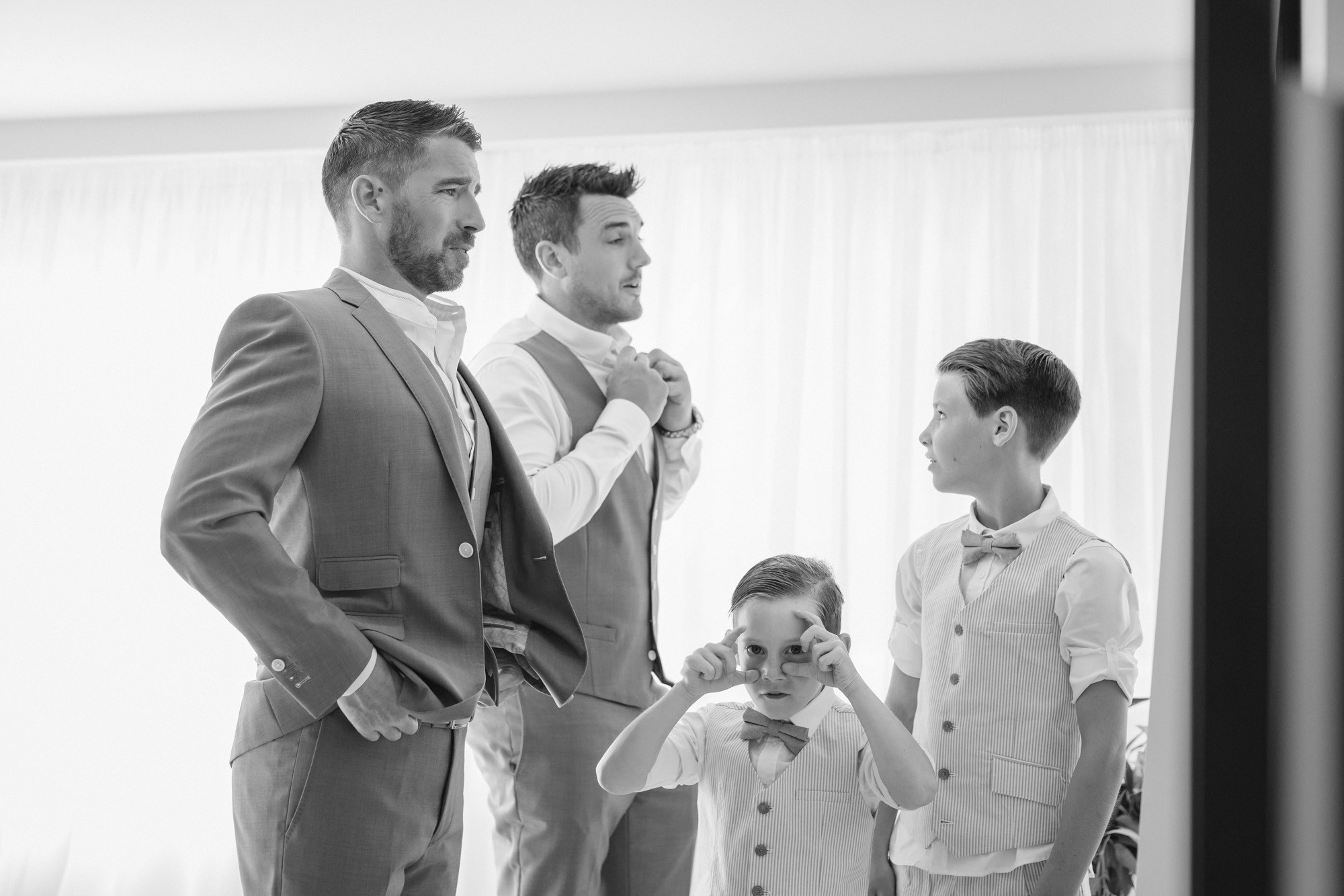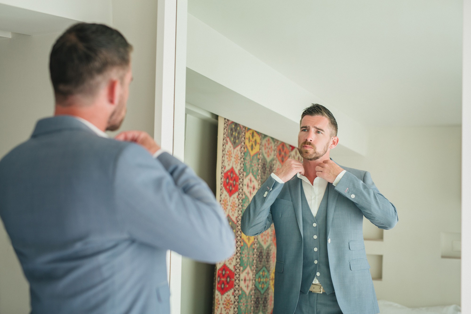 Our day continued at EKIES, where Mat and Jade relaxed with their loved ones and transformed into an amazing groom and a captivating bride. Mat, together with his best man and two sons, got ready with great enthusiasm, ultimately looking absolutely charming in his gray suit.