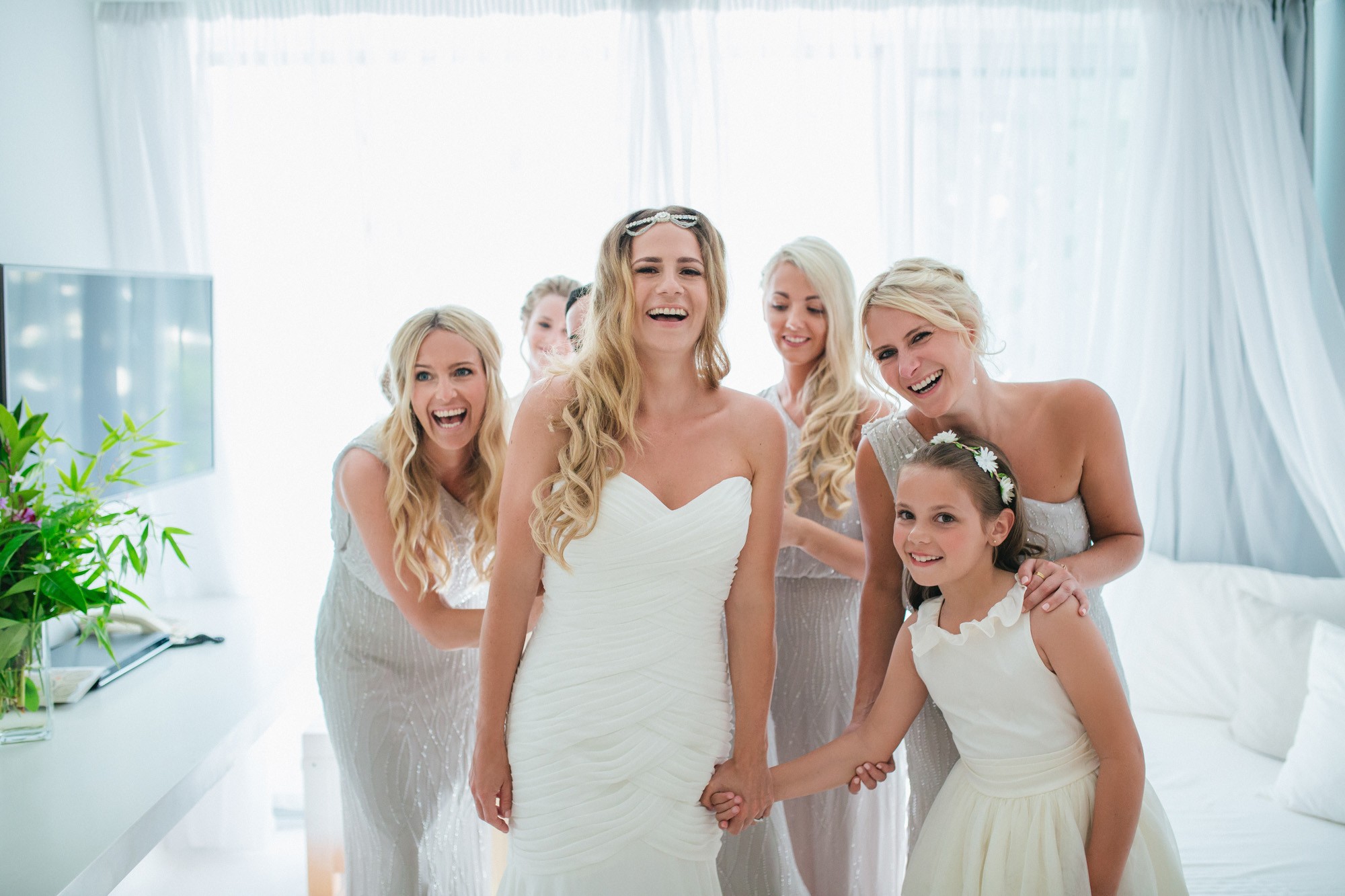 Jade, along with her friends and two daughters, wore her pure white strapless wedding dress and a stunning hairpiece.