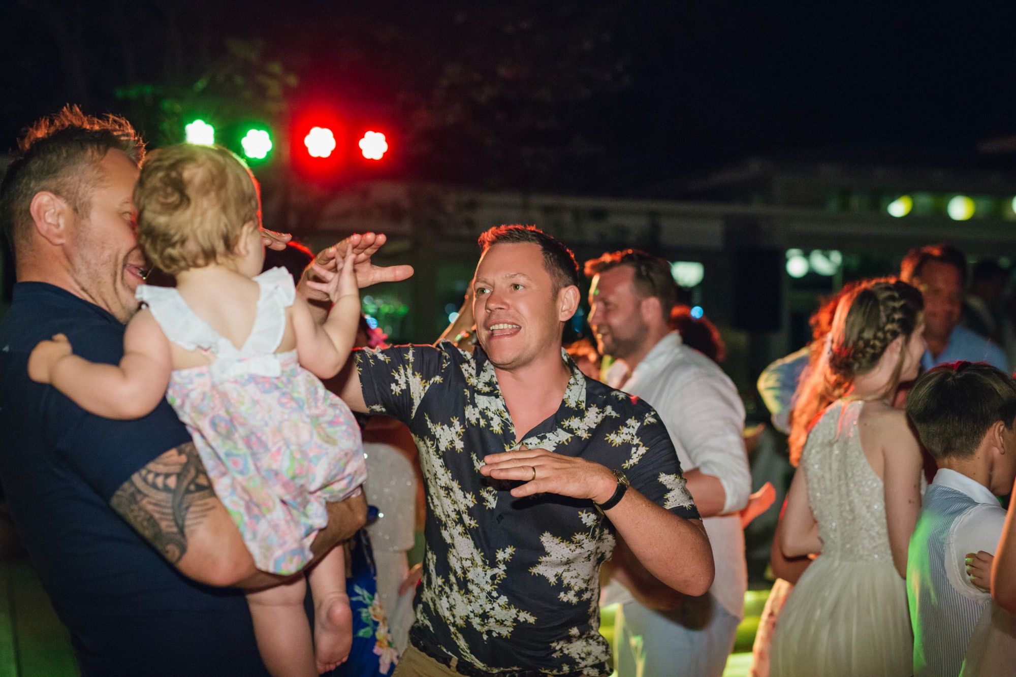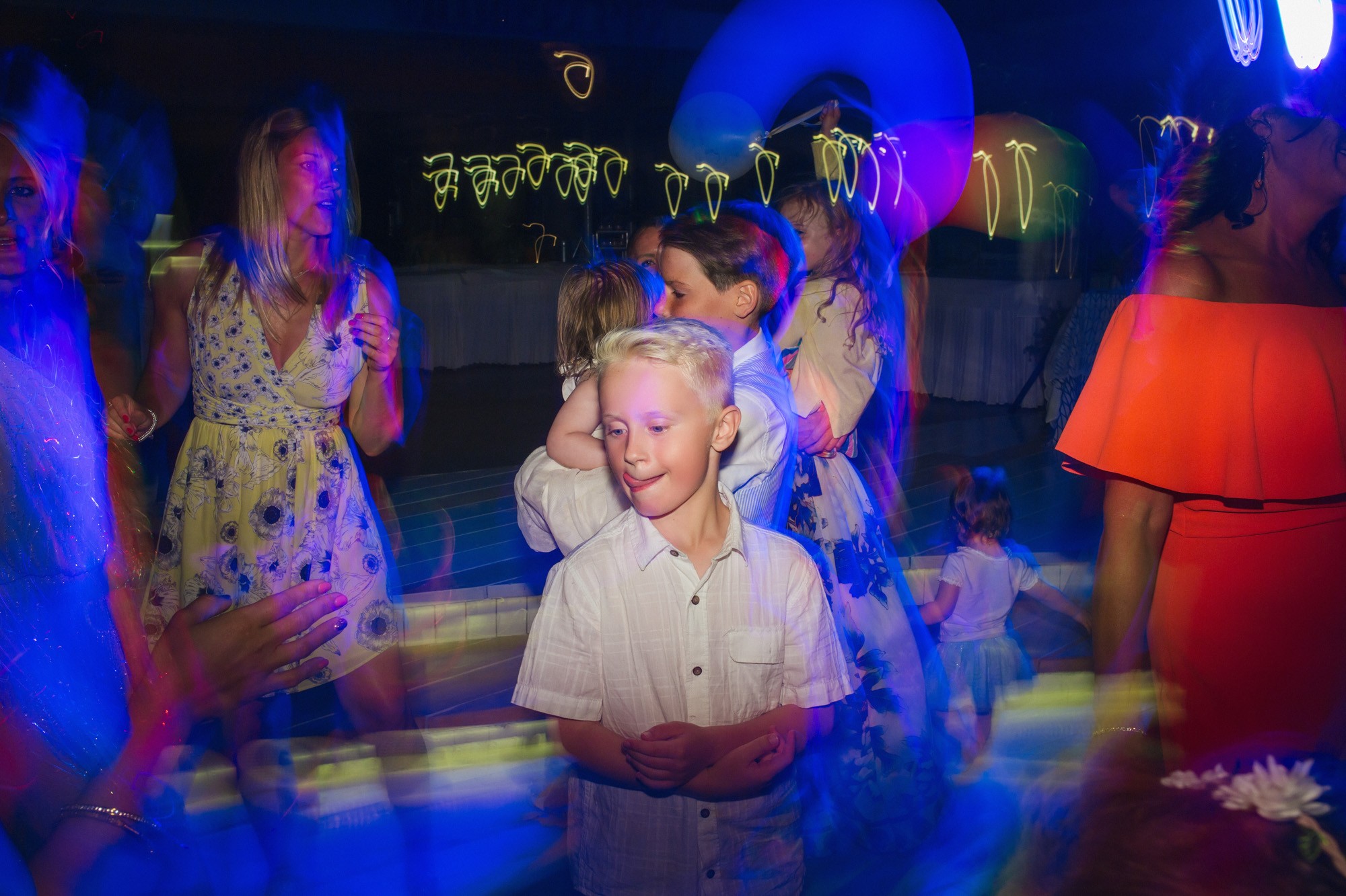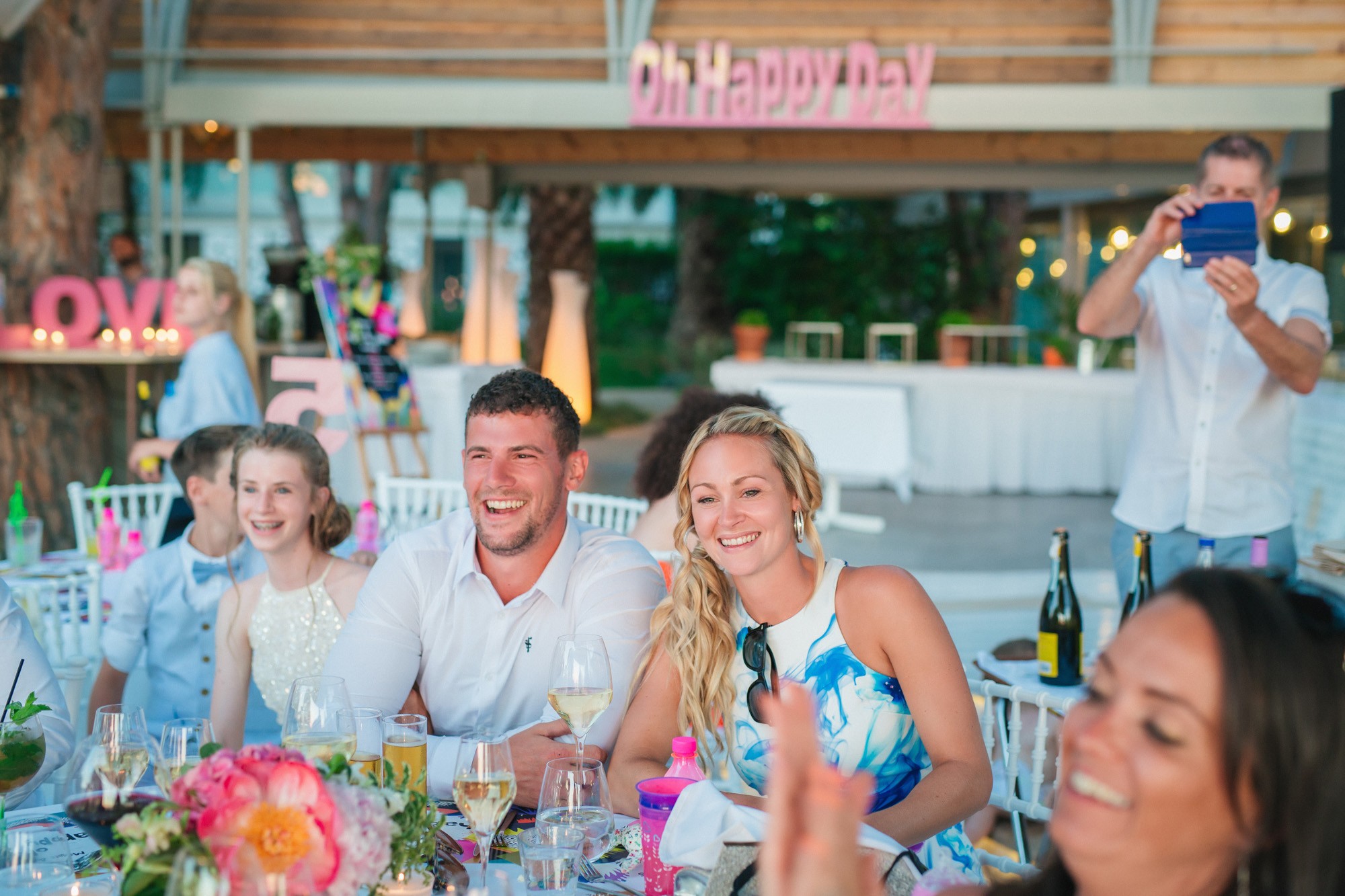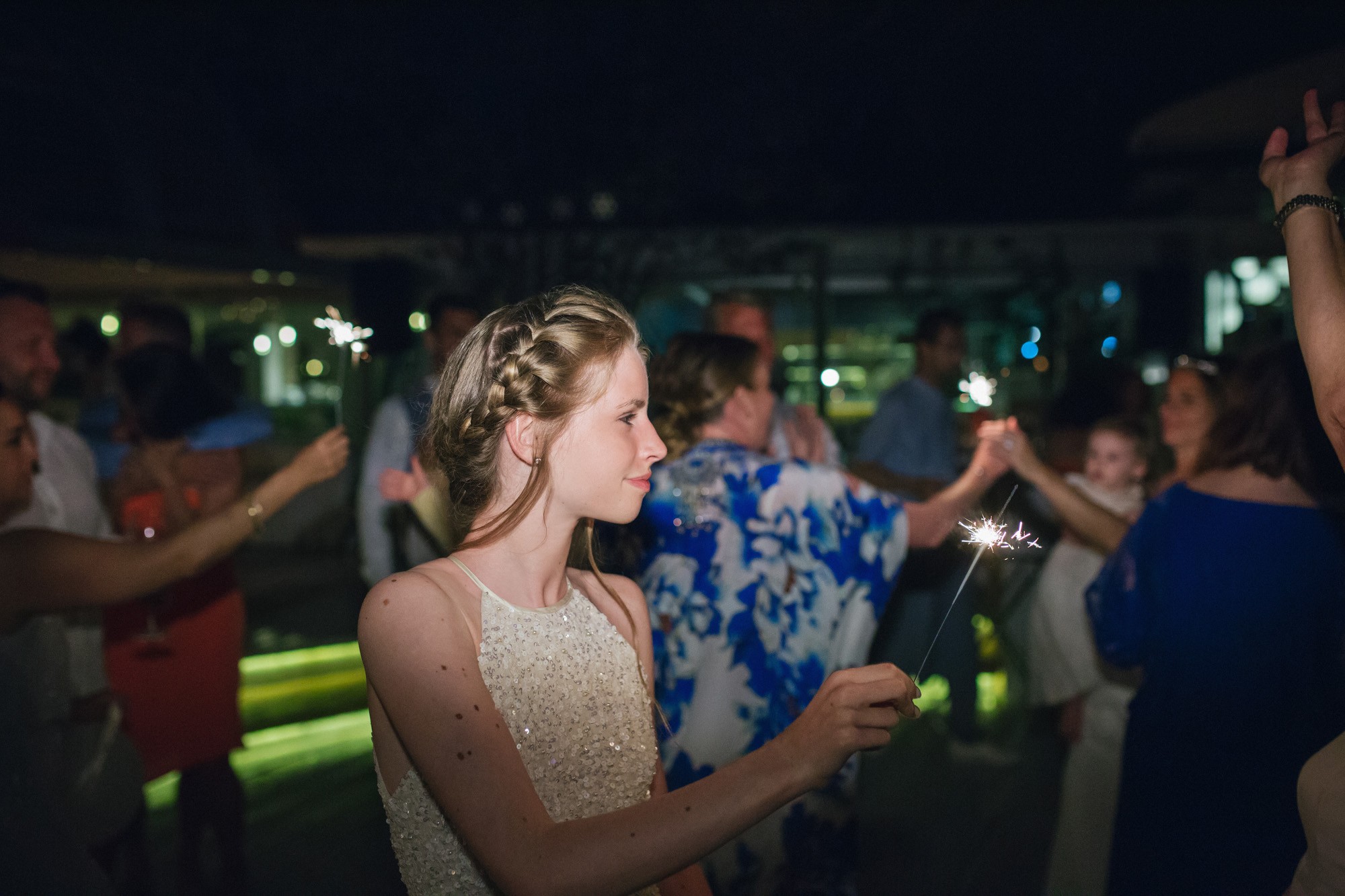 As night arrived, lit lanterns adorned the sand, while one of the most emotionally intense moments occurred when the couple let the ashes of Mat’s beloved grandfather blend with the peaceful Aegean Sea. This moment was deeply moving for the entire family. However, the fun quickly took center stage with the start of the wedding party. Fireworks amazed the guests and instantly the night turned into an exuberant celebration, a lively, incredibly entertaining, and unforgettable party. The vibrant colors and festive atmosphere of the attendees created stunning images, which I captured with great enthusiasm and joy as a wedding photographer.