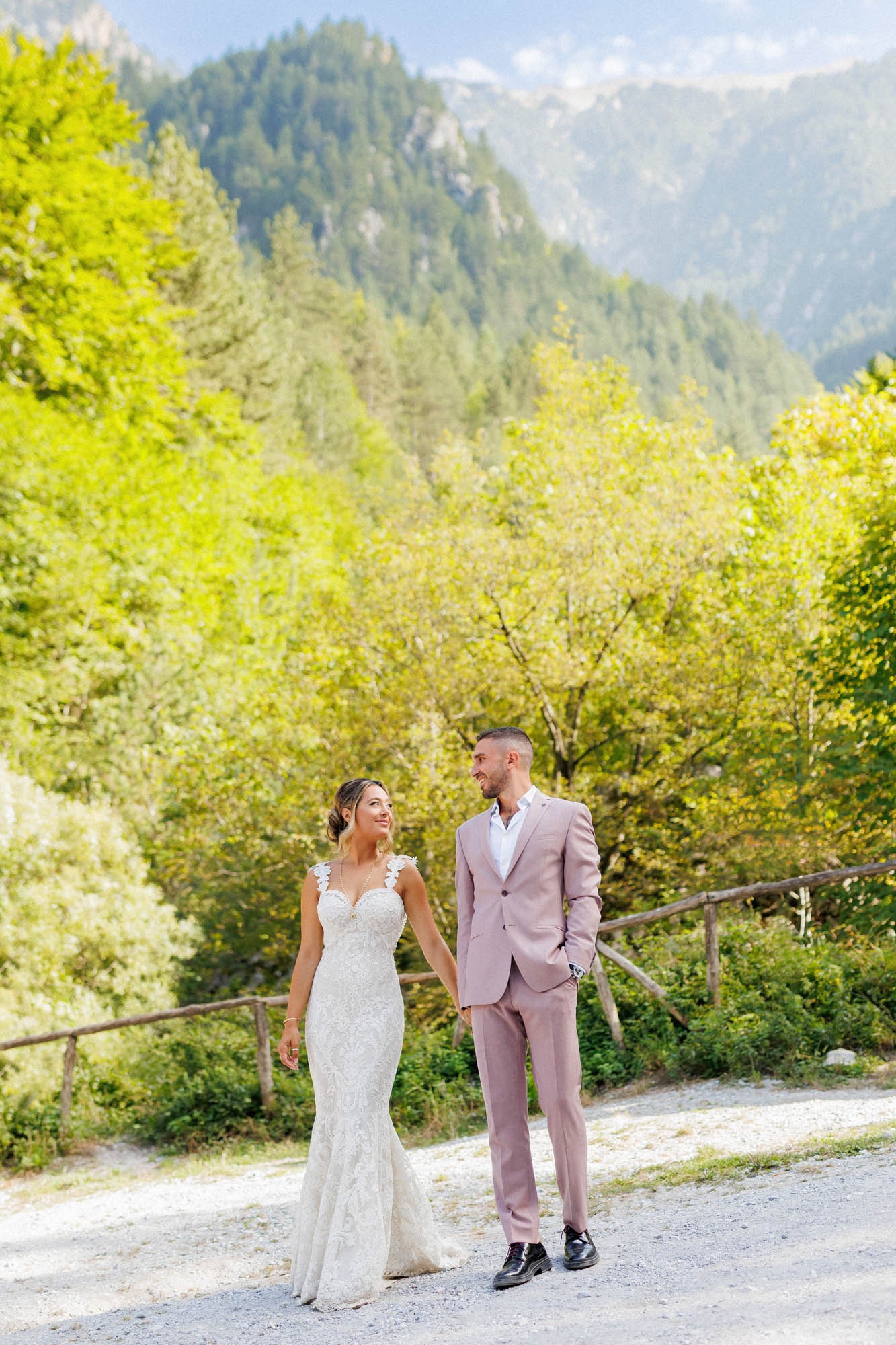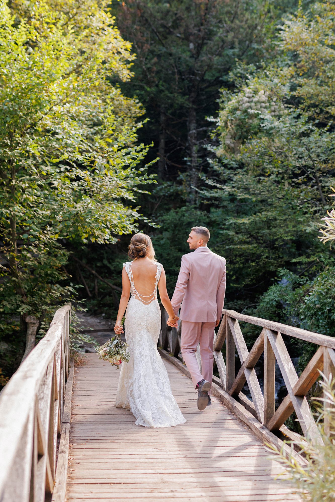 Dimitris arrived at the Prophet Elijah Church, following the traditional Sarakatsani custom of holding the flambouro (flag) in his right hand. Shortly after, Sylvia arrived, exchanging loving glances with her beloved before proceeding to the ceremony. Wedding photographers Christina and Hector captured the magic of this moment, making sure it would remain etched in their memories forever.