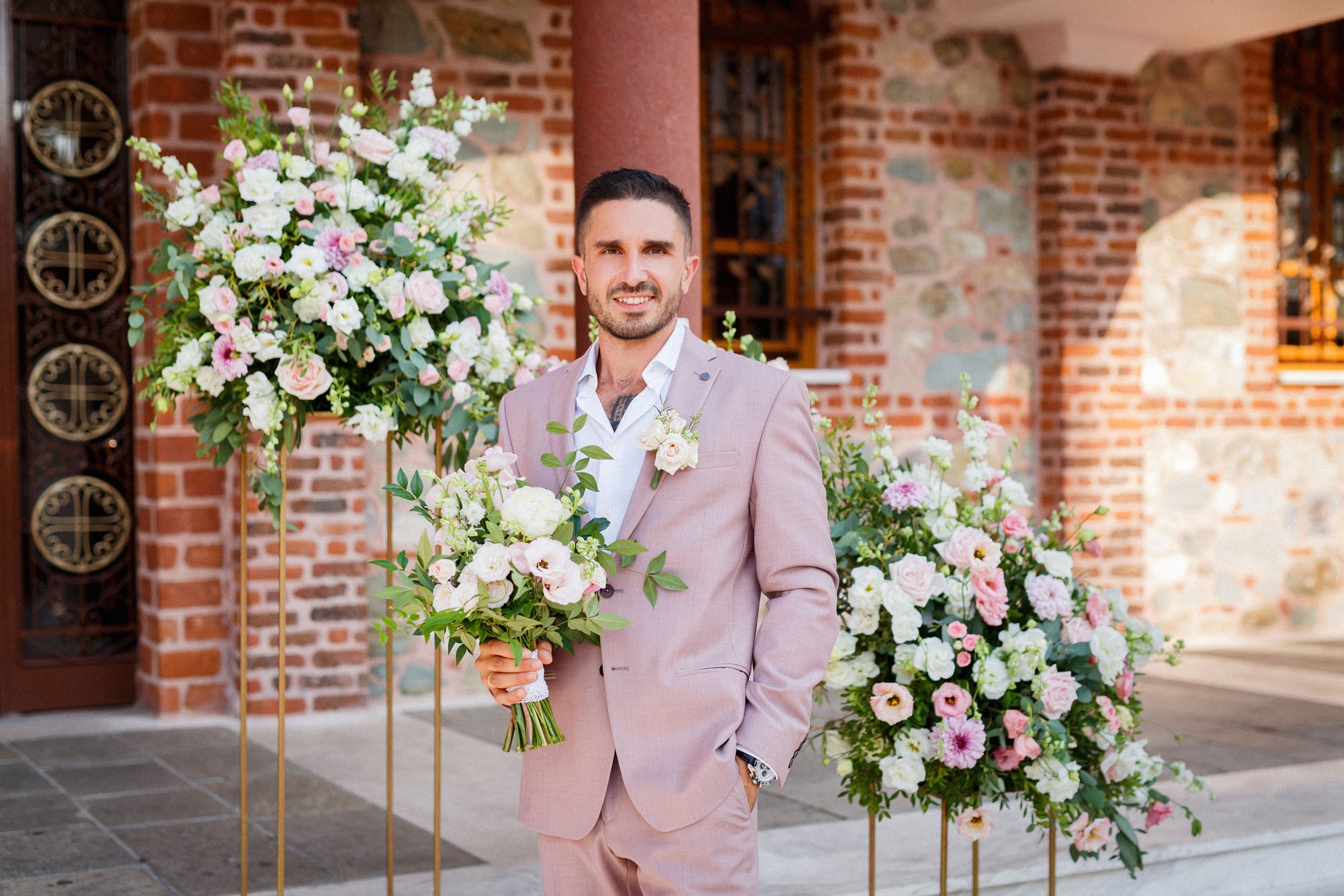 Dimitris’ preparation was held at his home in Thessaloniki, accompanied by his close friends and family. His elegant look was completed with stylish accessories under the careful eye of a wedding photographer, ensuring that each moment of his preparation was captured with precision.