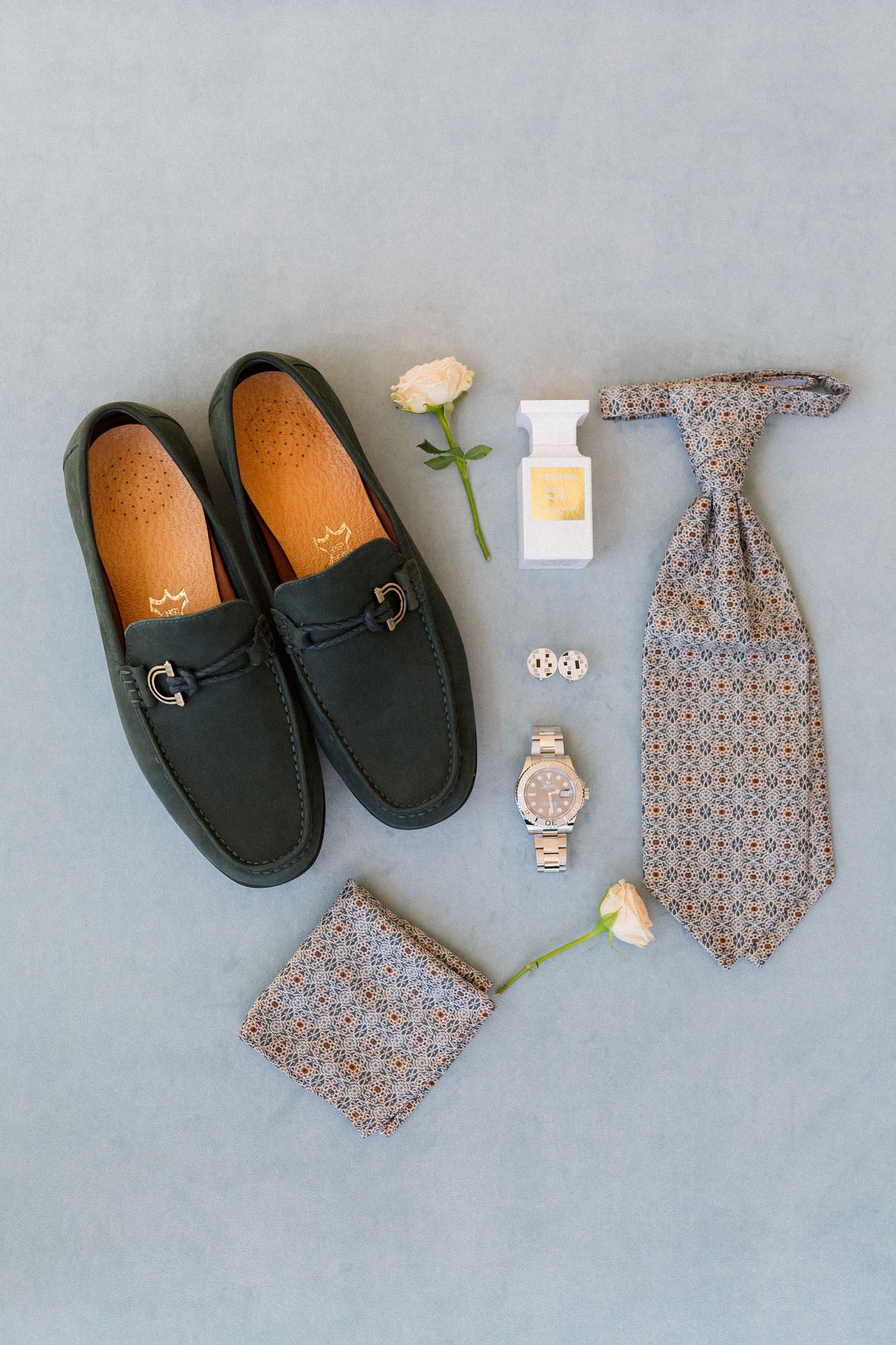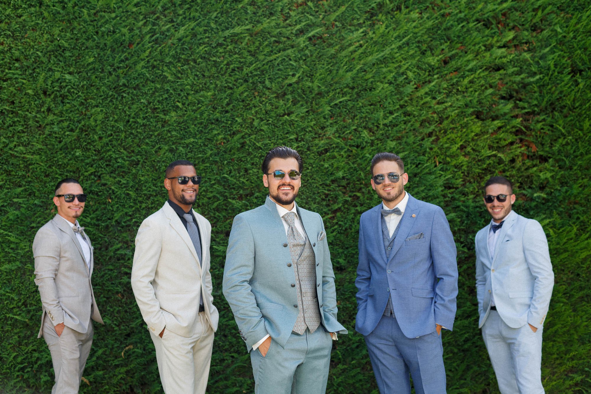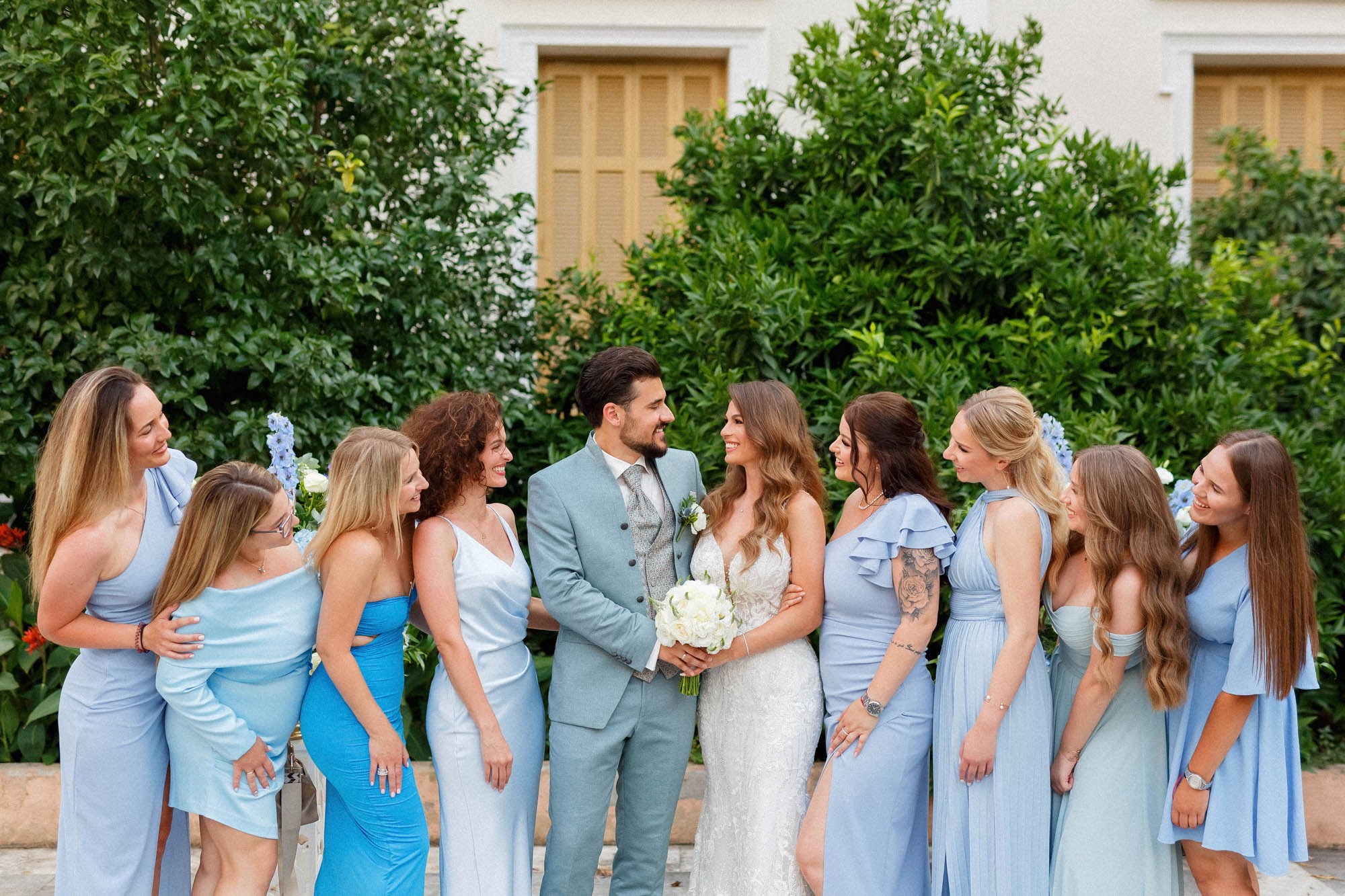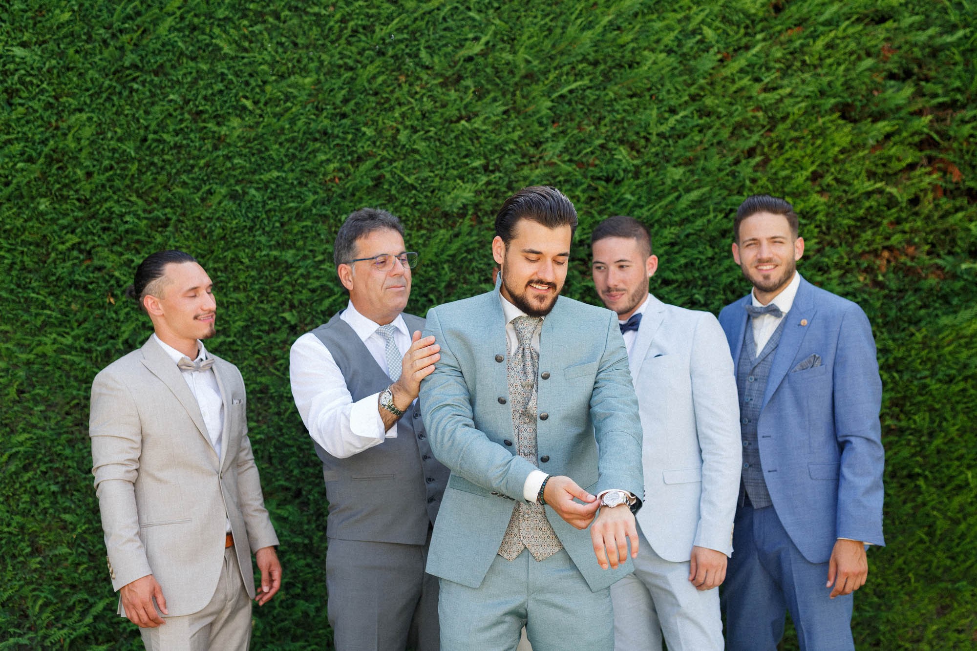 Panos, on the other hand, got ready at his home, where his friends joined him for some fun moments by the outdoor pool at Hortiaiti region. The atmosphere was relaxed and full of excitement. Dressed in his light blue suit, Panos was ready for the big day. The wedding photographer, Hector, captured every little detail of his preparations, ensuring that each moment was preserved.