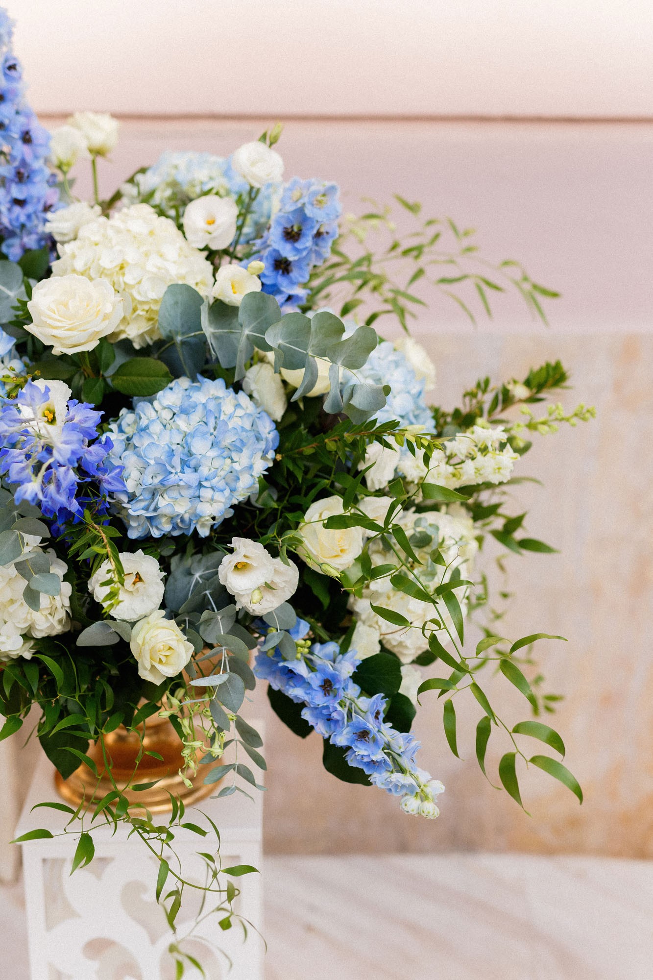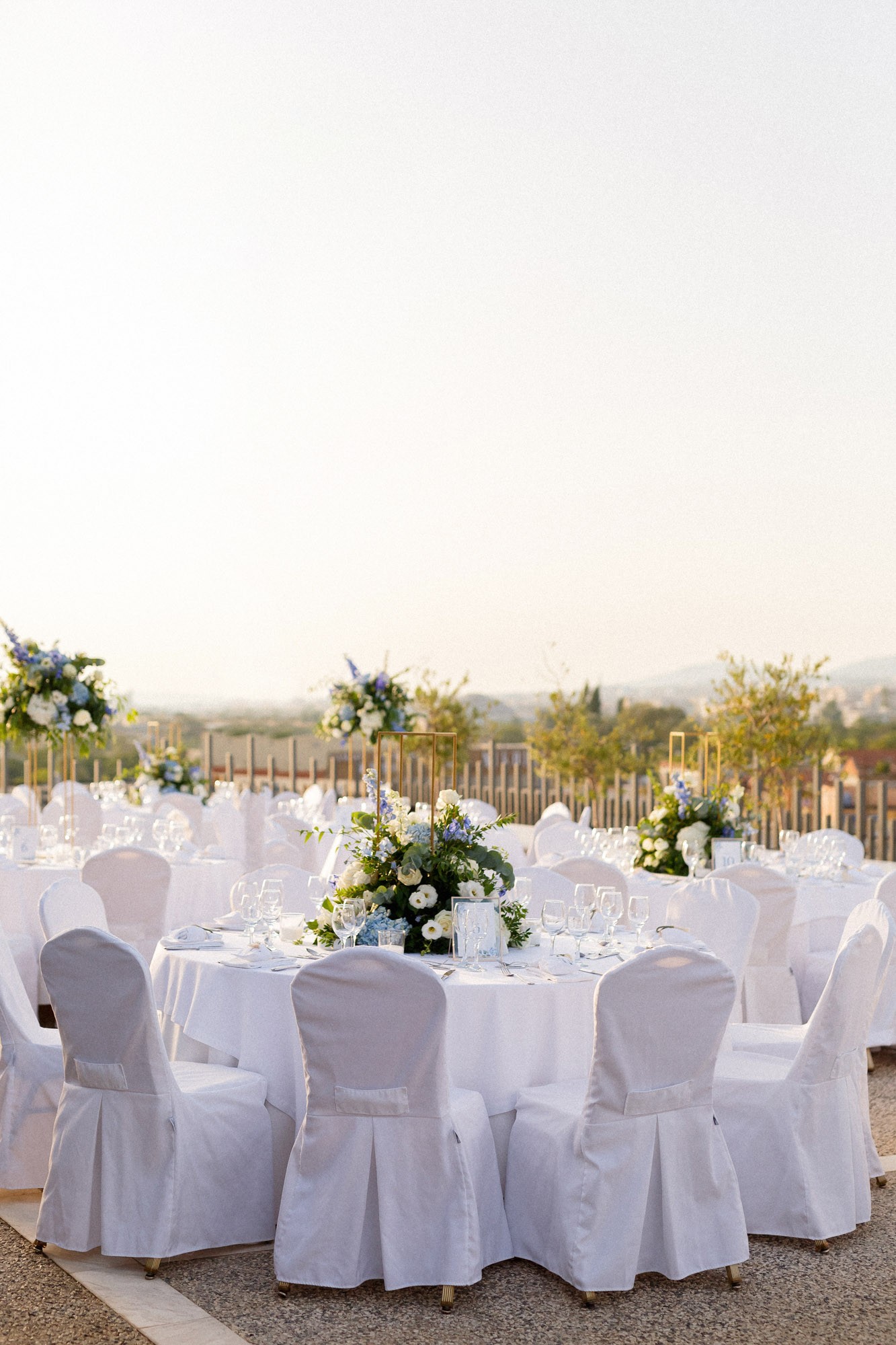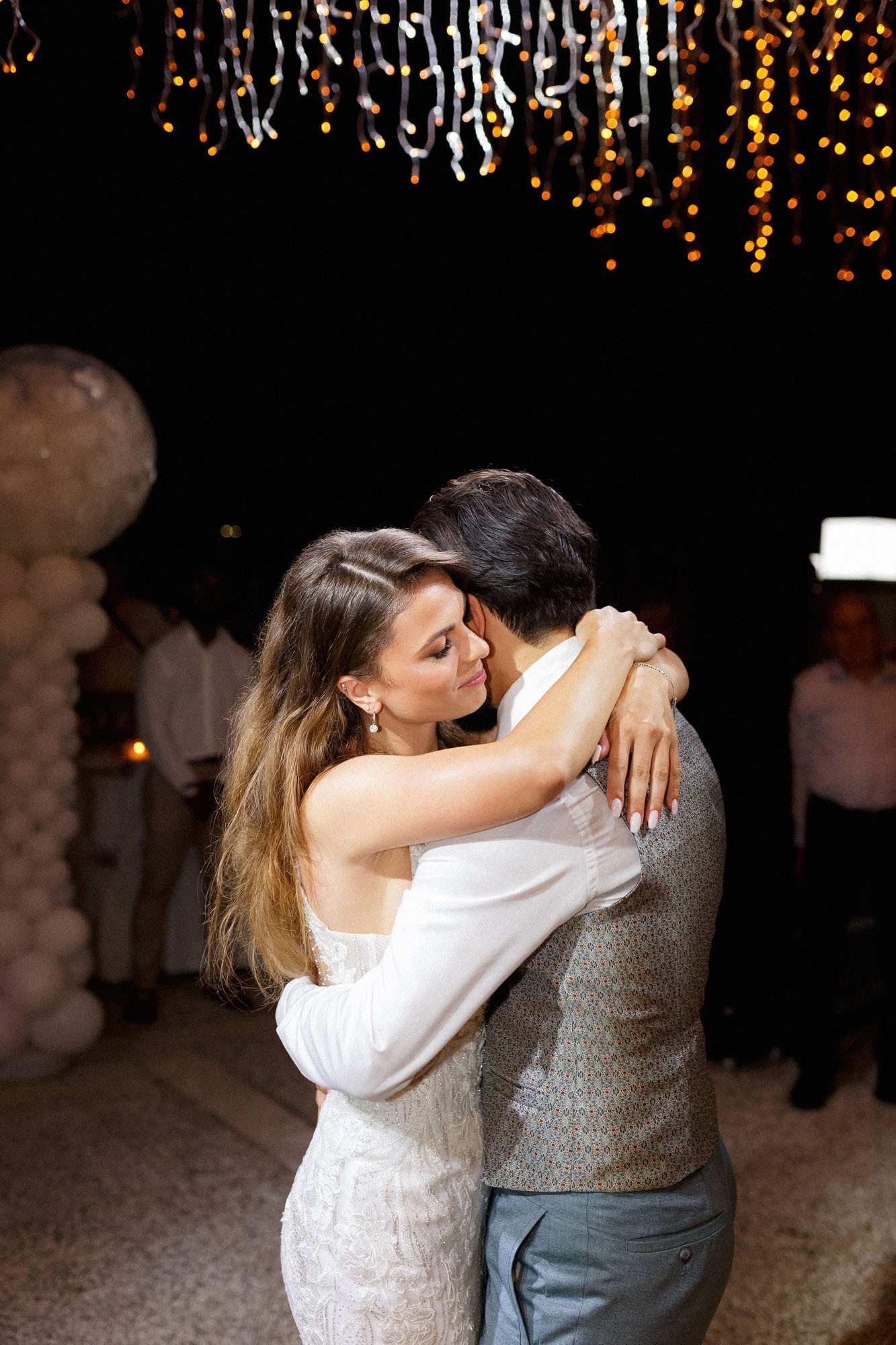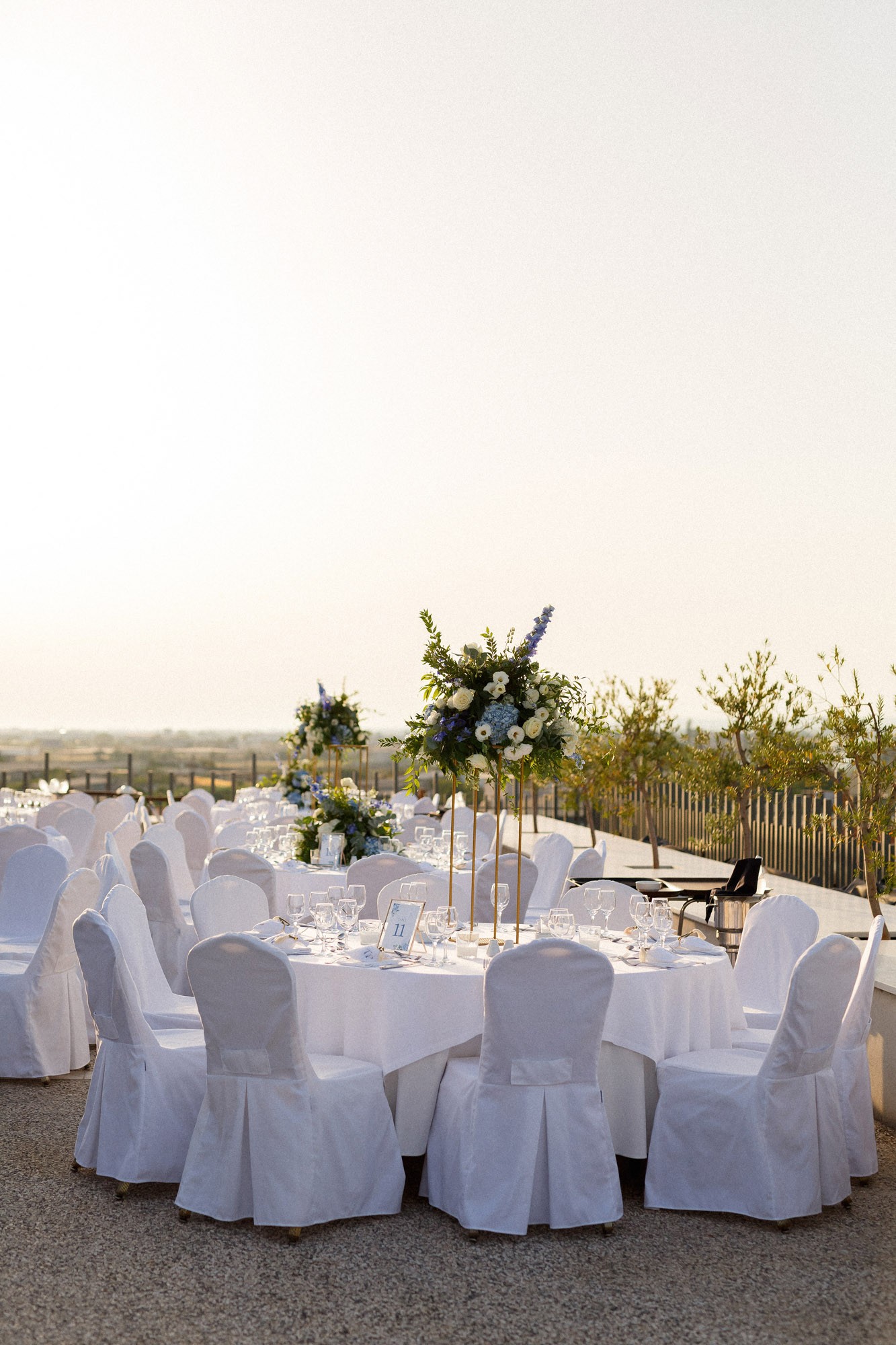 The reception took place in the outdoor area of the luxurious Porto Palace, which was beautifully decorated in white, with stunning flower columns at each table. The air was filled with laughter, dancing, and joy, creating an unforgettable experience for all the guests. The wedding photos taken by wedding photographers Christina and Hector will preserve these precious memories for the couple, making sure this day will always be remembered.