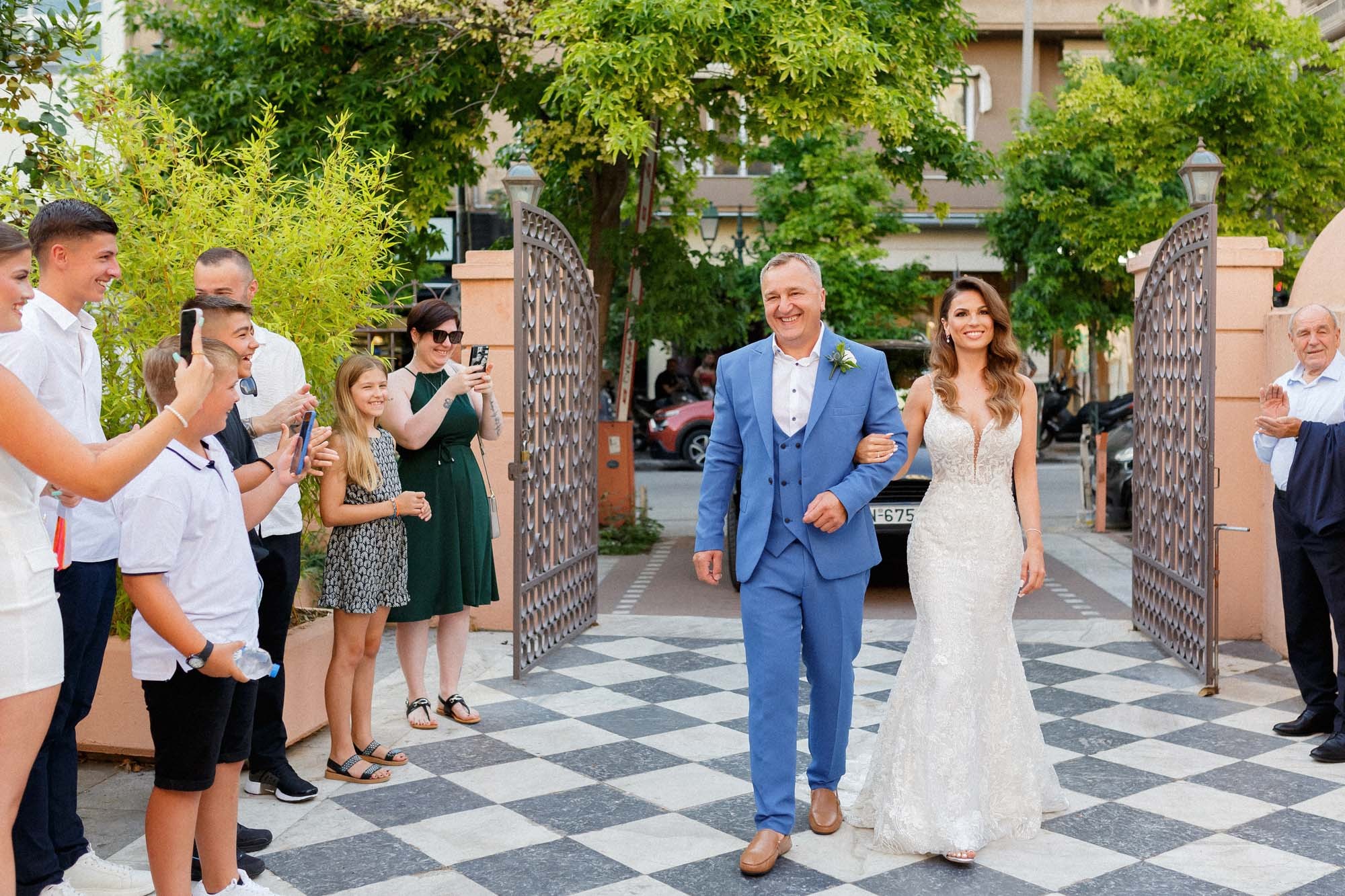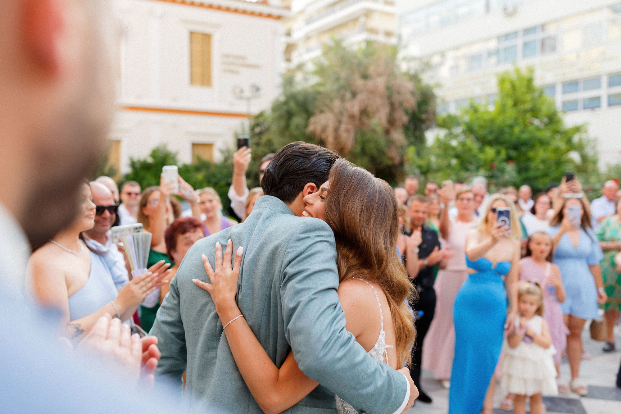 The couple’s first embrace at the steps of the Metropolis of Thessaloniki was truly touching. After this emotional moment, we proceeded with the ceremony, which was beautifully captured by the wedding photographer . Their wedding photos will forever remind the couple of the joy and love they shared on their special day.