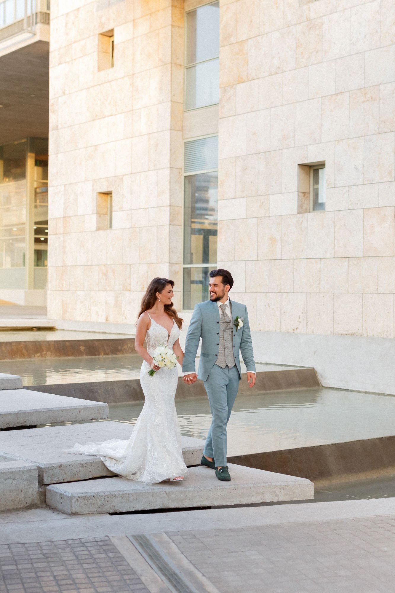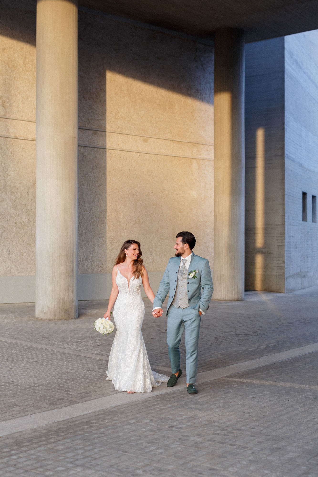 Following the ceremony, the wedding photoshoot continued at the City Hall of Thessaloniki, where the magnificent architecture provided the perfect backdrop to capture the best moments of Tamara and Panos.